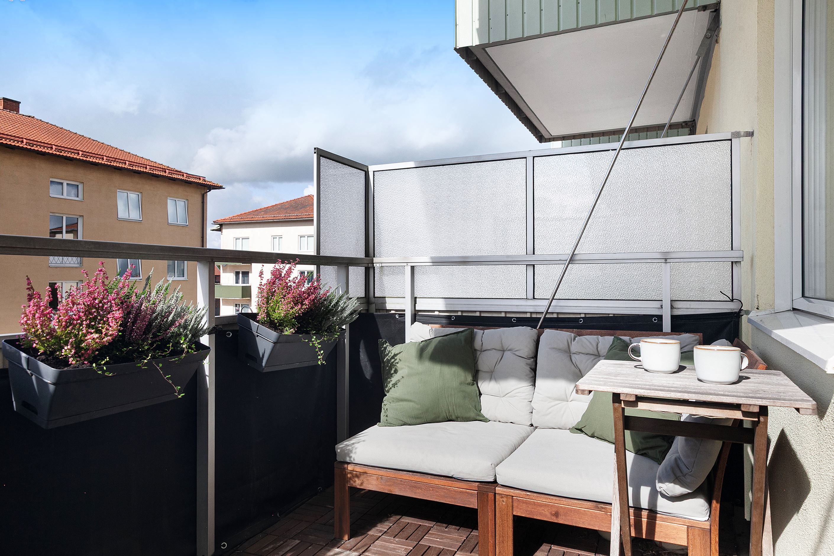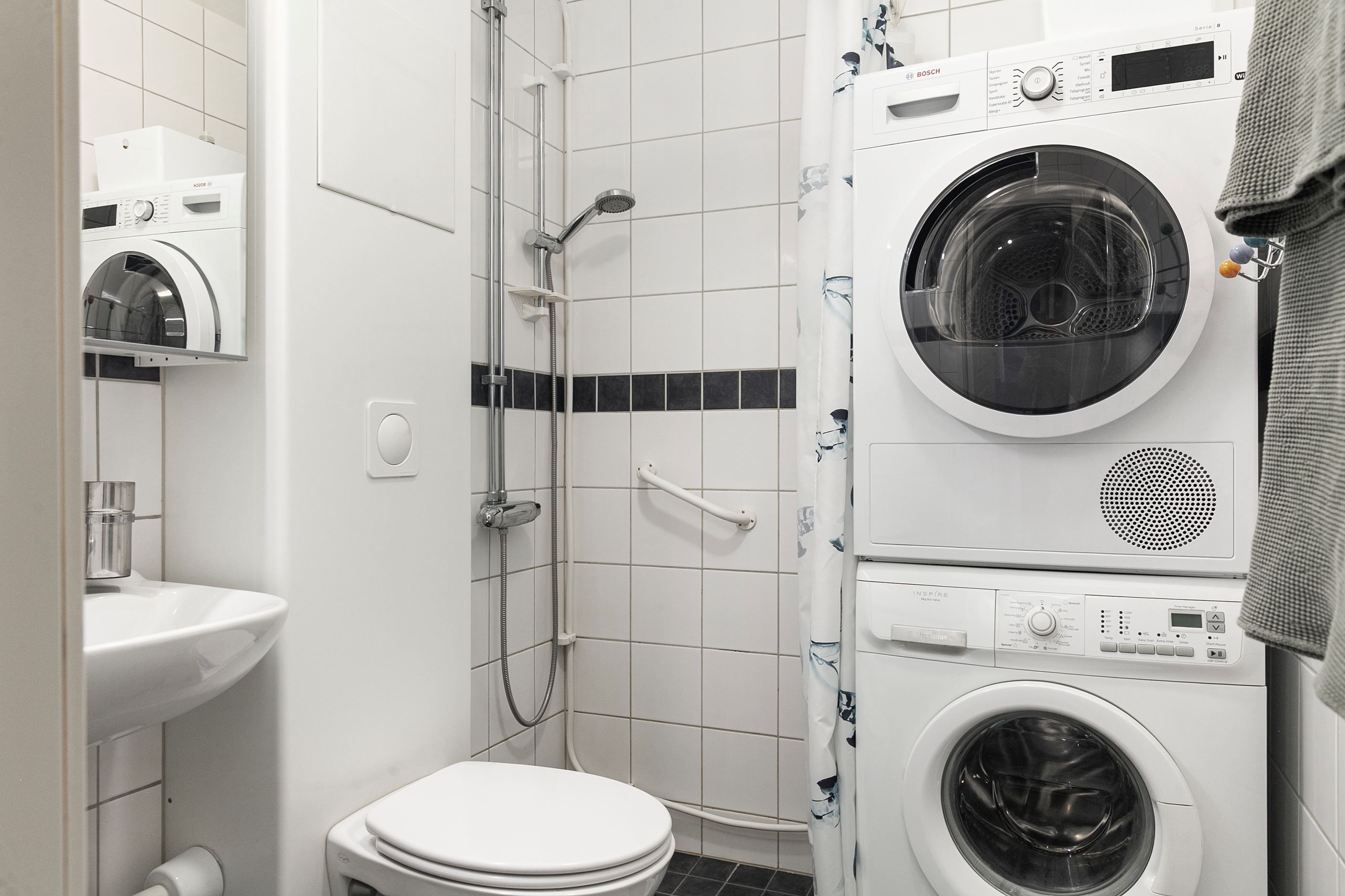 Lägenheten bjuder på ett stilrent och helkaklat badrum med både tvättmaskin och torktumlare – en lyxig bekvämlighet i vardagen. Det nyare köket är vitt och har plats för matbord. Vardagsrummet är mysigt och inbjudande, med utgång till en balkong där du kan njuta av soliga dagar eller en kopp kaffe i lugn och ro.