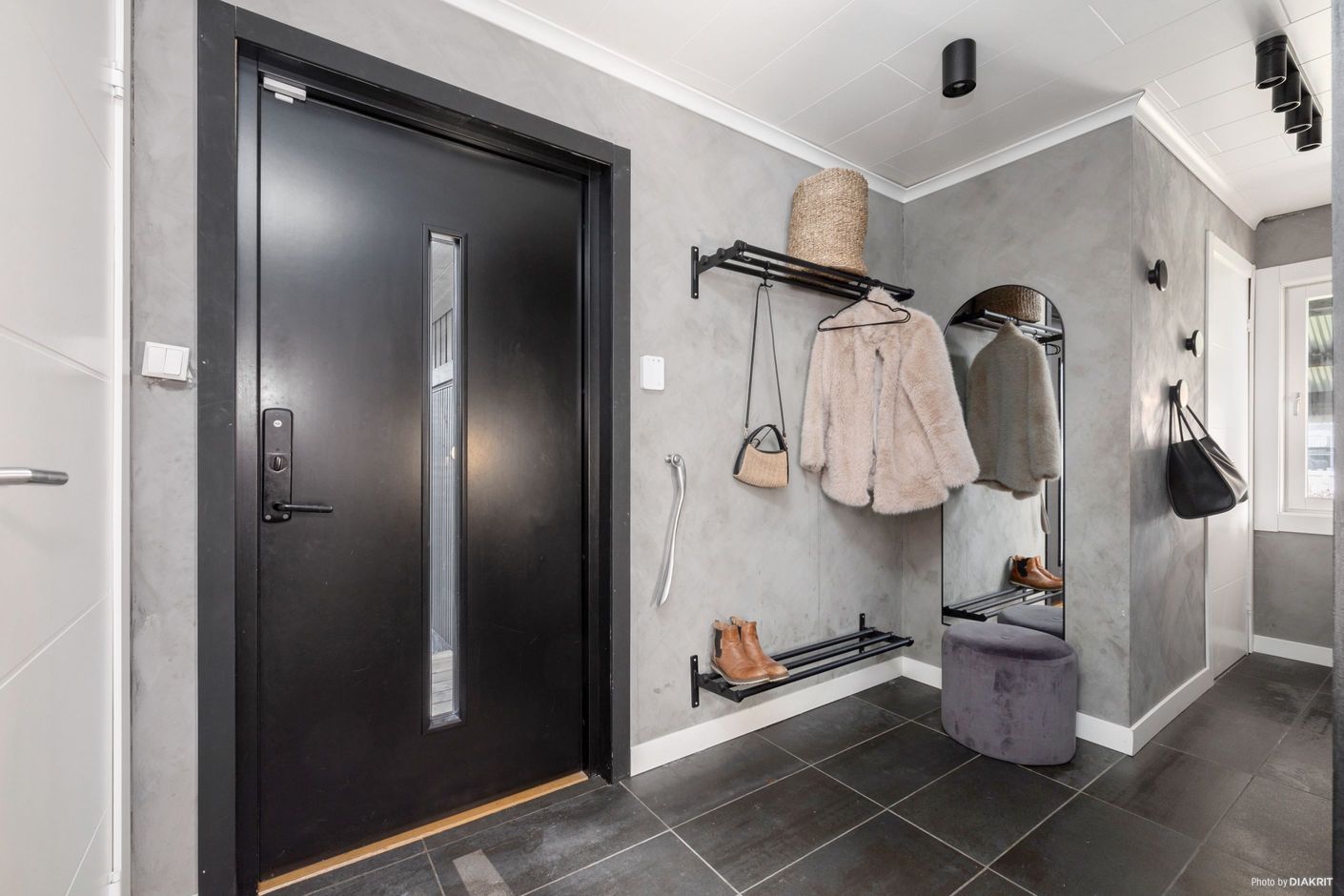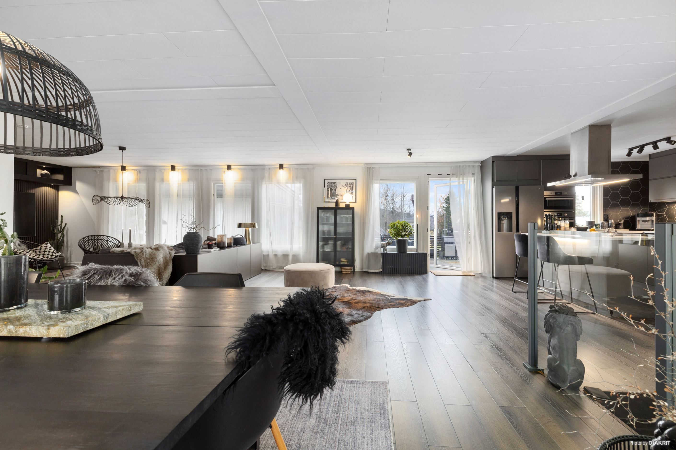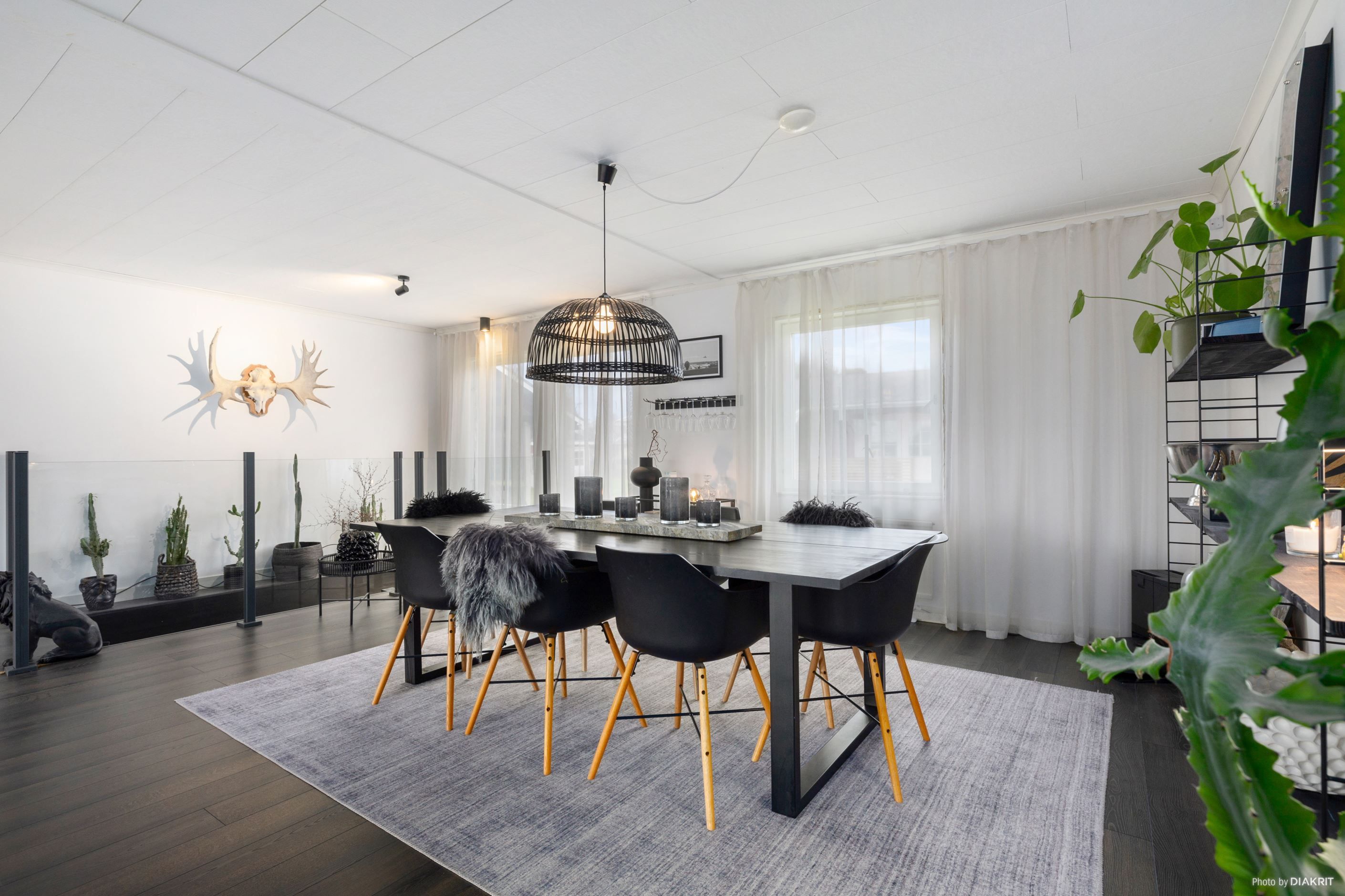 Det smakfulla köket har gråa luckor och generösa arbetsytor, samt en naturlig matplatsdel i direkt anslutning. Den öppna planlösningen mot det ljusa och rymliga vardagsrummet skapar en social och trivsam atmosfär – perfekt för både vardag och umgänge. Här finns även en braskamin som bidrar till både värme och mysfaktor under årets kallare månader. På entréplanet finns två sovrum med fint ljusinsläpp och bra förvaringsmöjligheter. Här finns även en rymlig WC, renoverad 2020 med smakfulla materialval, som ger ett fräscht och modernt intryck.