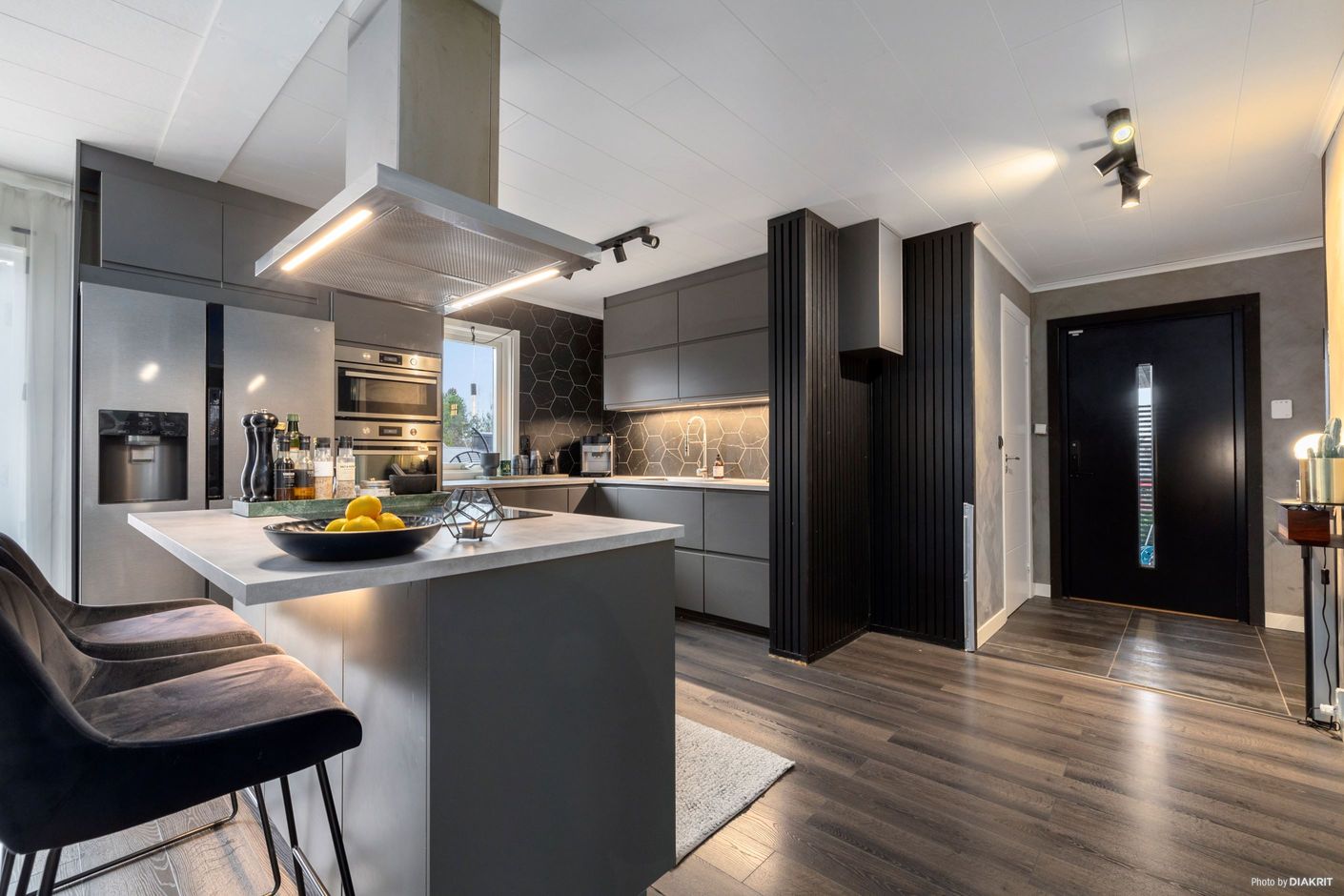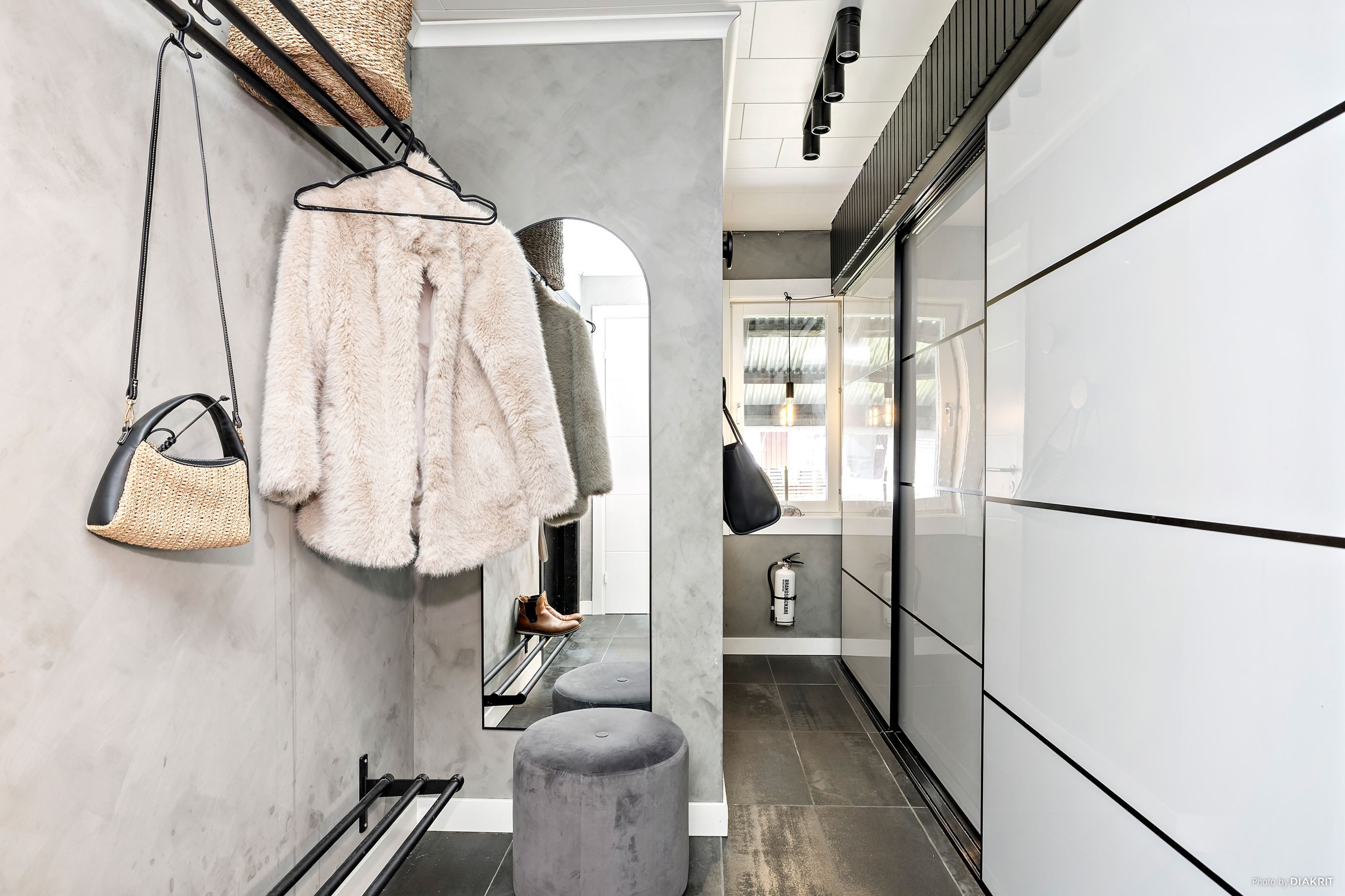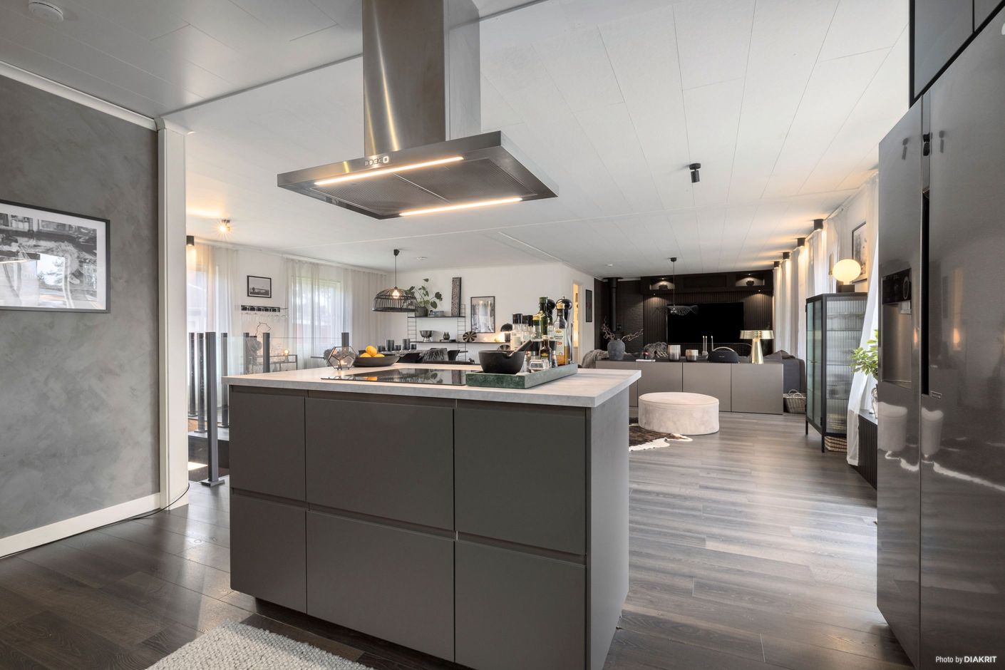 Det smakfulla köket har gråa luckor och generösa arbetsytor, samt en naturlig matplatsdel i direkt anslutning. Den öppna planlösningen mot det ljusa och rymliga vardagsrummet skapar en social och trivsam atmosfär – perfekt för både vardag och umgänge. Här finns även en braskamin som bidrar till både värme och mysfaktor under årets kallare månader. På entréplanet finns två sovrum med fint ljusinsläpp och bra förvaringsmöjligheter. Här finns även en rymlig WC, renoverad 2020 med smakfulla materialval, som ger ett fräscht och modernt intryck.