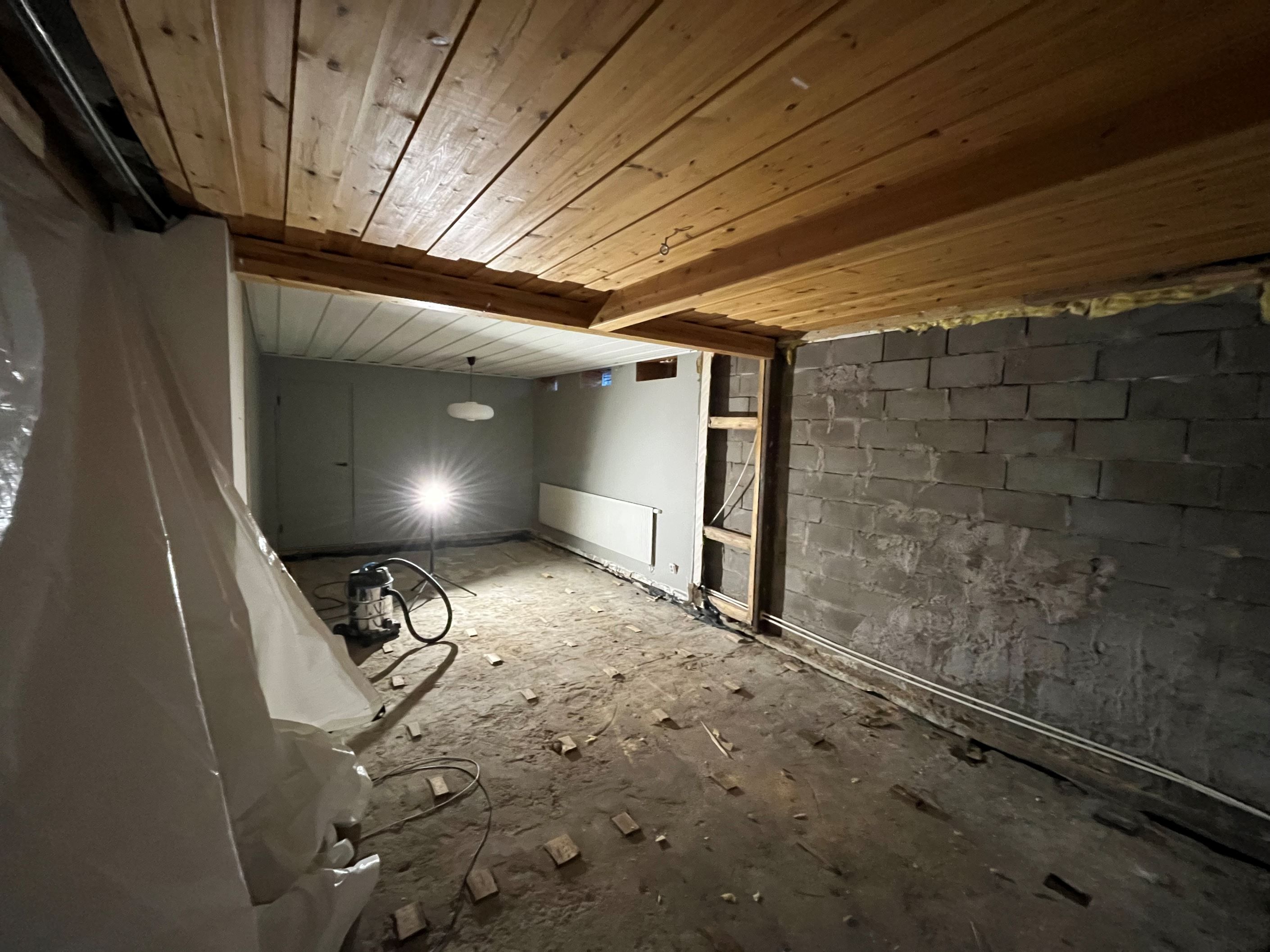 I källarplanet finns ett stort allrum och en påbörjad sektion för tvättstuga, duschrum och bastu. Här finns även ett påbörjat sovrum. Här har du chansen att sätta din egen prägel – grundarbetet är redan gjort med draget avlopp och uppbilat ytskikt (2022). Förberedelserna ger en utmärkt utgångspunkt för att skapa en modern och funktionell tvätt- och relaxavdelning efter eget tycke och smak.