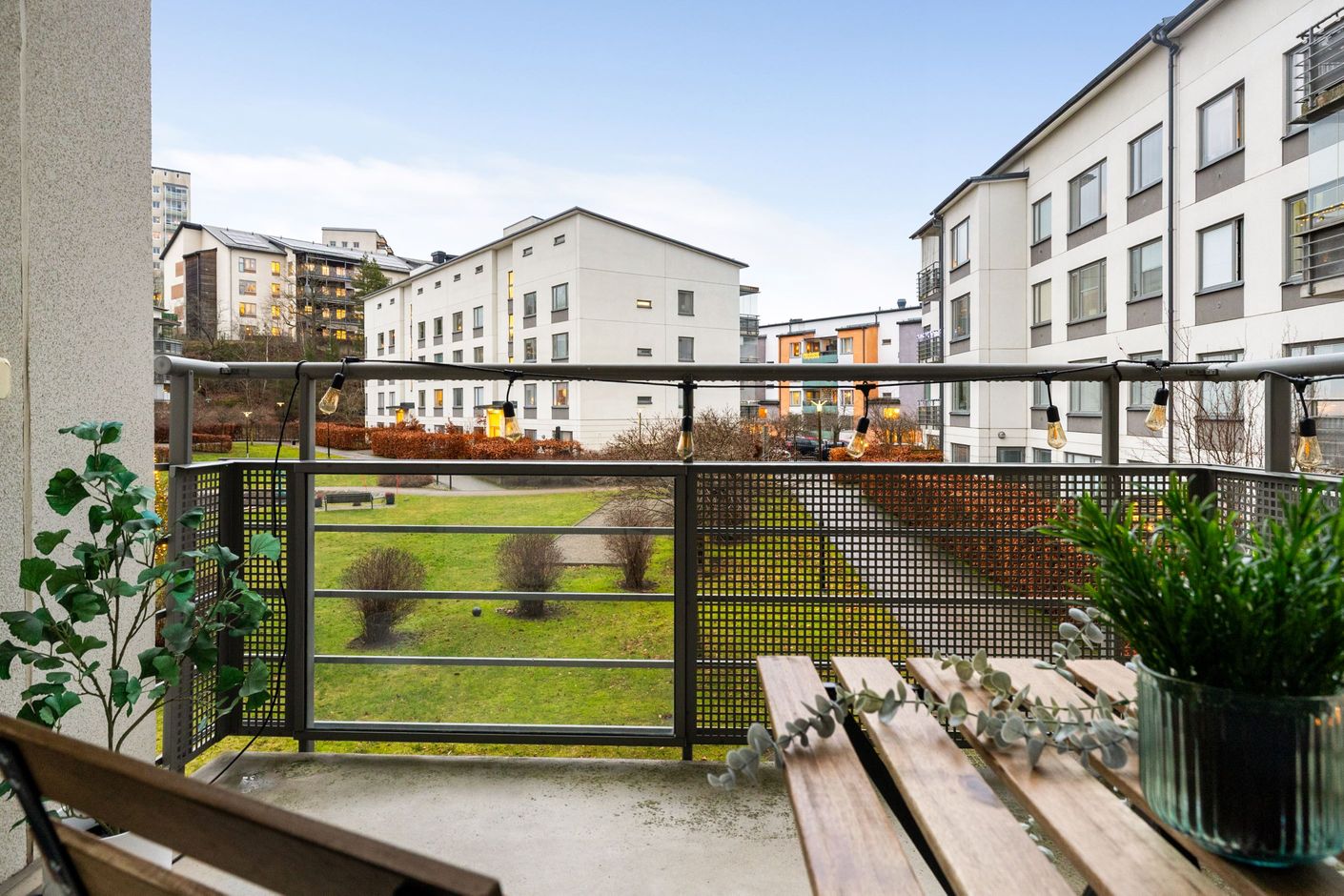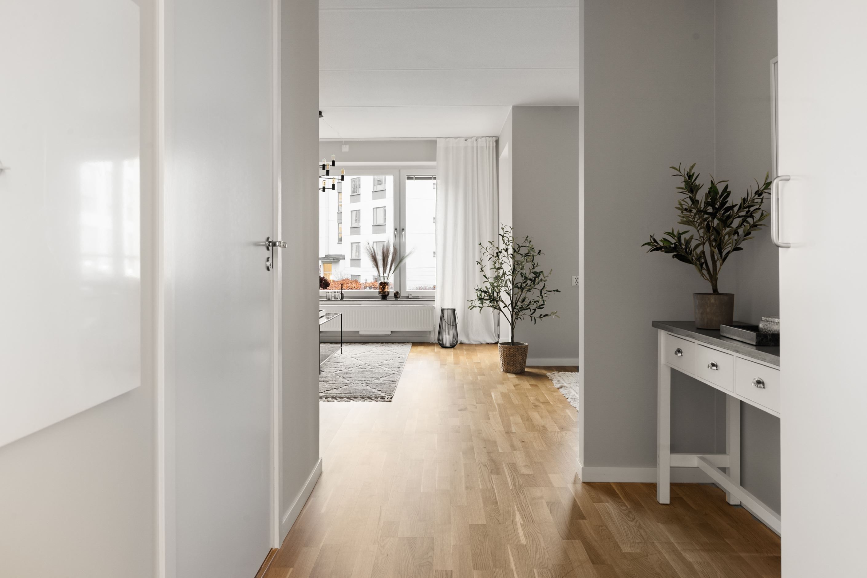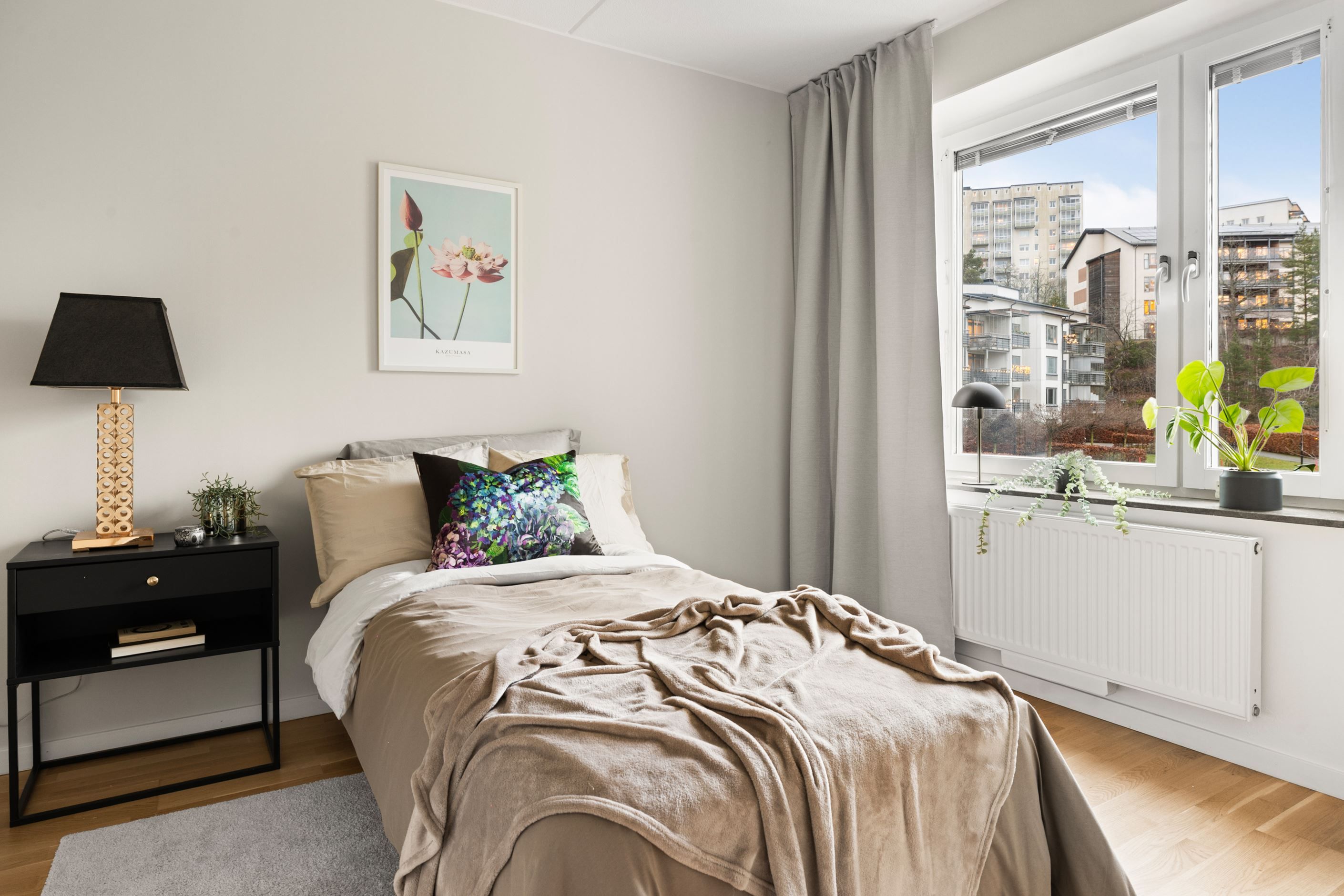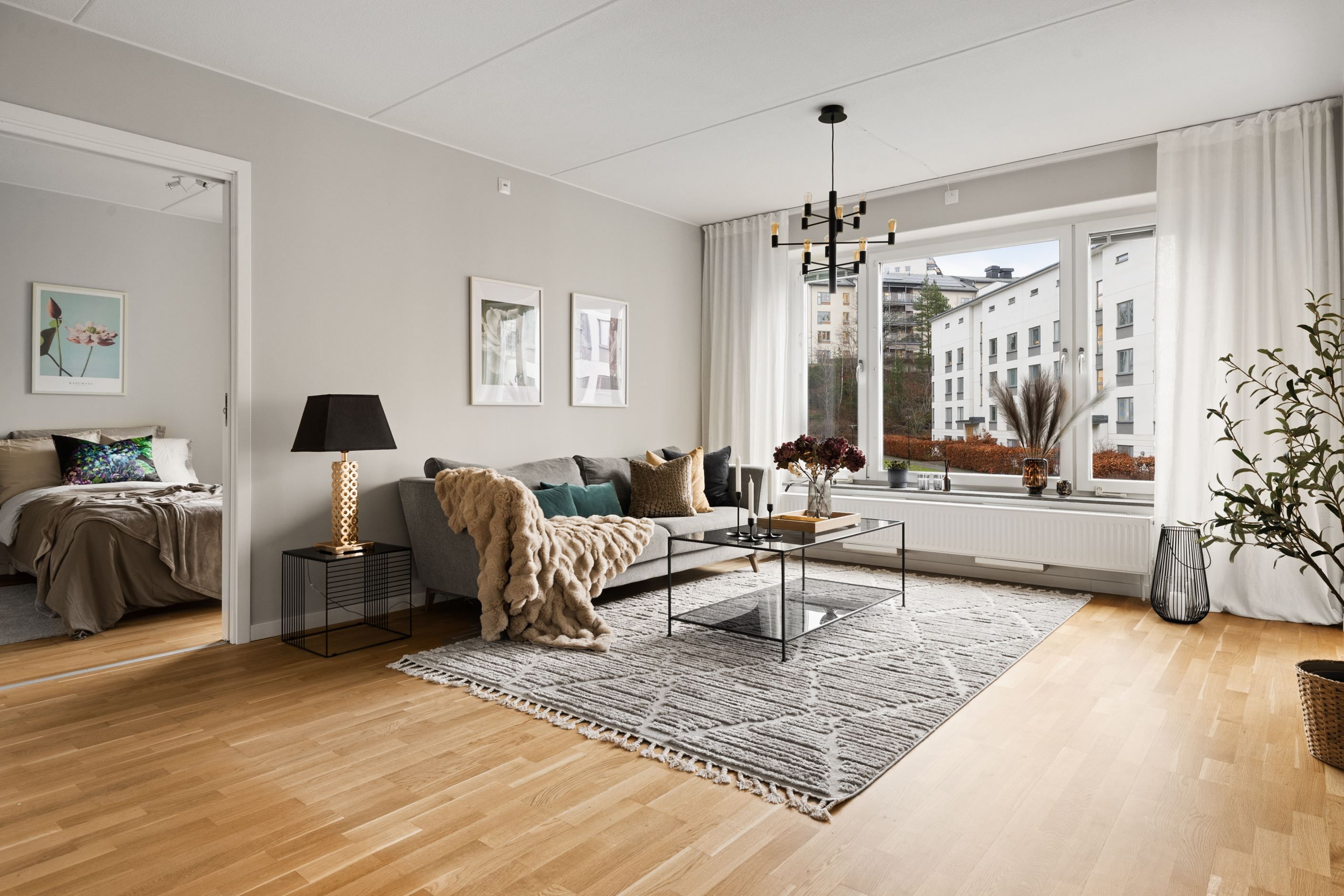 Lägenheten har öppen planlösning mellan kök och vardagsrum, vilket skapar en social planlösning perfekt för middagar och umgänge med vänner, här finns gott om plats för både matgrupp och rejäl soffgrupp. Genom vardagsrummet nås en härlig och solig balkong med utsikt över föreningens omtyckta och grönskande innergård. Lägenheten präglas av tidlösa materialval med ett helkaklat välutrustat badrum och genomgående parkettgolv som ger en enhetlig och exklusiv känsla i hela bostaden.