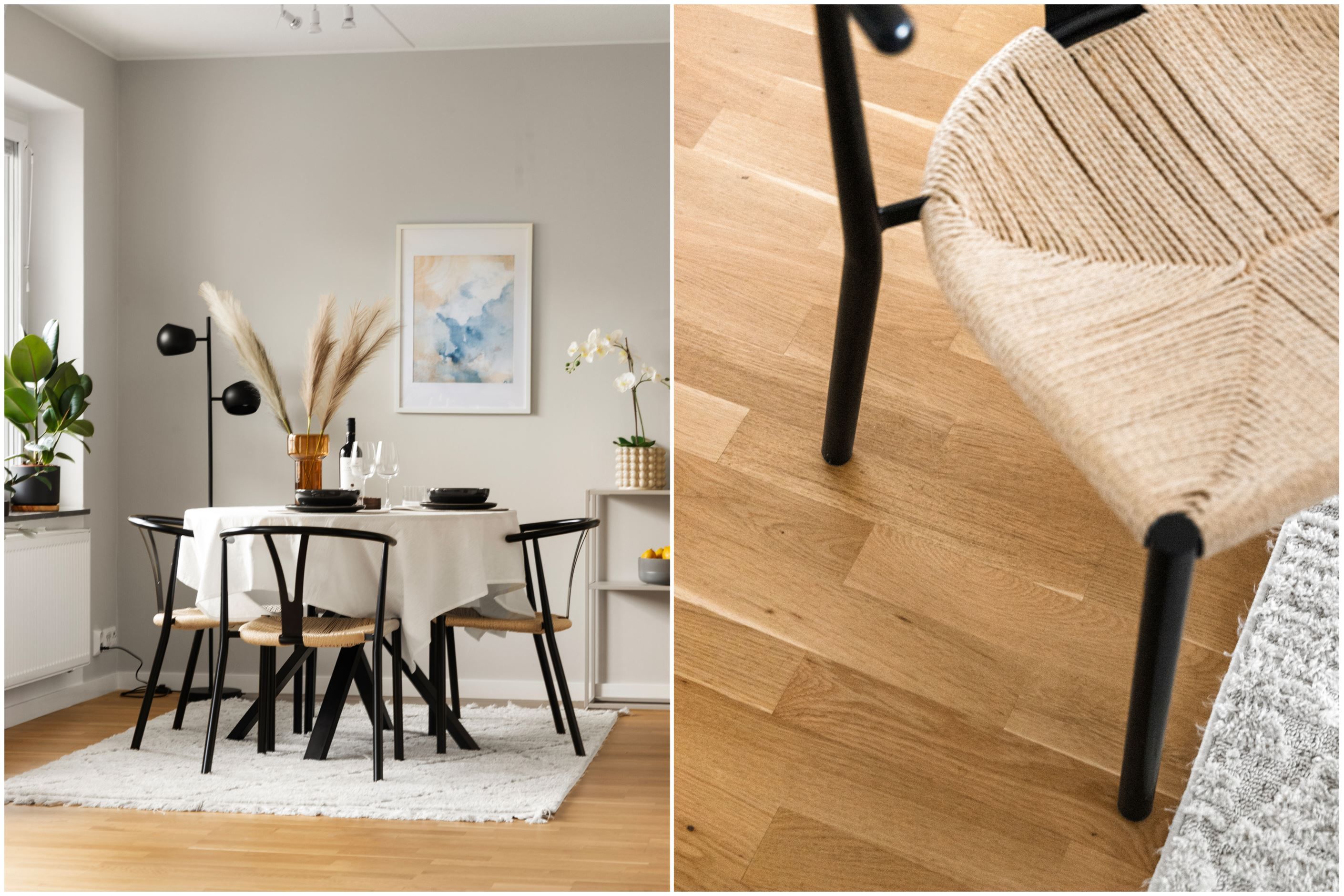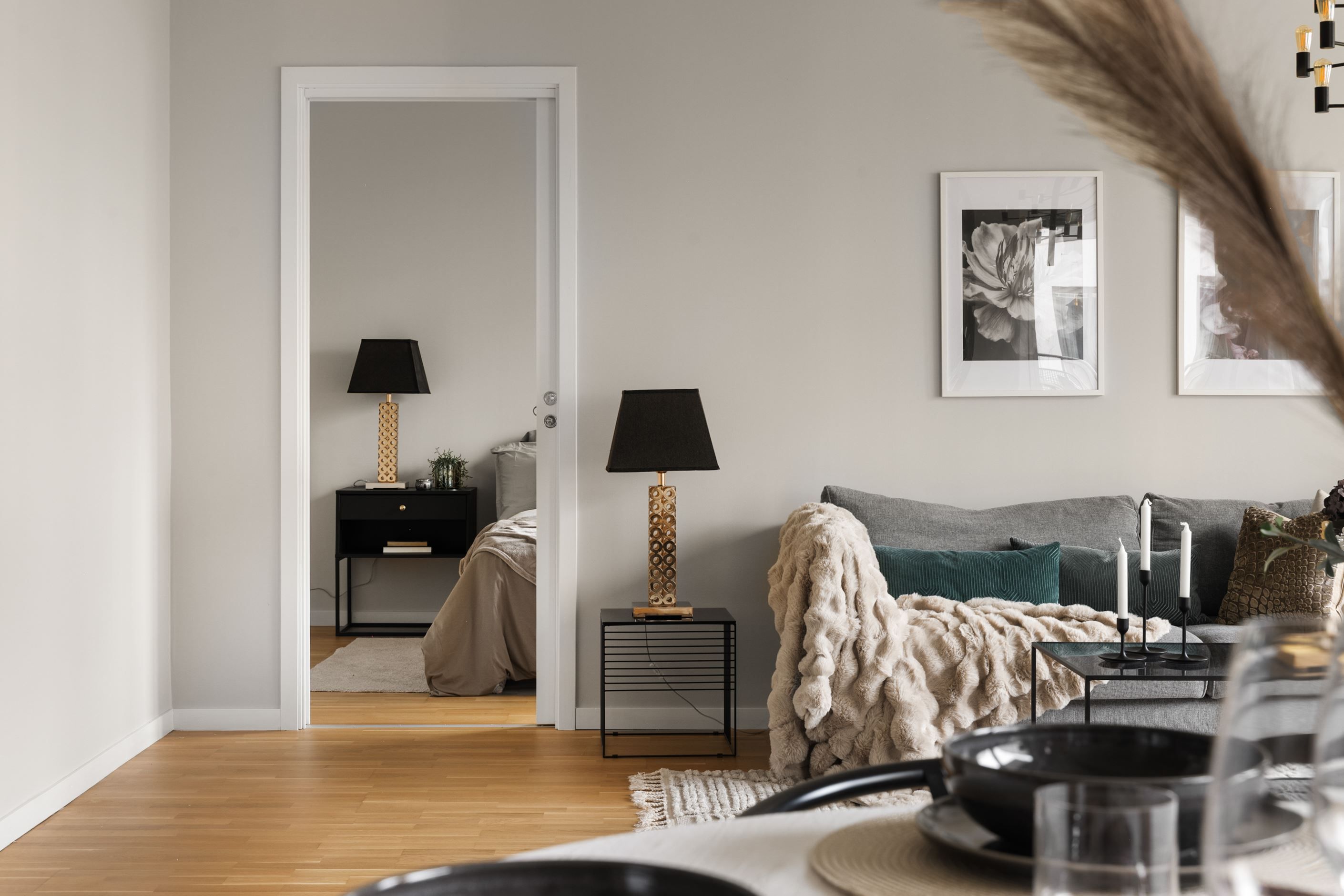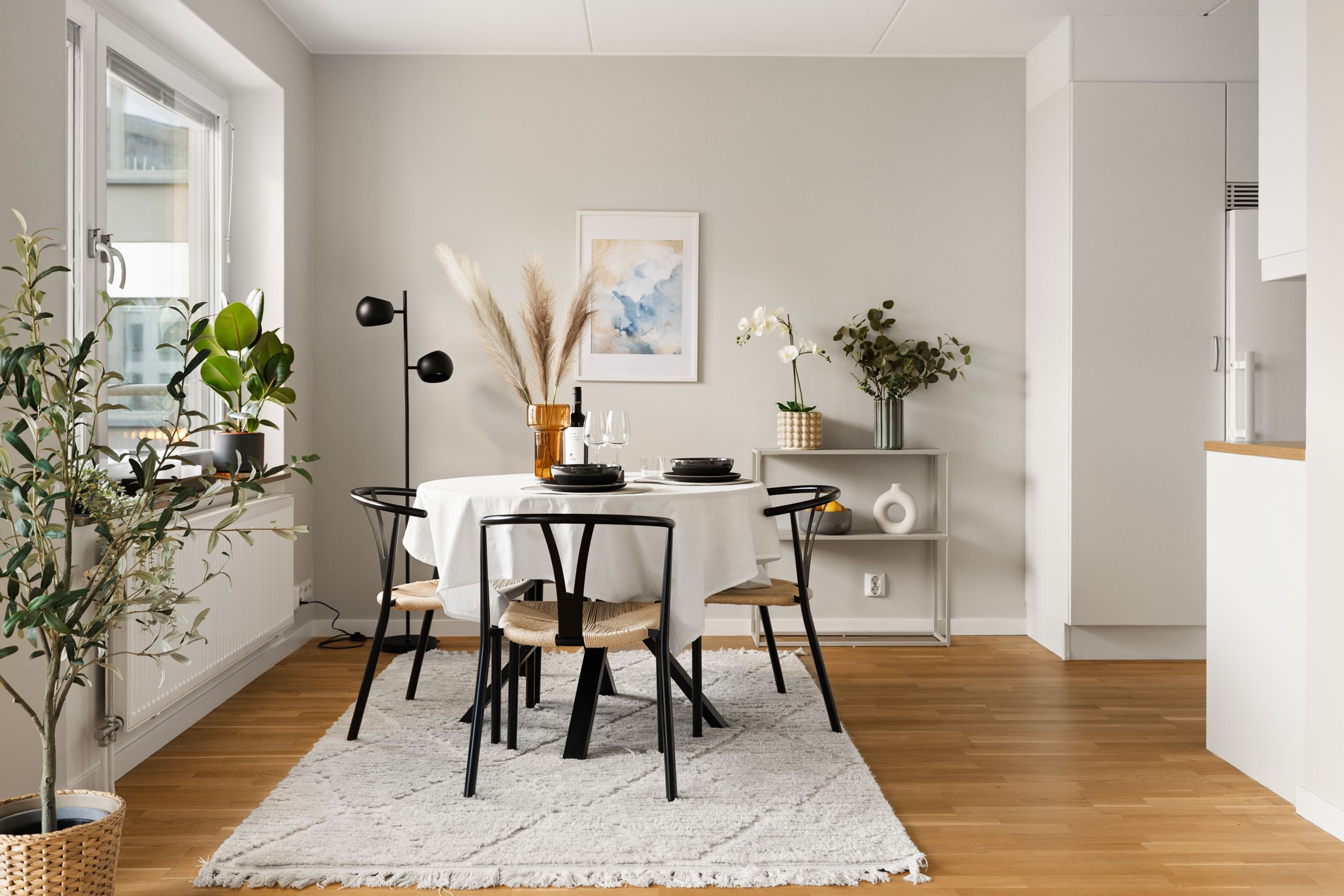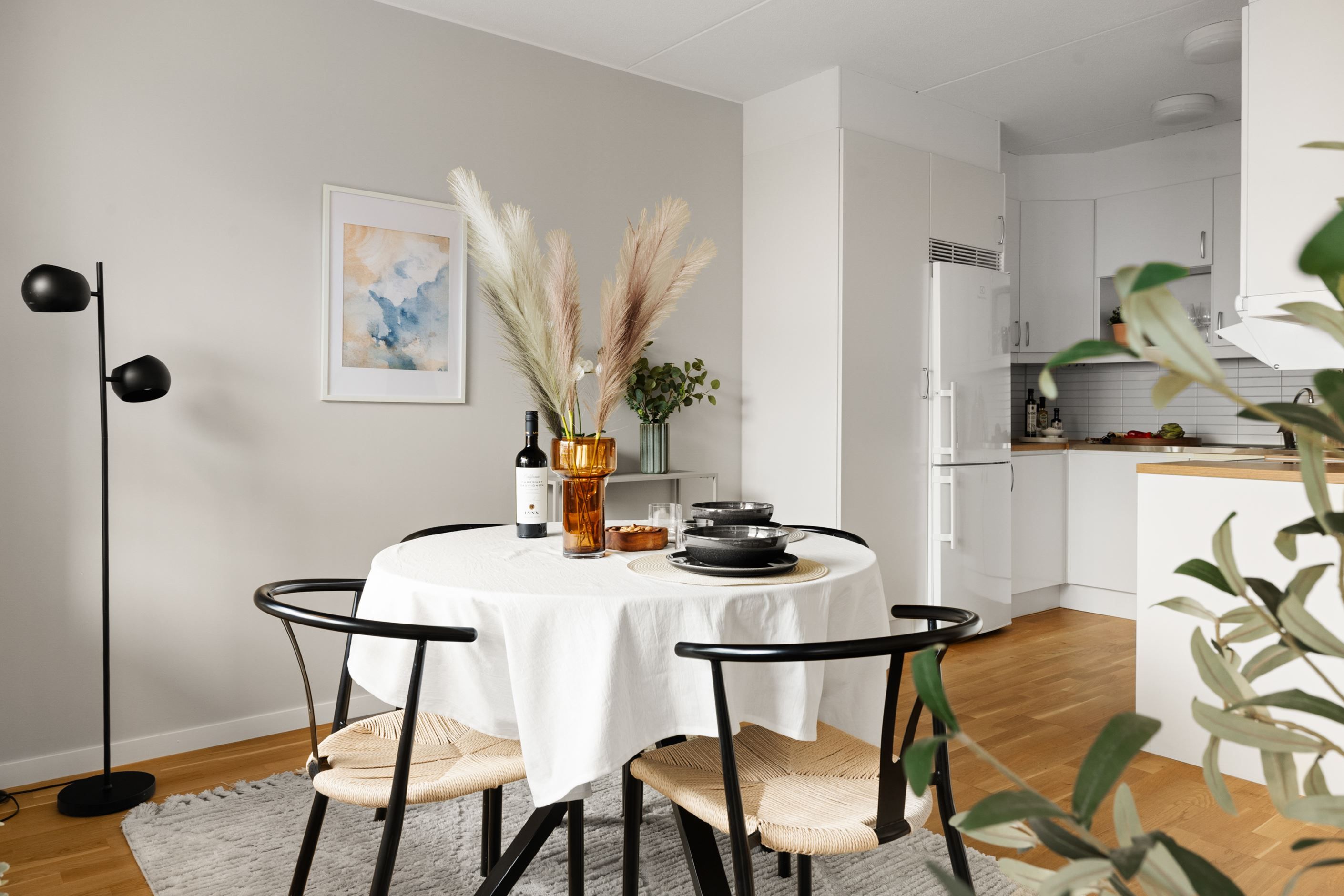 Lägenheten har öppen planlösning mellan kök och vardagsrum, vilket skapar en social planlösning perfekt för middagar och umgänge med vänner, här finns gott om plats för både matgrupp och rejäl soffgrupp. Genom vardagsrummet nås en härlig och solig balkong med utsikt över föreningens omtyckta och grönskande innergård. Lägenheten präglas av tidlösa materialval med ett helkaklat välutrustat badrum och genomgående parkettgolv som ger en enhetlig och exklusiv känsla i hela bostaden.