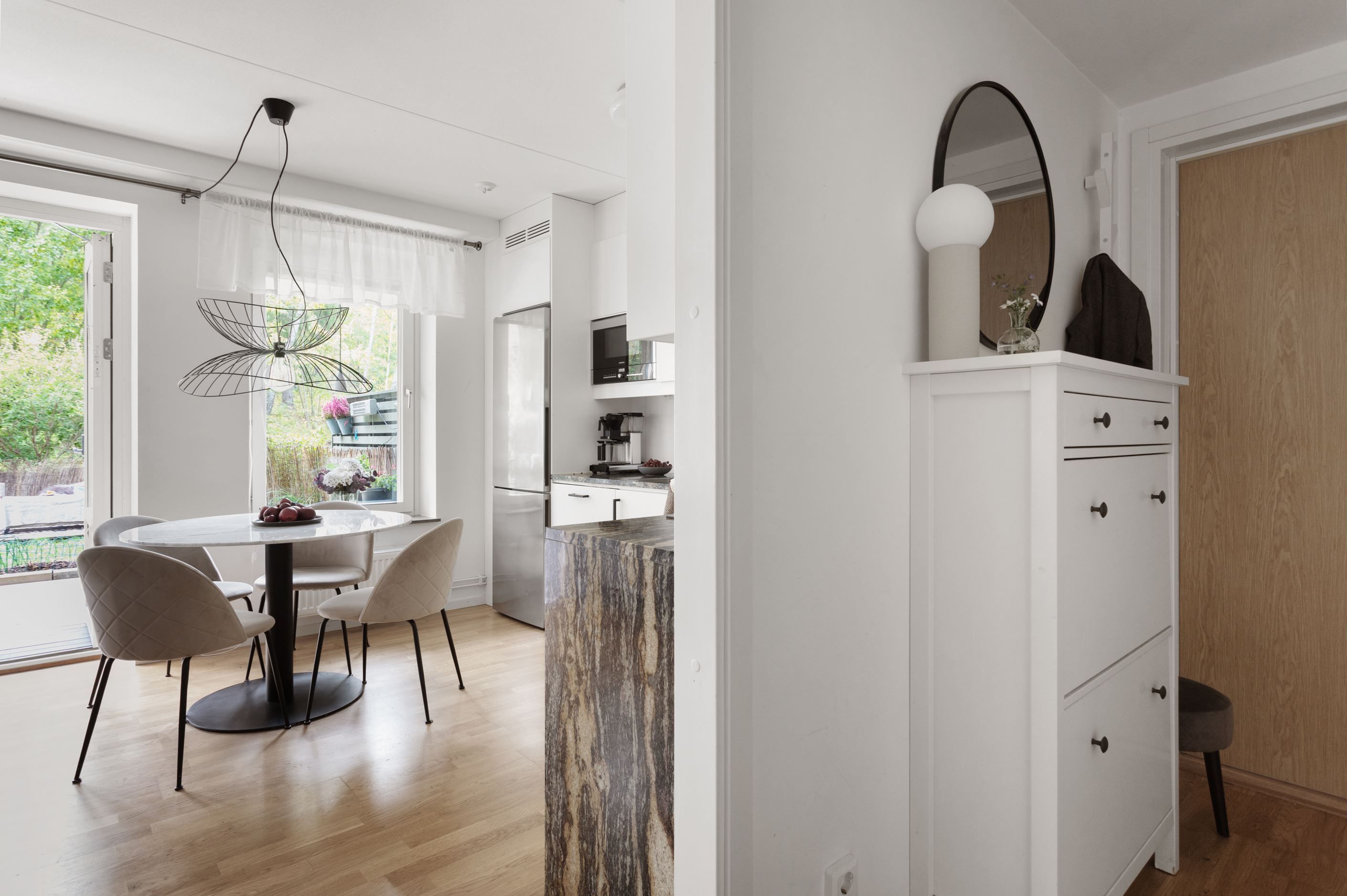 Välkommen till denna smakfulla lägenhet om 43 kvm – en modern och yteffektiv bostad där varje kvadratmeter är genomtänkt. Här bor du med direkt access till en generös, insynsskyddad uteplats som förlänger vardagsrummet ut i det fria. Perfekt för sommarens middagar, lunch i solen eller lugna stunder med en bok omgiven av grönska.