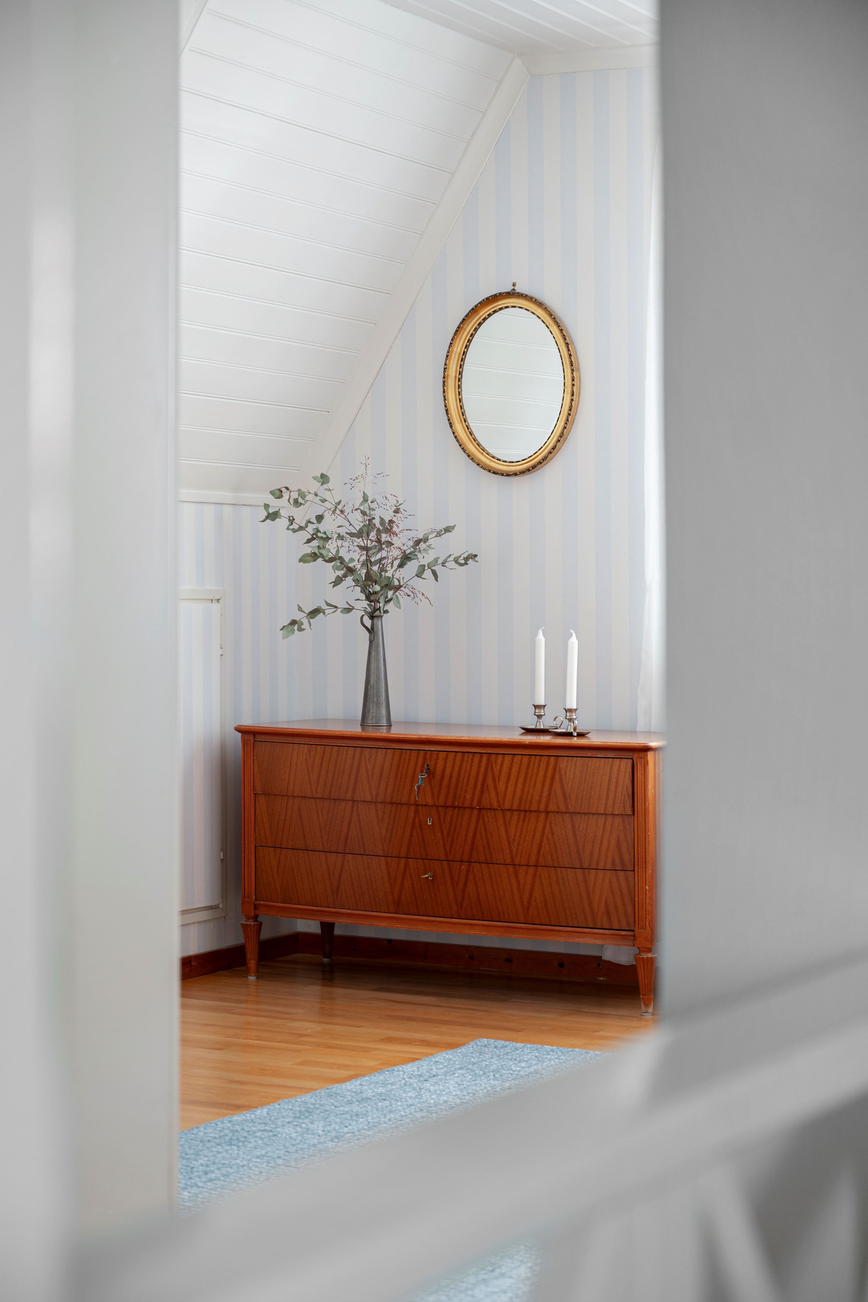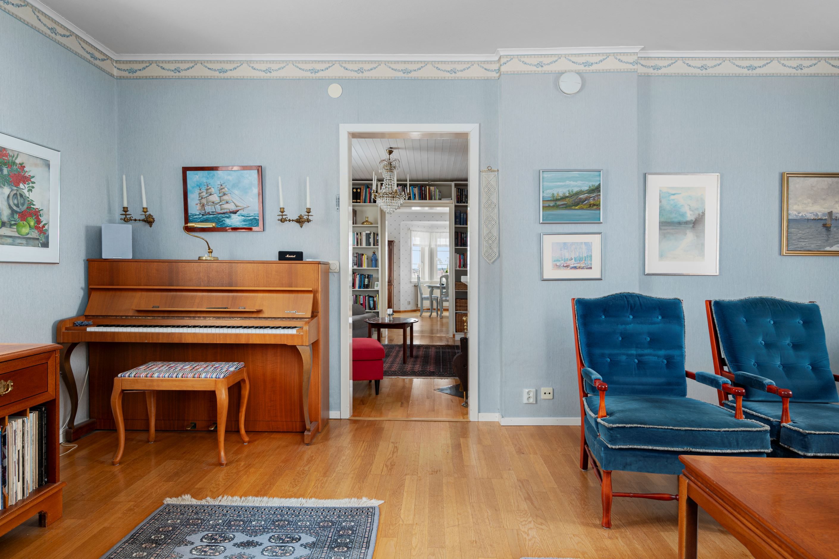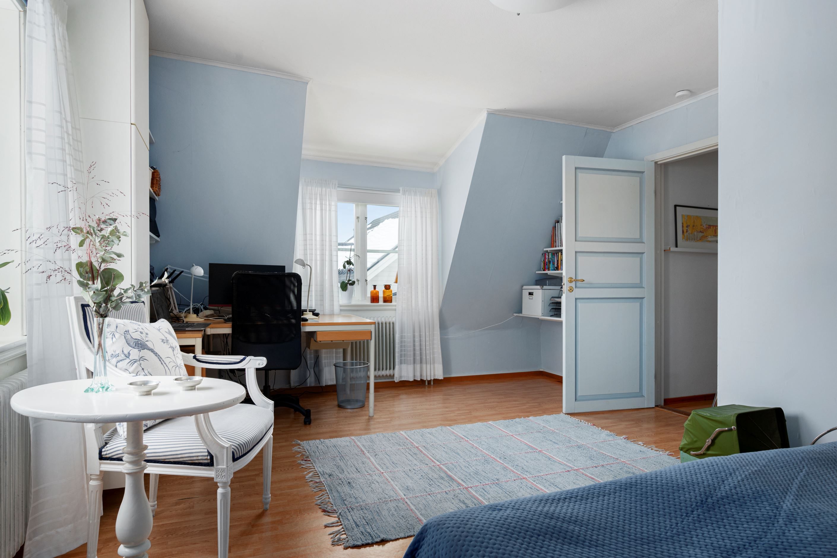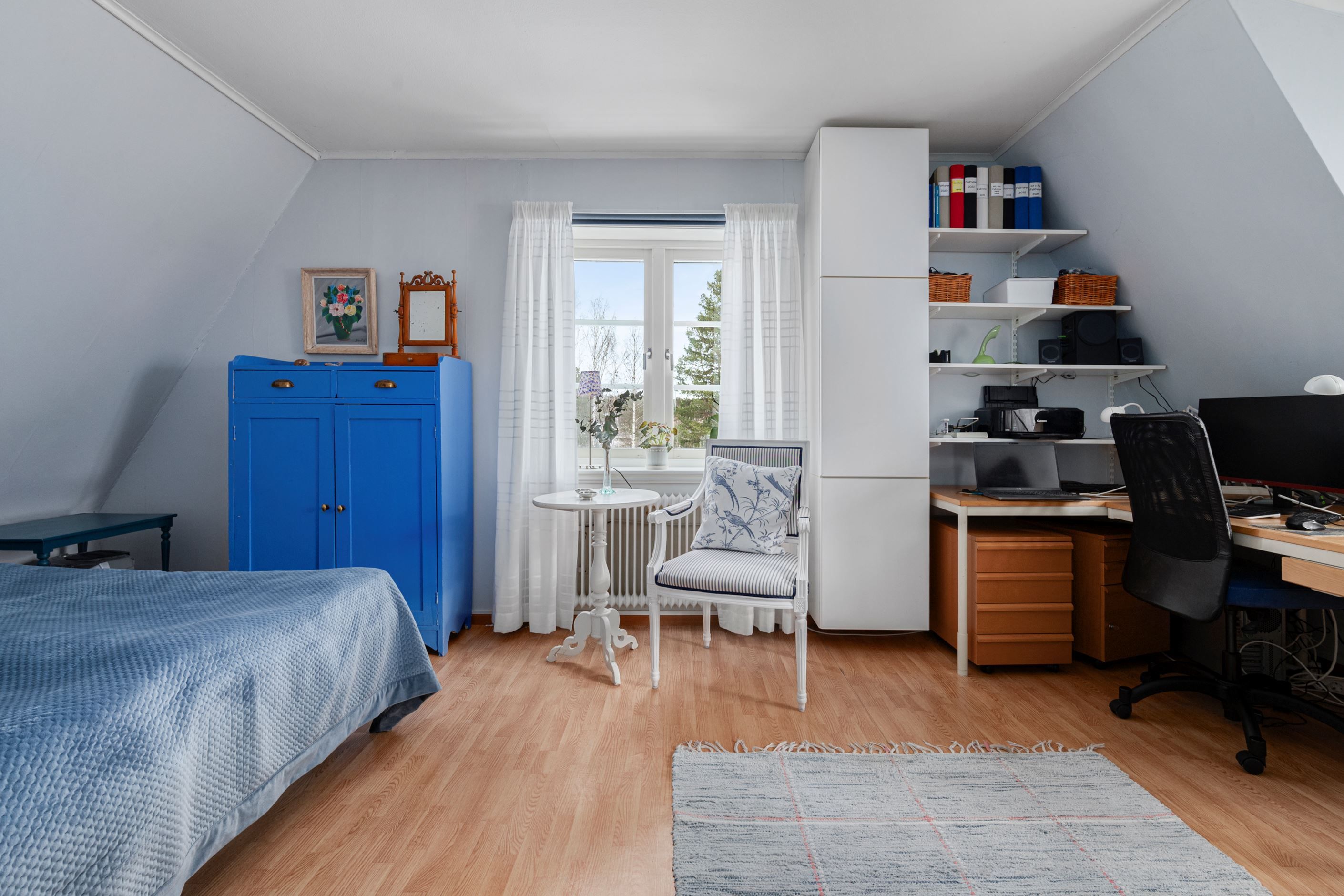 Entréplanet erbjuder dessutom ett hemtrevligt allrum, ett mindre WC samt ett flexibelt rum som idag nyttjas som tv-rum och bibliotek – lika väl lämpat för arbete hemifrån som för avkoppling och kreativitet. Planlösningen är både social och funktionell, med fina siktlinjer och en varm, ombonad känsla.