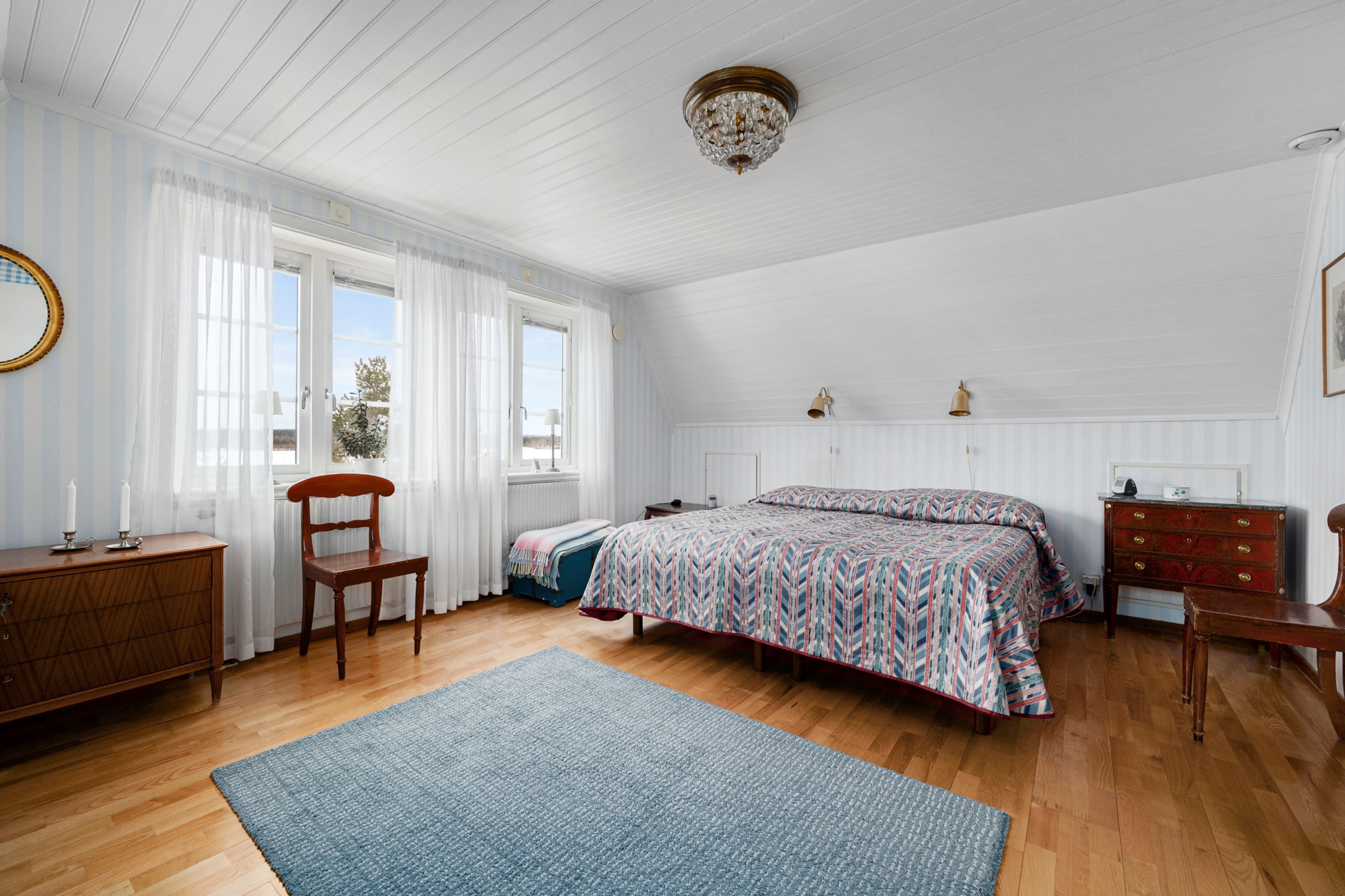 På övre plan väntar två stora sovrum med rogivande ljusinsläpp och gott om plats för både förvaring och personlig prägel. Via flertalet fönsterpartier går det sedan att se ut över havet som ständigt gör sig påmint i denna otroliga bostad.