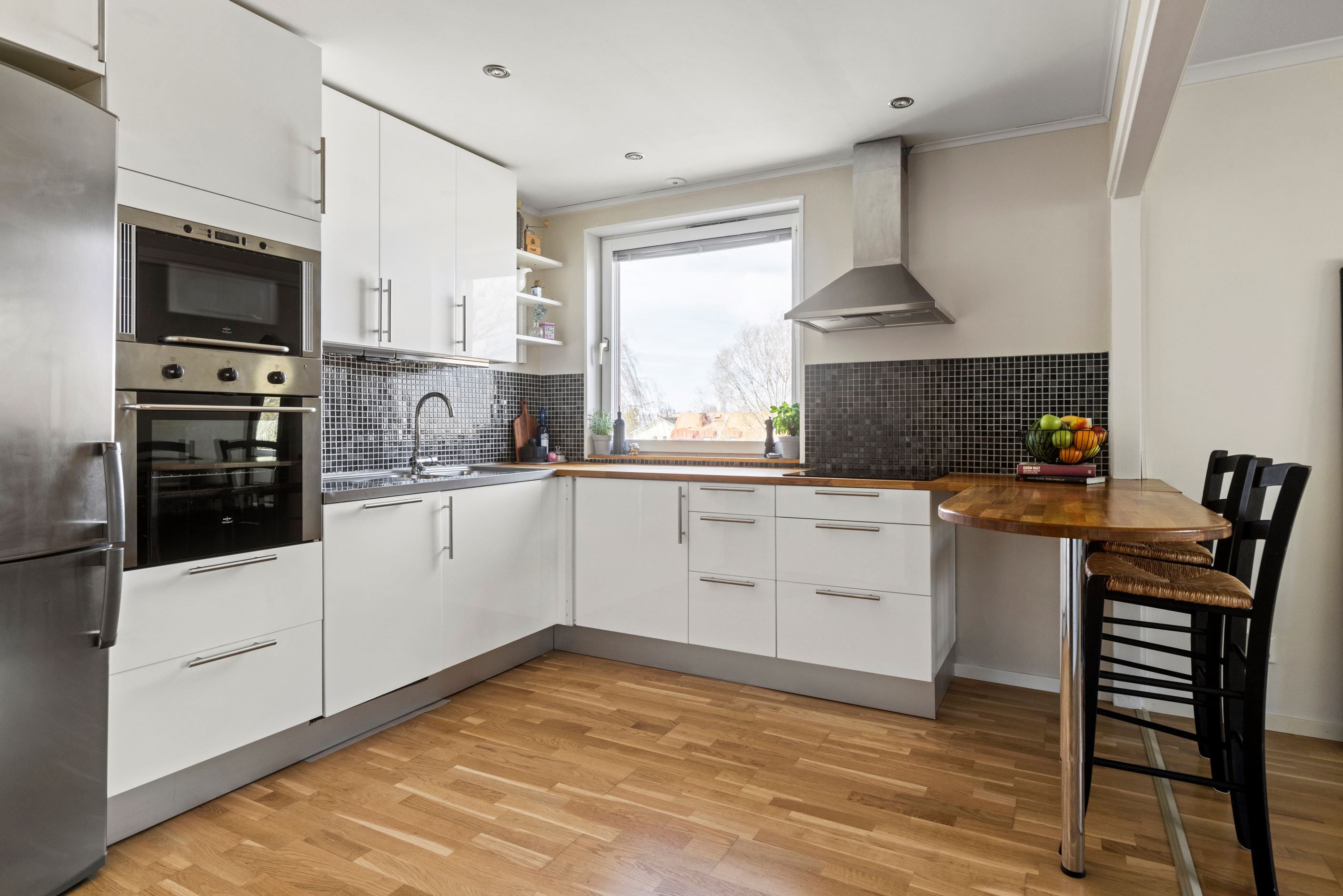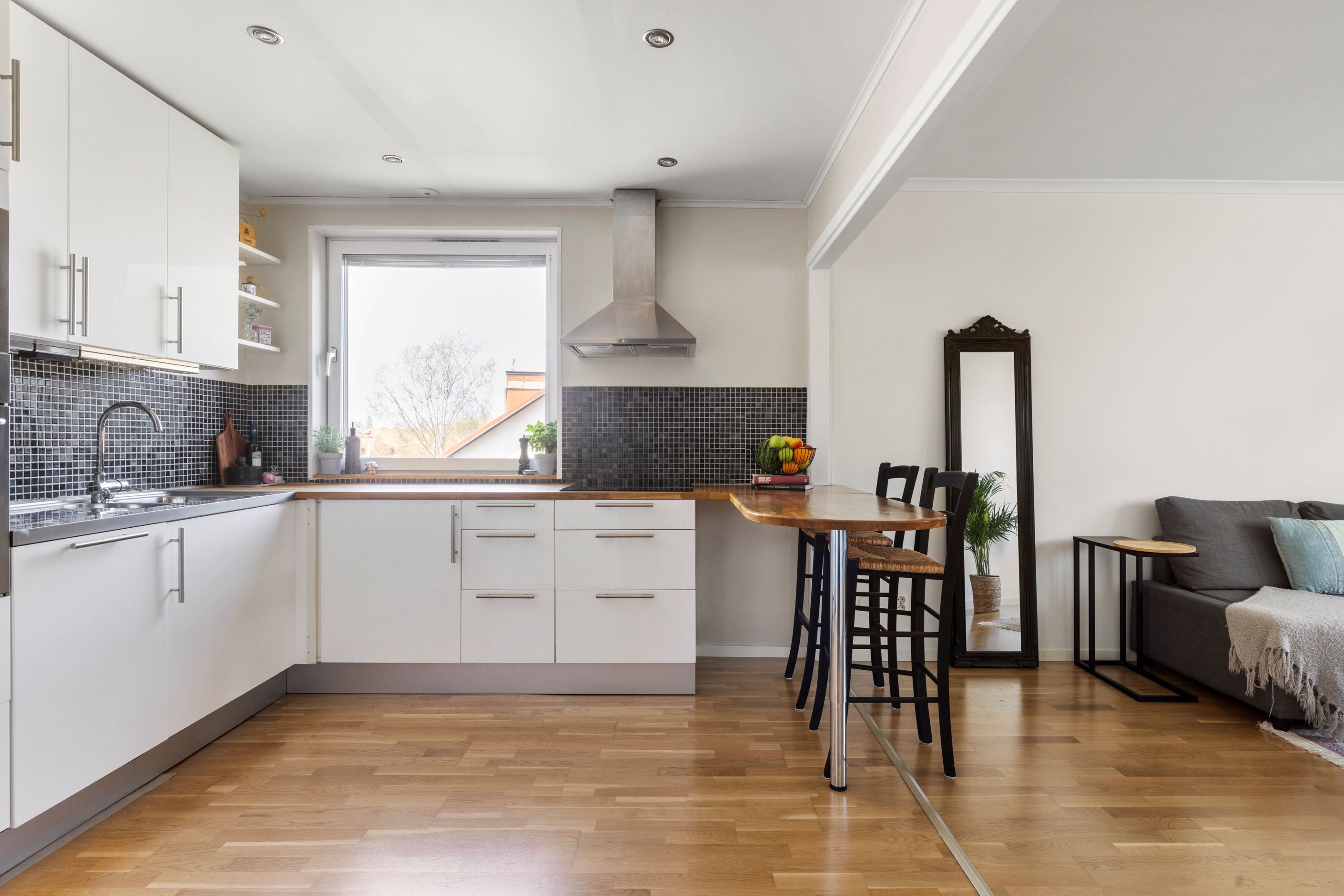 Välkomna till ett inflyttningsklart hem, där man bara kan njuta och bo in sig direkt! Lägenheten är i ett genomgående gott skick med ljust målade väggar och parkettgolv, en klassisk kombination som håller över tid och är enkel att anpassa efter alla typer av inredningsstilar. Den öppna planlösningen mellan kök och vardagsrum skapar en trevlig och social atmosfär i rummet och ger en inbjudande känsla vid middagar med familj och vänner. Det rymliga vardagsrummet leder dig ut till balkongen, en fantastiskt generös balkong som vetter mot ett litet grönområde. Här kan du njuta av sommarvärmen och tack vare att huset är byggt uppe på höjden, så har du en fin utsikt över takåsarna. Vidare finns även ett väl tilltaget sovrum, även här med utgång till balkongen. Ett schysst renoverat badrum som har utrustats med tvättmaskin. Till bostaden hör även ett källarförråd samt matkällare som kompletterar lägenhetens redan bra förvaringsutrymmen.