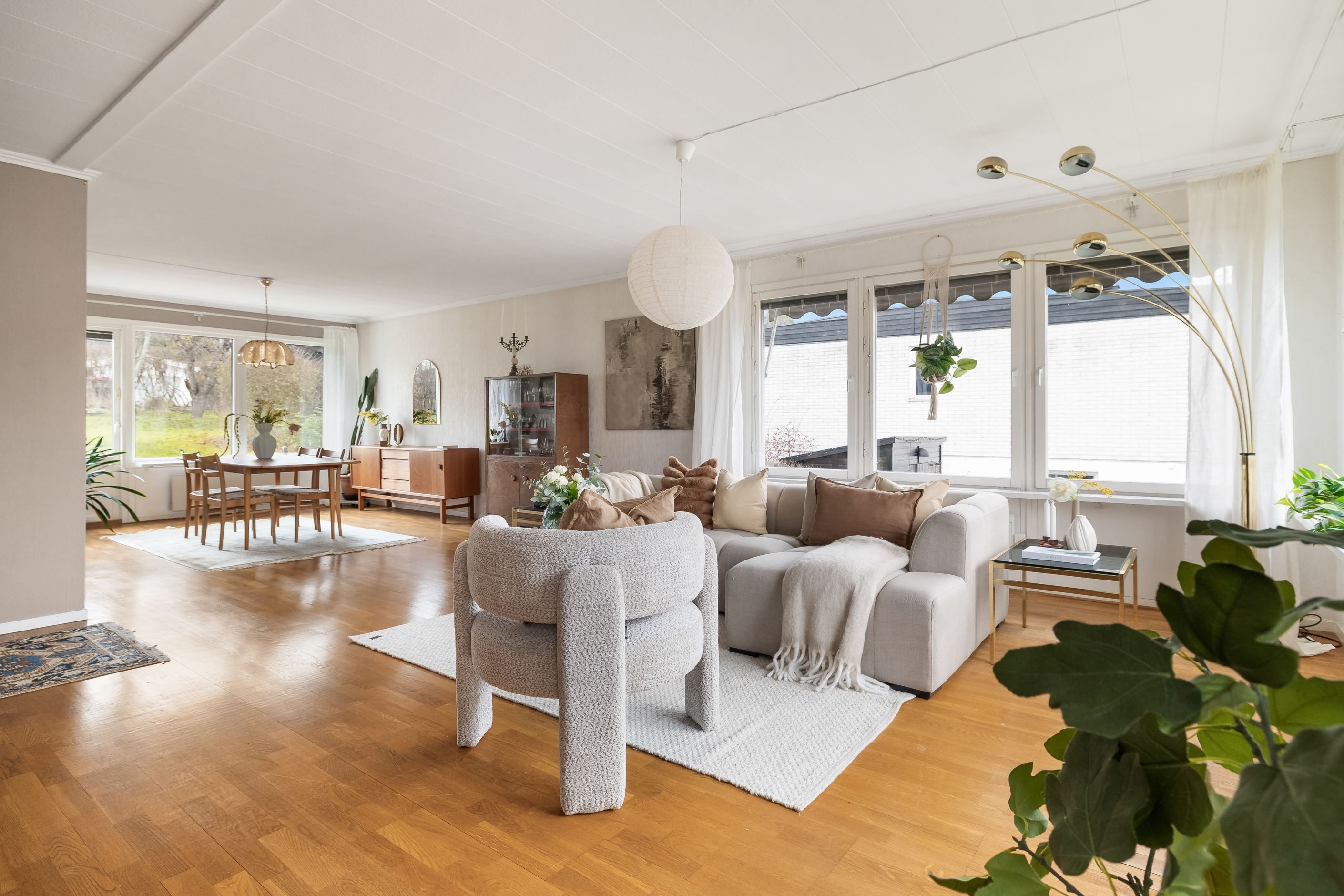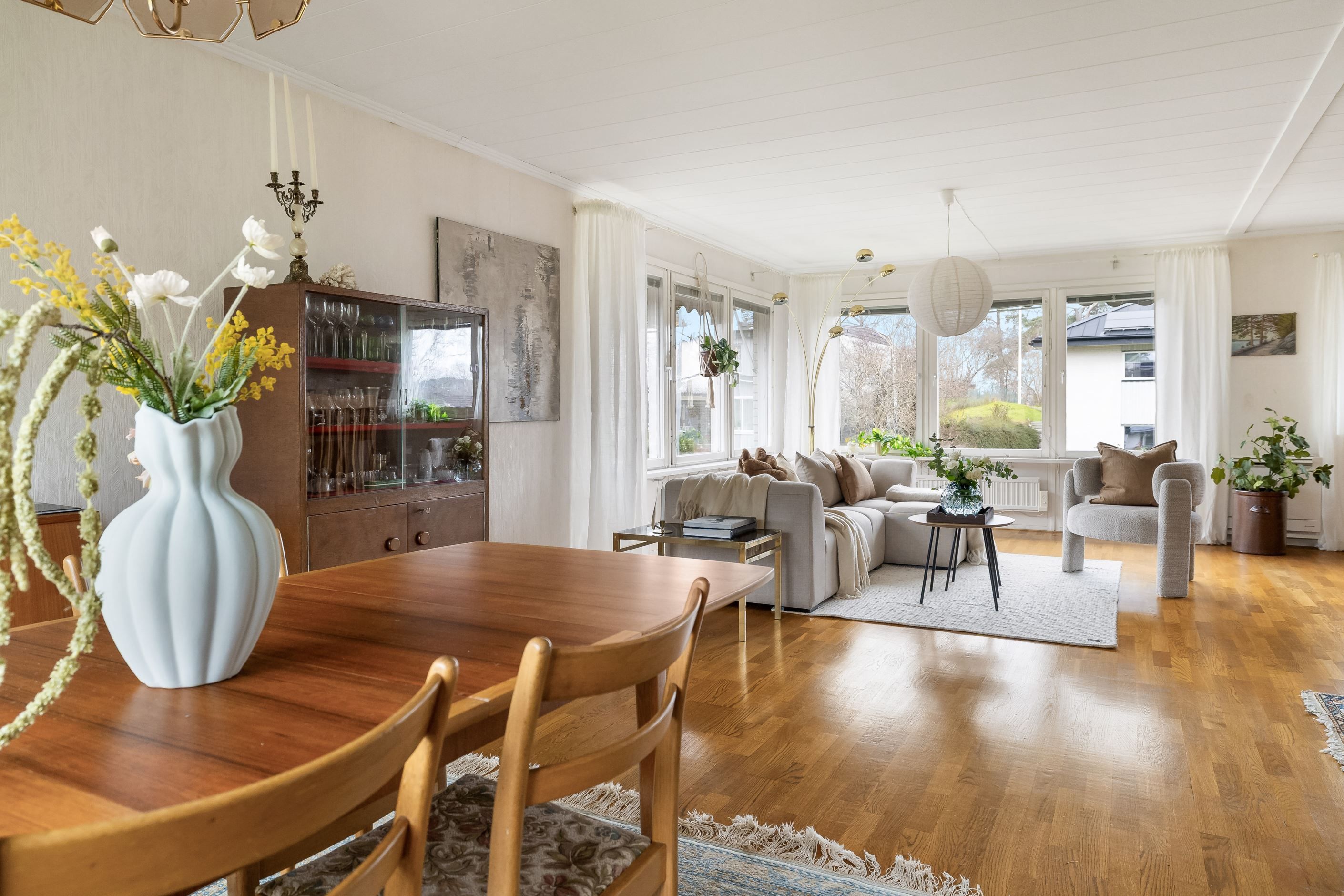 Öppen planlösning mellan matsal och vardagsrum