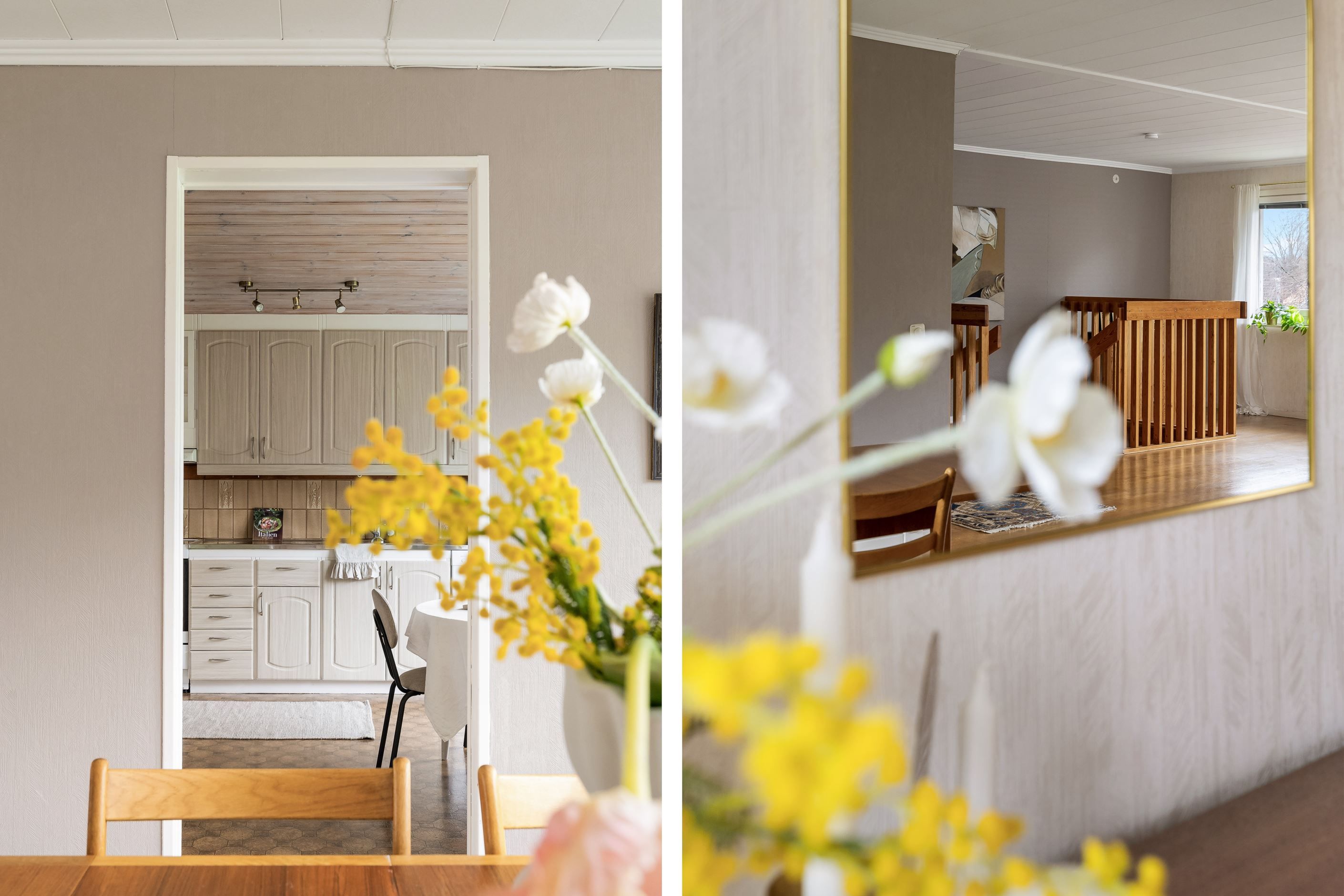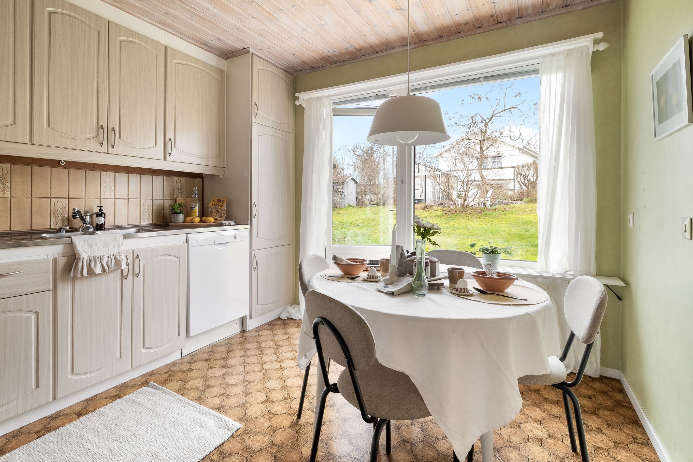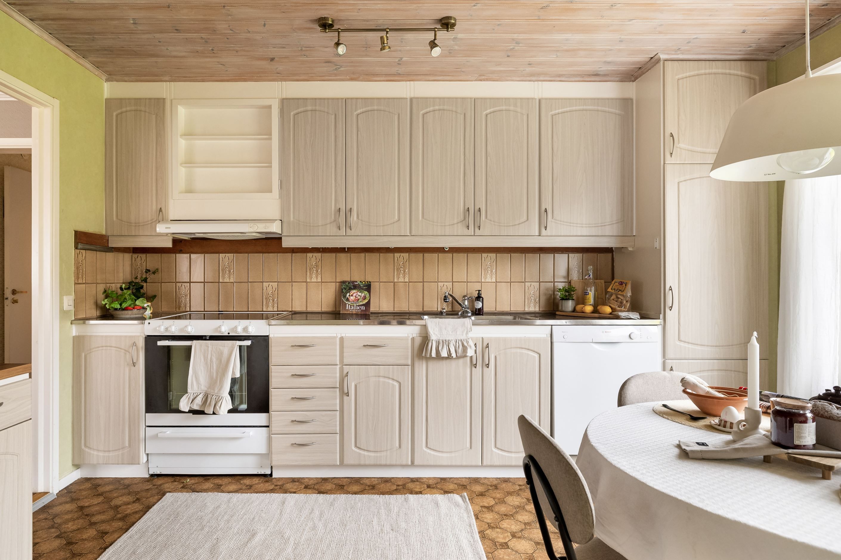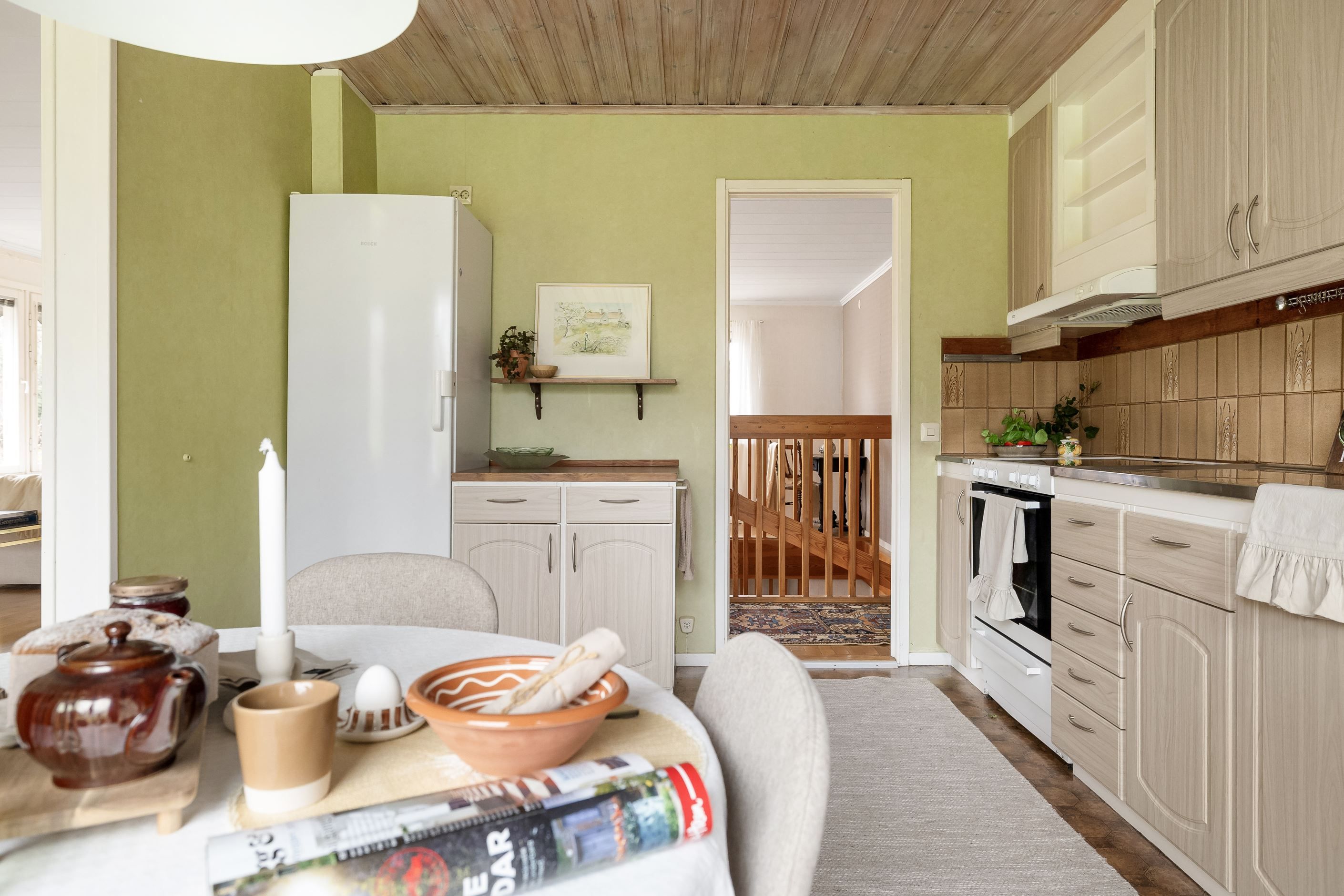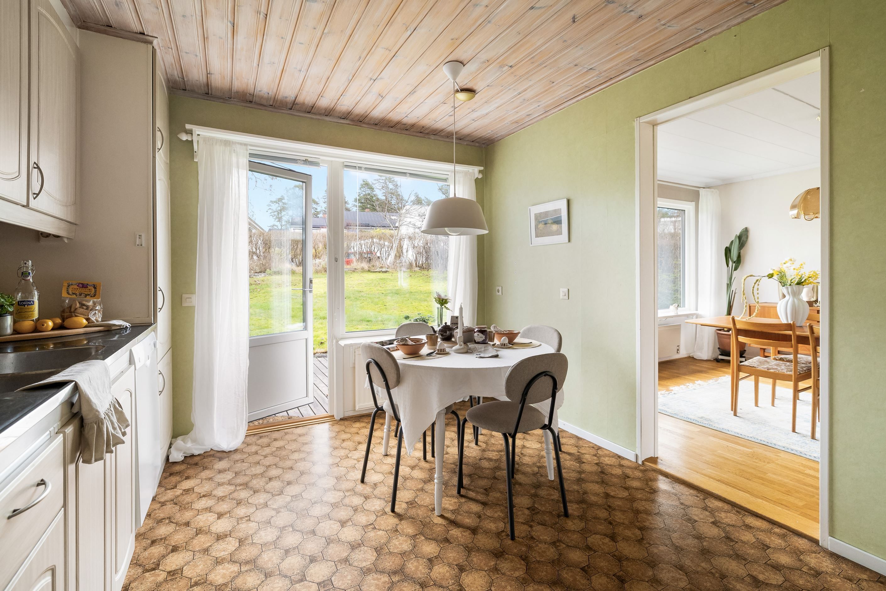 Matplats i kök och utgång till altanen