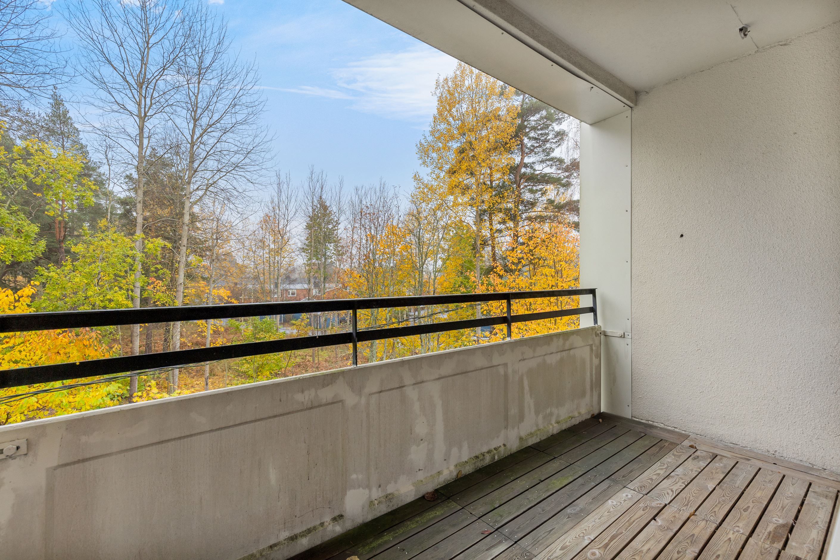 Här bor du i ett lugnt och grönt område med skogen som närmsta granne – perfekt för dig som vill njuta av naturen men ändå ha nära till service, skolor, förskolor och pendeltåg. Balkongen vetter i underbart söderläge, där du kan slå dig ner med morgonkaffet, odla dina egna örter eller bara njuta av solen och den fridfulla utsikten mot trädkronorna.