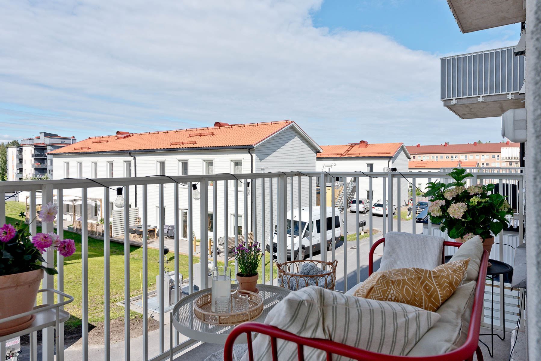 Låg månadsavgift där värme, vatten, kabel-tv och internet ingår. Trevligt föreningsområde med stor gemensam gräsyta med lekplats, en sittgrupp och grill.