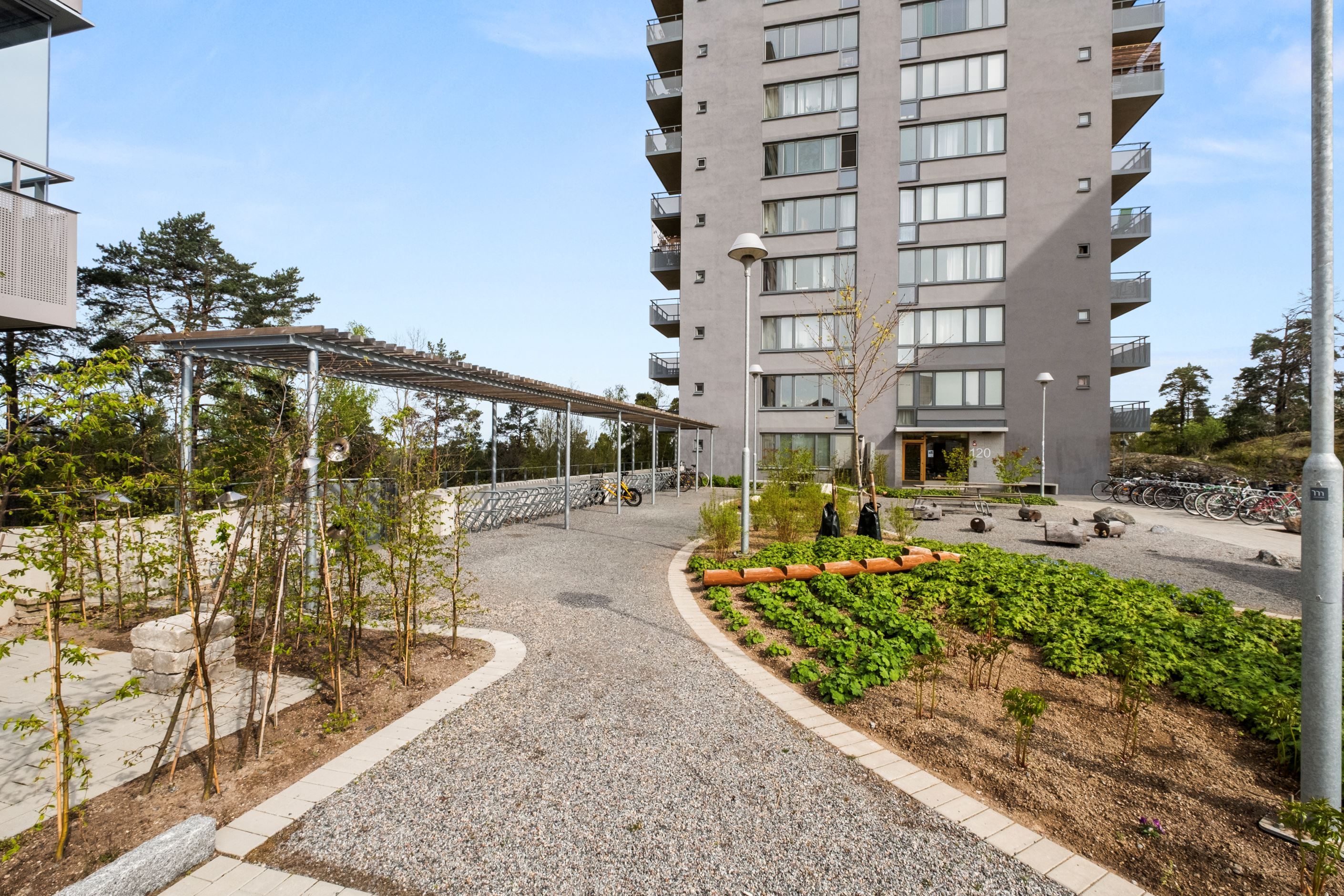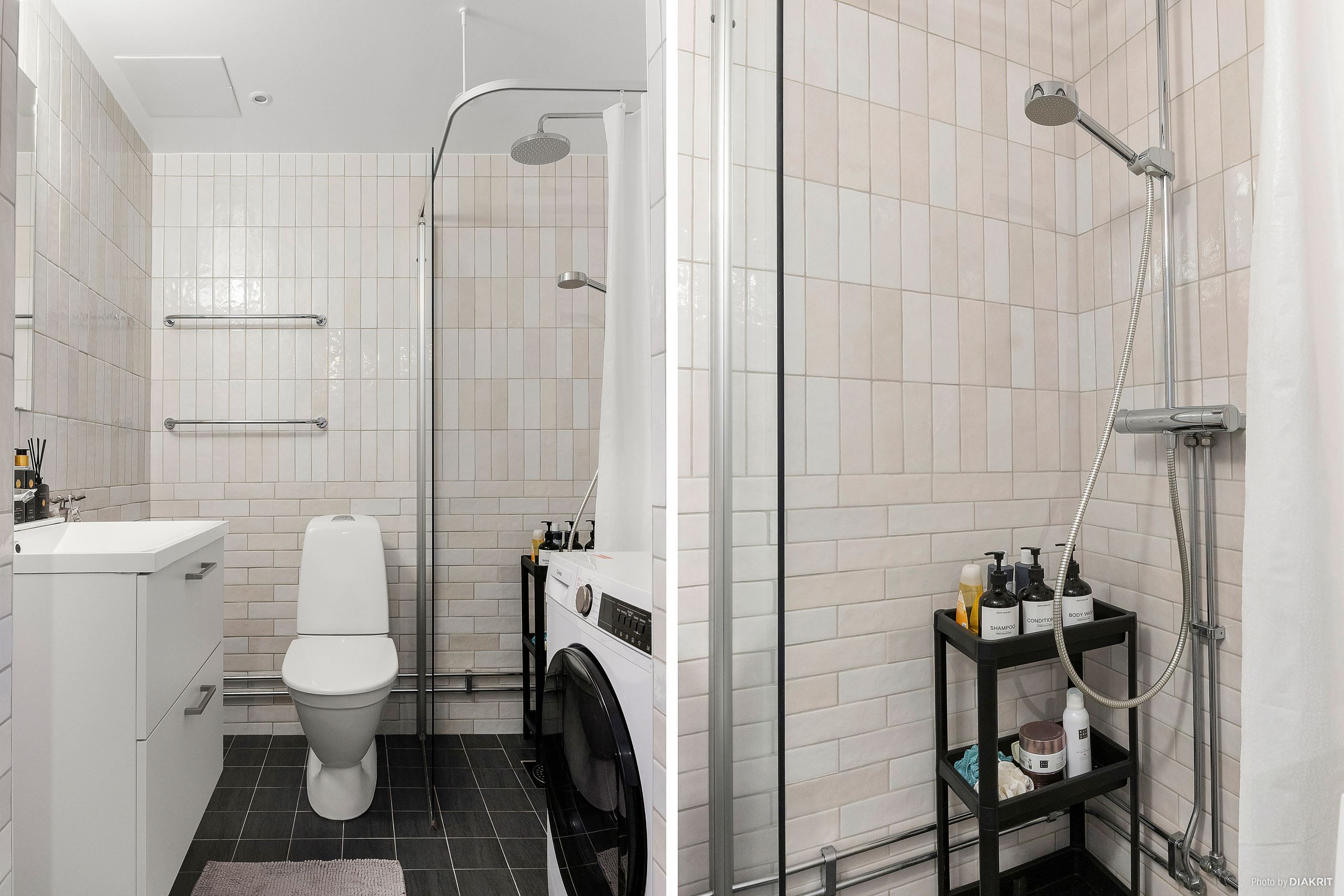 Bostaden rymmer två generösa sovrum med plats för dubbelsäng och smarta förvaringslösningar. Det påkostade, helkaklade badrummet är utrustat med takdusch, kommod med handfat, spegelskåp samt förberett för tvättmaskin och torktumlare. Ytterligare förvaring finns i flera garderober, i sovrummen och dessutom i ett tillhörande källarförråd.