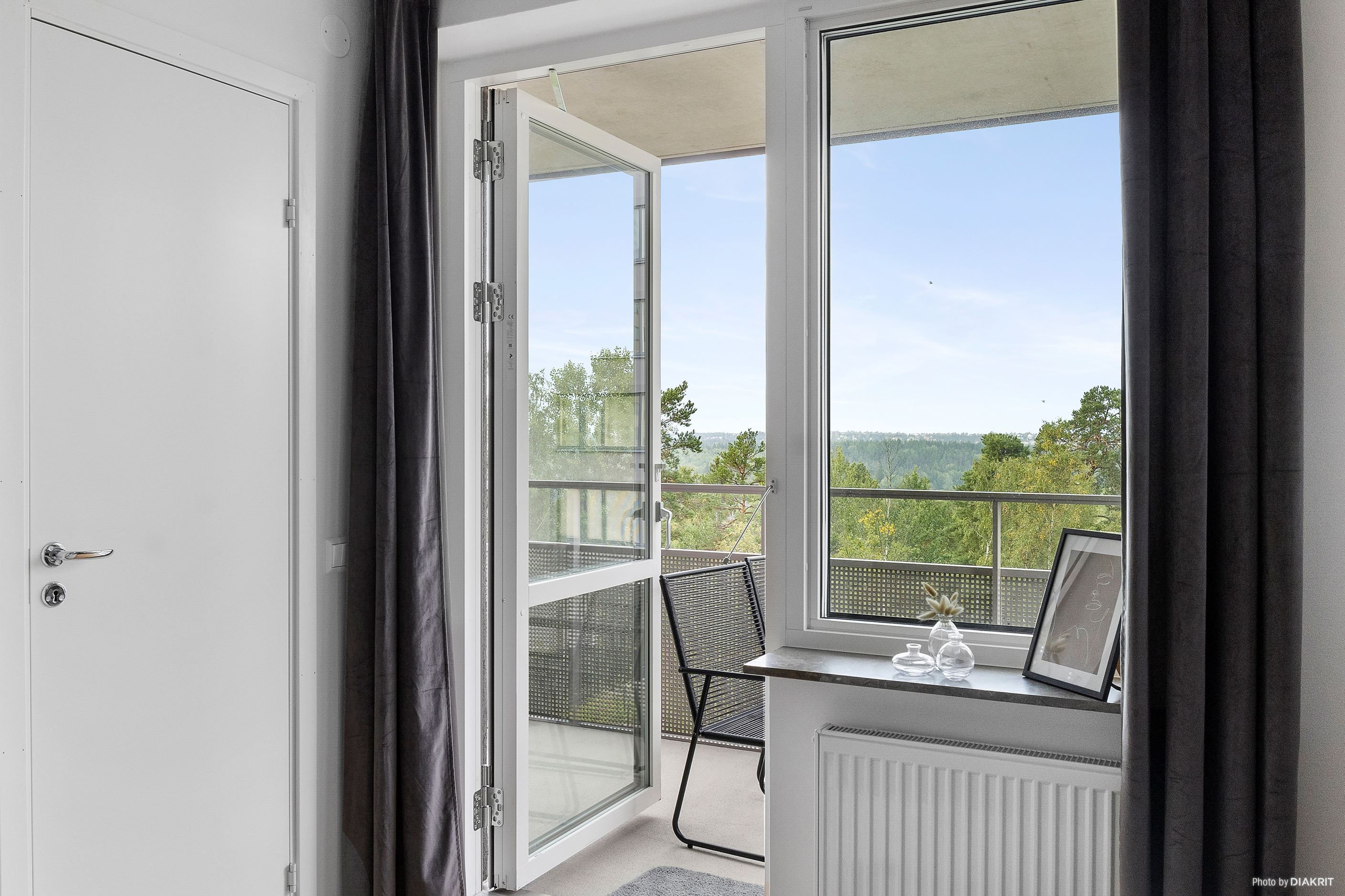 Redan vid första steget in möts du av en välplanerad trea där stora panoramafönster släpper in rikligt med ljus och skapar en luftig känsla genom hela hemmet. Den generösa balkongen blir en naturlig förlängning av bostaden – här finns gott om plats för möblering och sociala stunder med nära och kära, samtidigt som du bjuds på milsvid utsikt över grönskande natur och vackra solnedgångar.