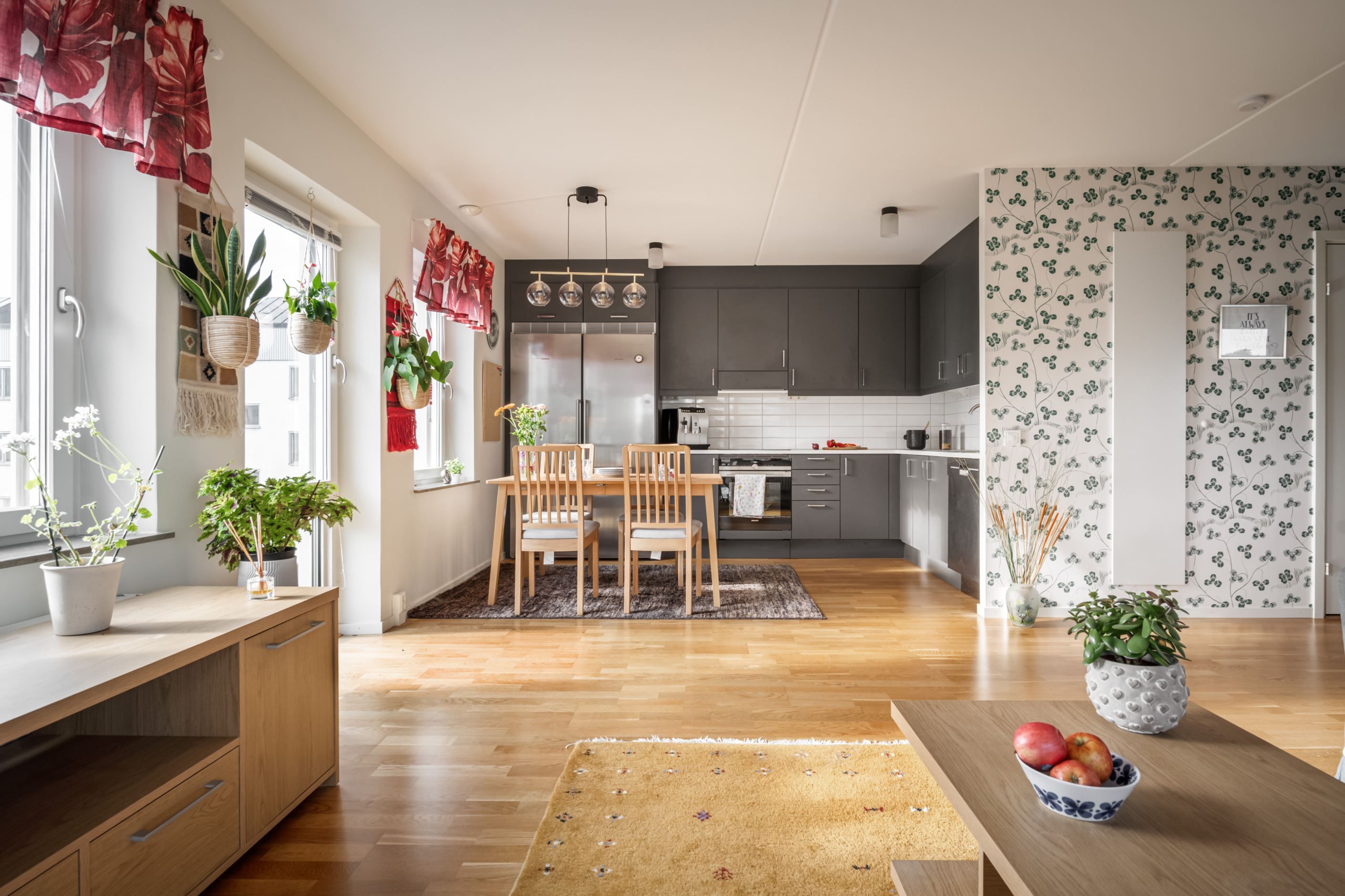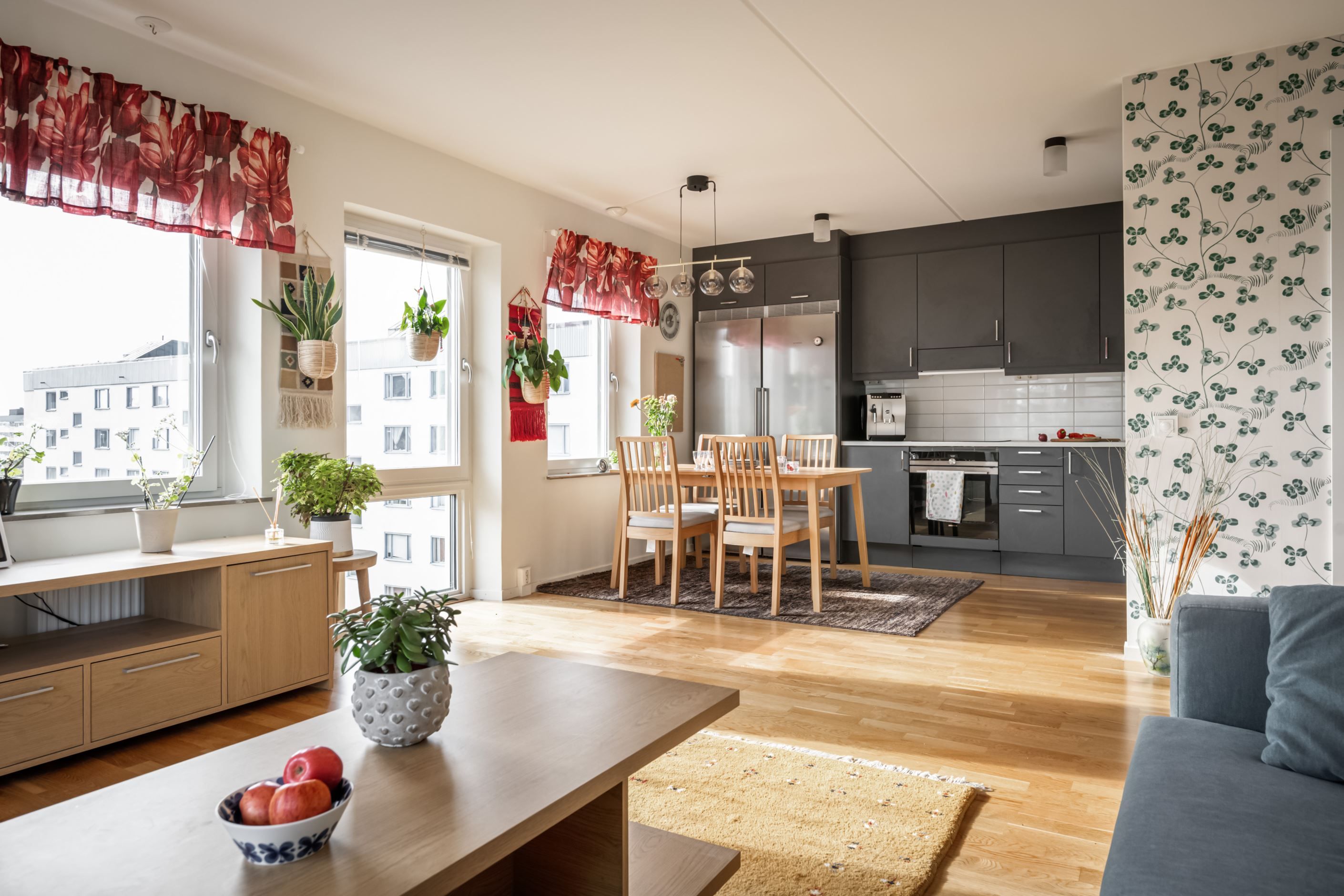 På gränsen till Mälarhöjden finner ni denna underbara moderna gavel trea om 78 kvm i en fastighet som byggdes 2017! Välplanerad lägenhet med en genomgående, öppen och social planlösning som erbjuder allt du kan önska. Här får ni stora fönsterpartier som släpper in gott om ljus samt en stor möblerbar balkong i väster läge! Lättmöblerat och luftigt vardagsrum i öppen planlösning mot ett toppmodernt kök. Två rymliga och väldisponerade sovrum med goda förvaringsmöjligheter. Seperat klädkammare/förråd i bostaden som skapar ytterligare bra förvaring. Stilrent helkaklat badrum med tvättdel. Garage finns i huset. Höghusen i föreningen är Svanenmärkta, vilket betyder att dom uppfyller strikta miljökrav.