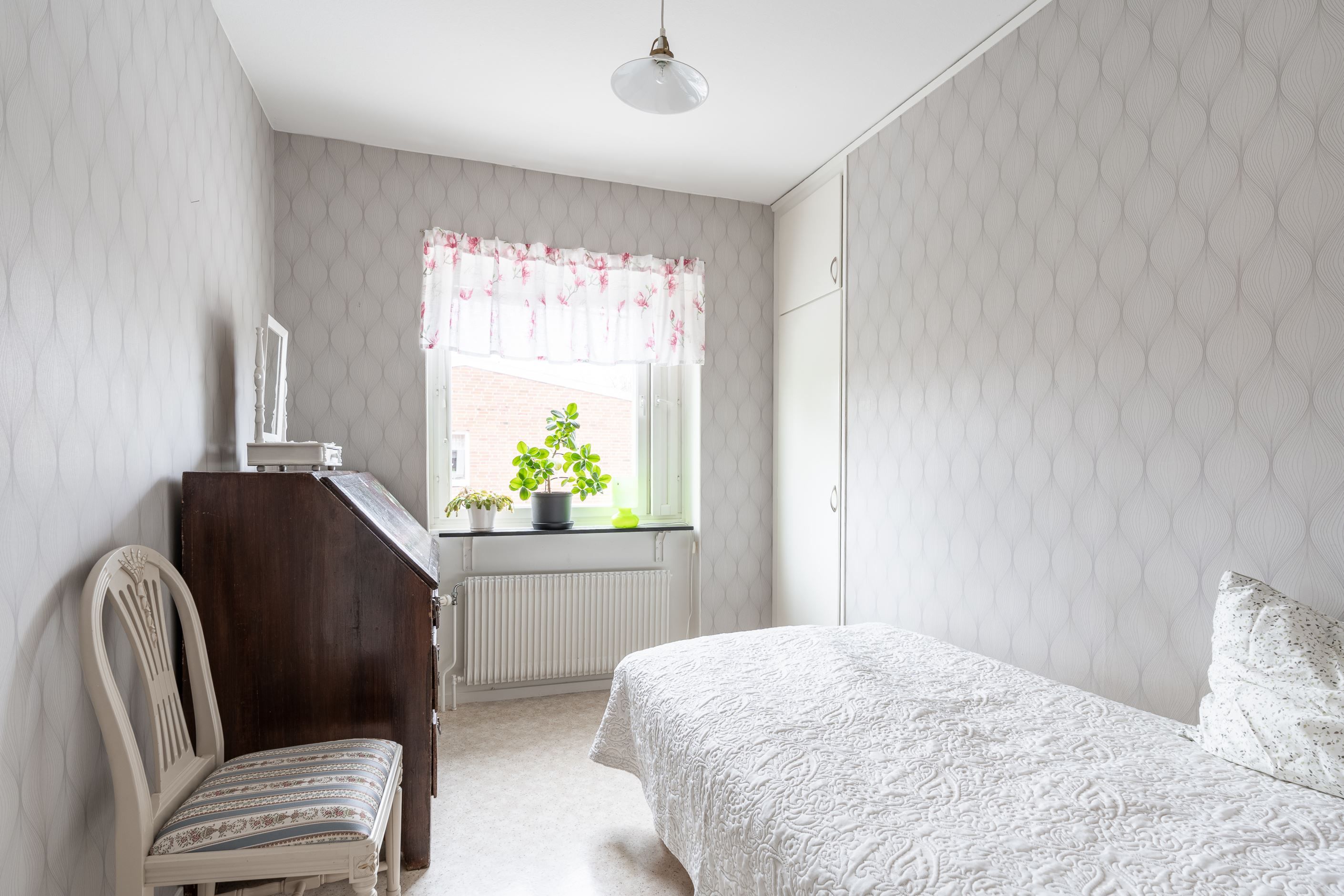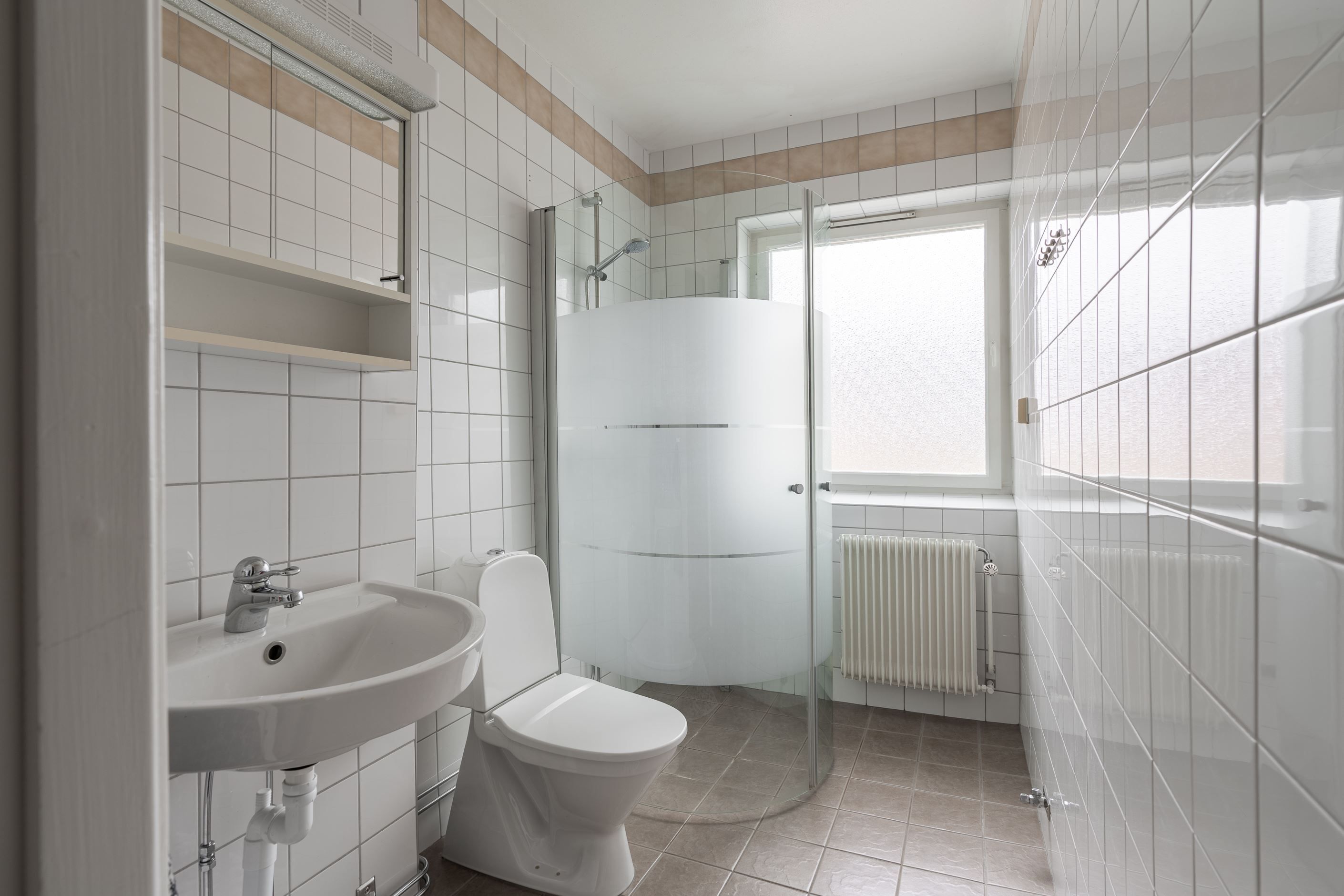 Det rymliga och helkaklade badrummet går i ljusa kulörer och har ett fönster som ger både ljusinsläpp och möjlighet till vädring. I bostadens mitt finns en rymlig och praktisk klädkammare – idealisk för ordning och extra förvaring. Bostaden erbjuder tre härliga sovrum, varav det största har en generös garderobsvägg.