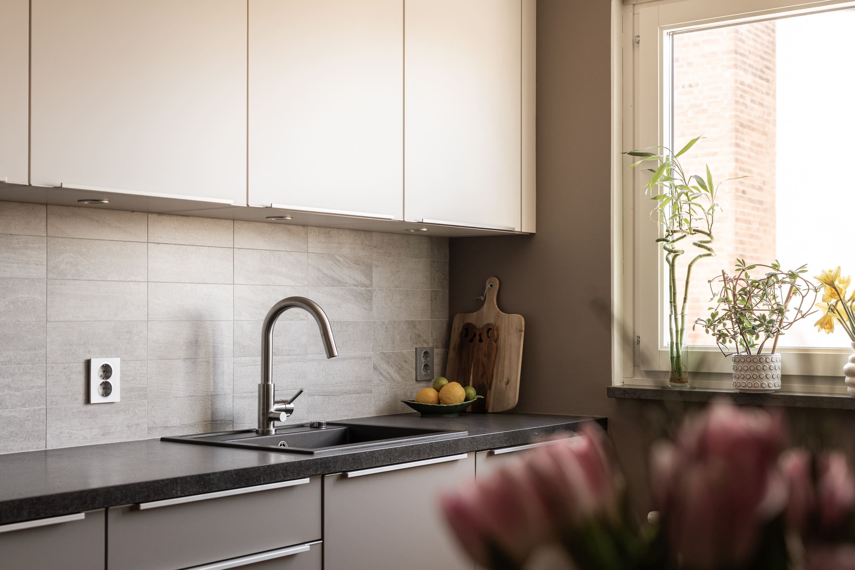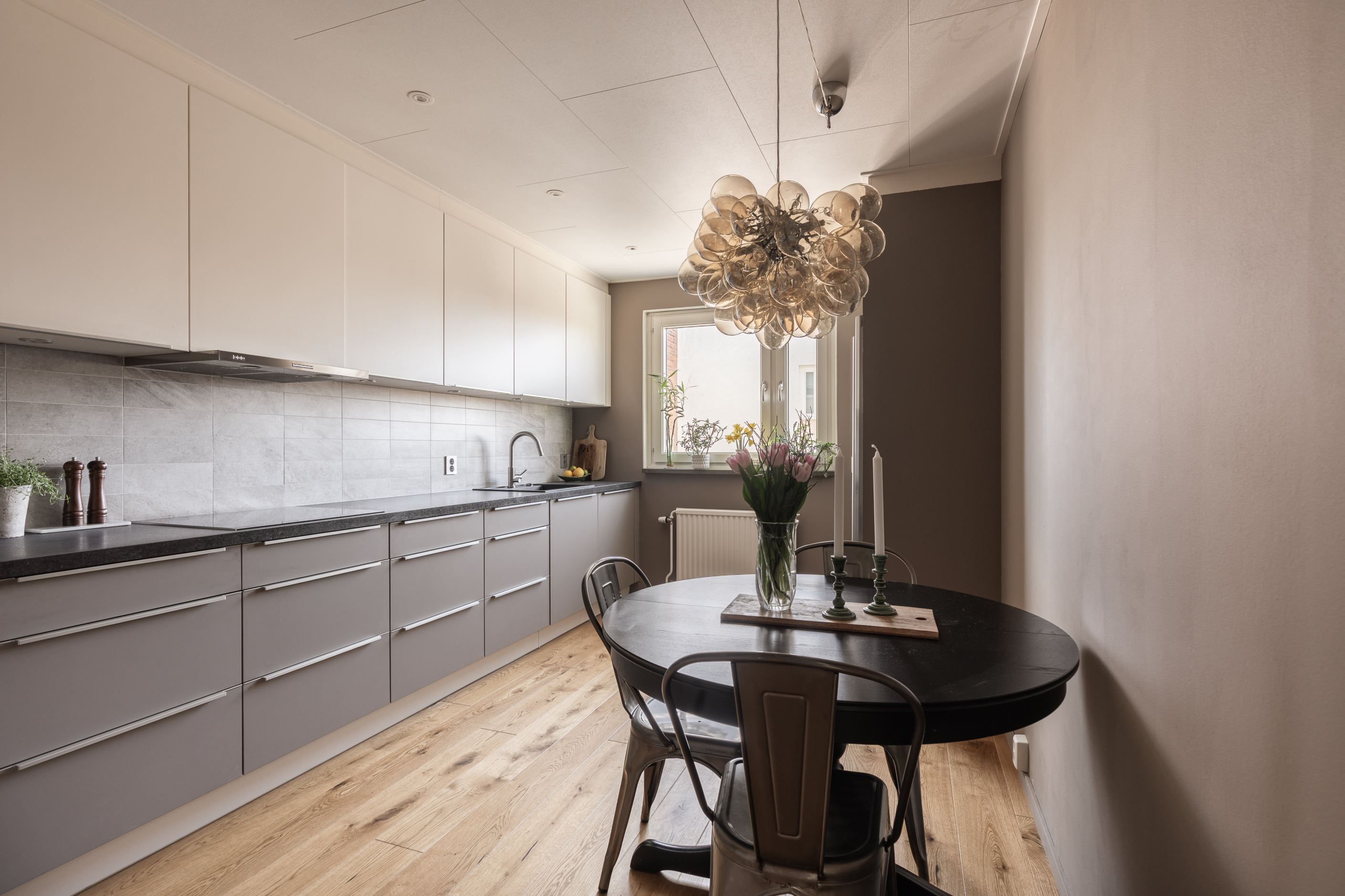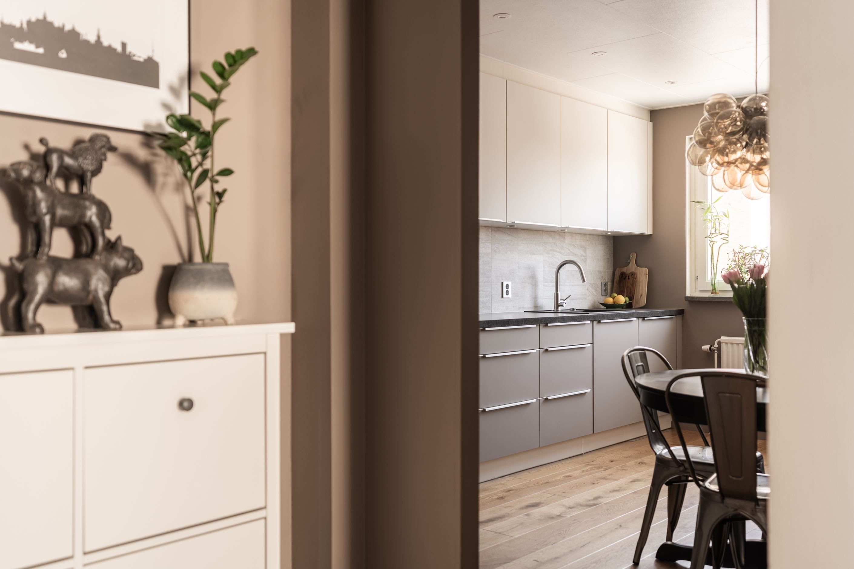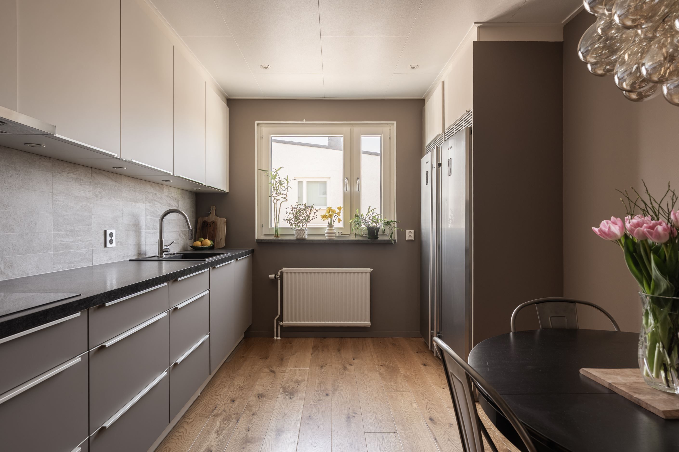 Köket och övriga ytor går i en modern och stilren ton som också ger en varm och hemtrevlig känsla.