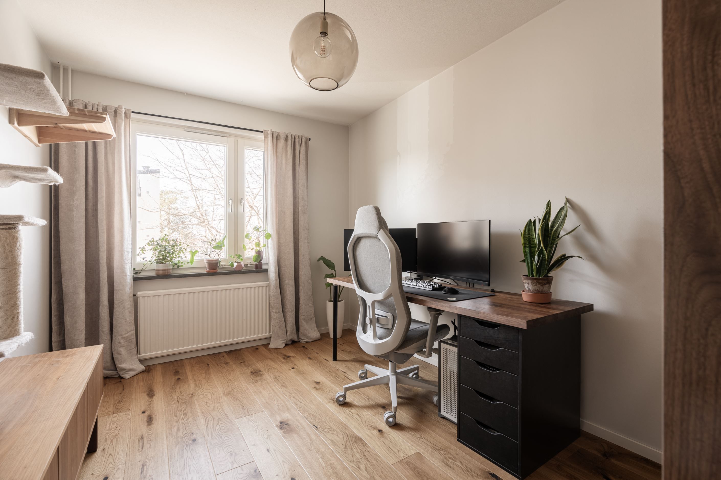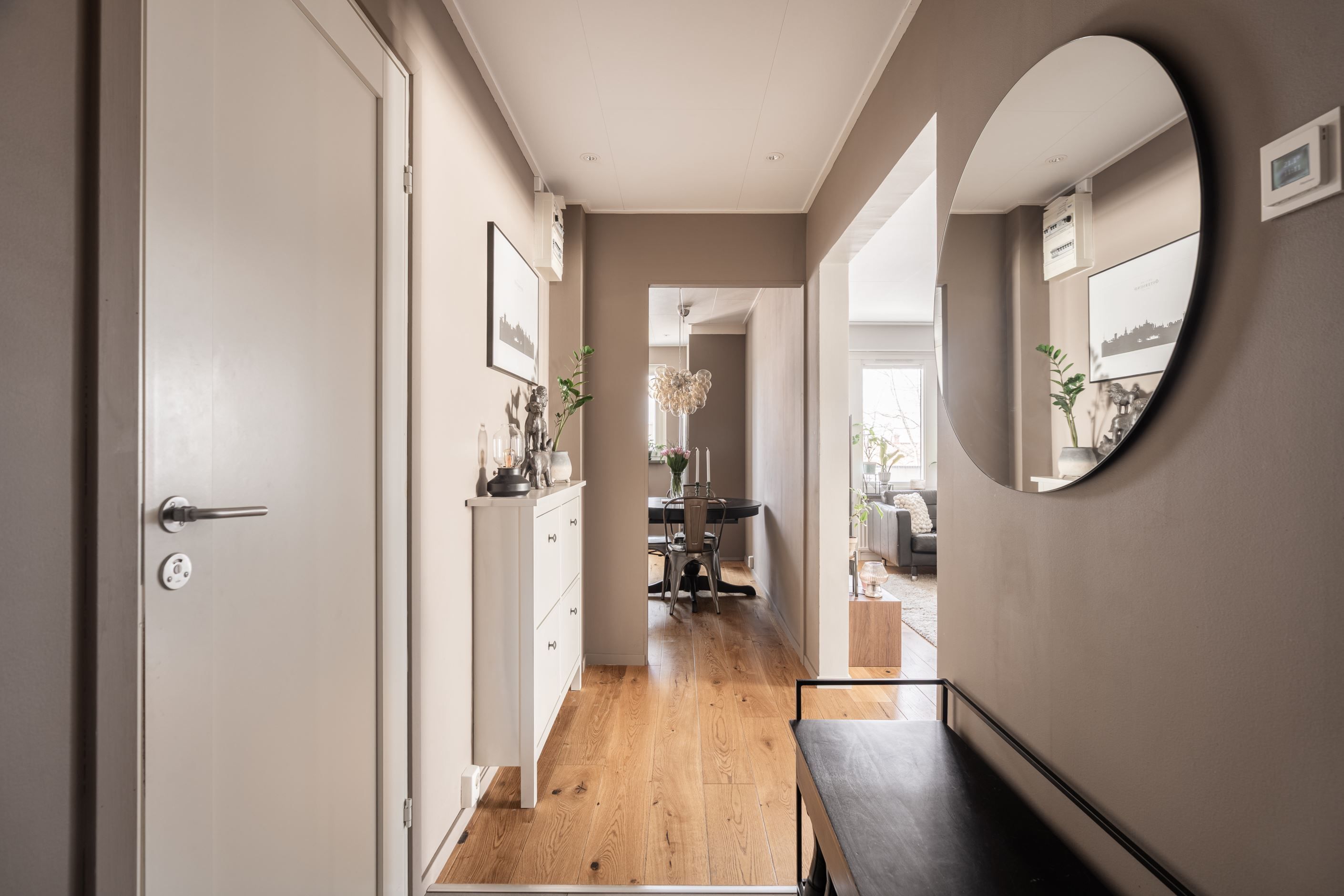 Här finns gott om förvaring, både i lägenheten och i ett närliggande förråd. Det är ett hem där allt känns på plats – modernt, hemtrevligt och lätt att trivas i från första stund.