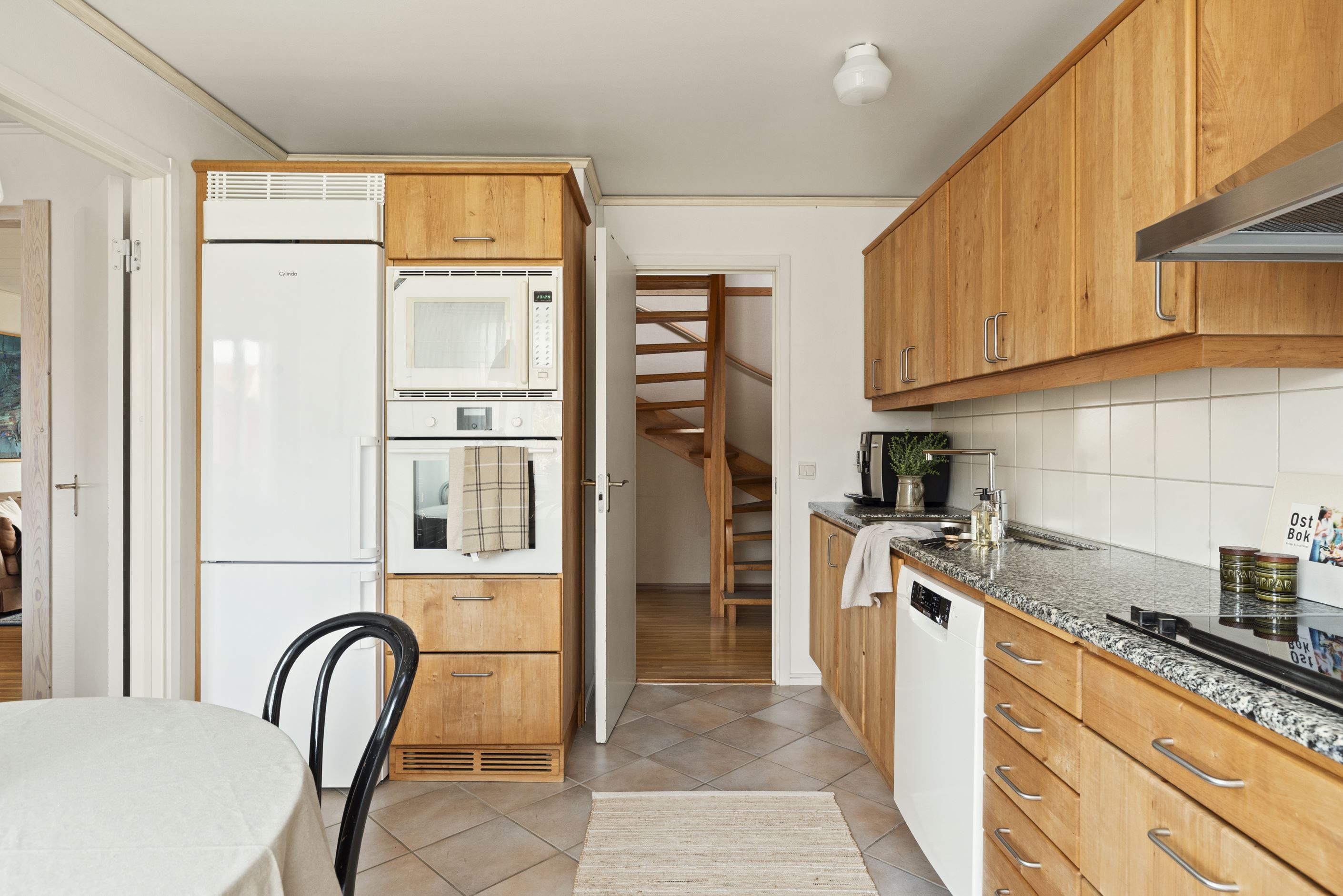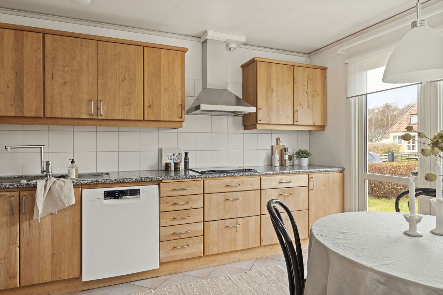 Köket ligger i anslutning till den inbjudande matsalen och är både hemtrevligt och välplanerat, med gott om arbetsyta och plats för hela familjen. Här finns rum för både vardagsmåltider och större middagar i goda vänners lag.