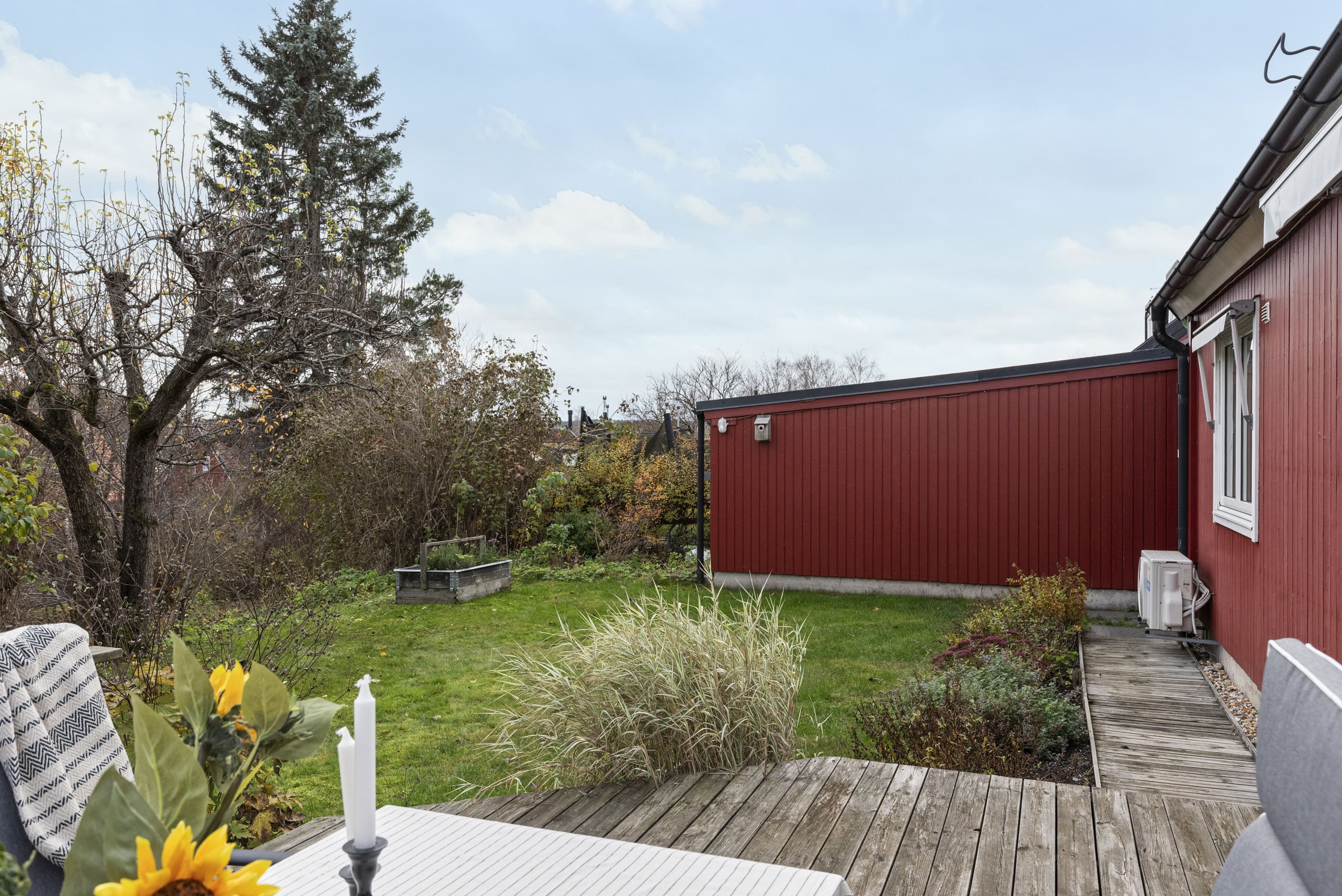 Den soliga och lättskötta trädgårdstomten bjuder på sol från morgon till kväll. Här kan du njuta av morgonkaffet på altanen, låta barnen leka på den plana gräsmattan eller odla i ditt eget trädgårdsland.