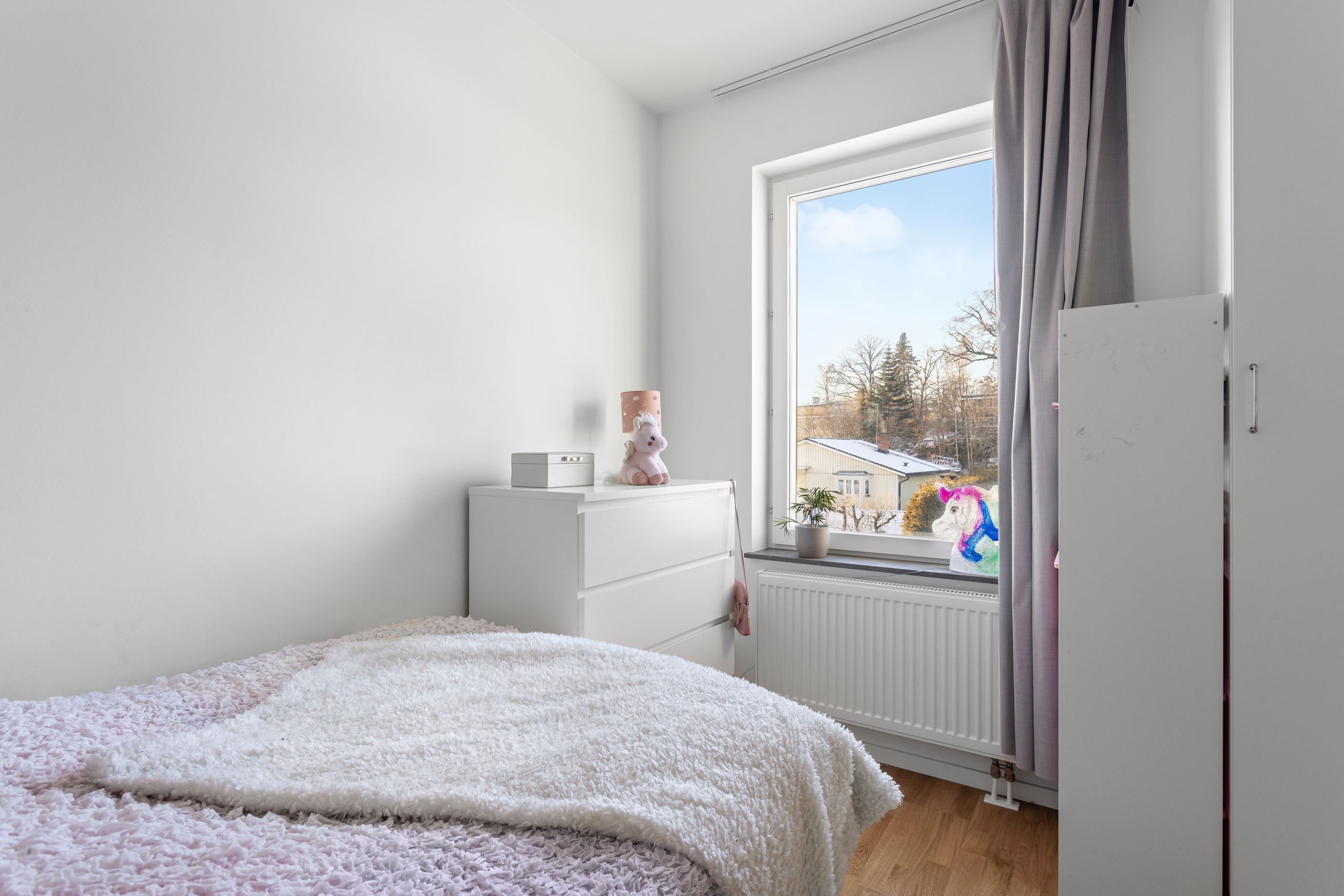 Lägenheten är nästintill nyproducerad, och enbart en ägare har bott i bostaden, så här behöver du verkligen inte tänka på renoveringar! Stora fönsterpartier åt 2 håll ger ett fint ljusinsläpp, och den generösa takhöjden om ca 2,6m gör att bostaden känns luftig och ger karaktär. Balkongen vetter i perfekt västläge, med kvällssol, och dessutom kan du se Mälarens glittrande vatten från balkongen. Säljaren upplever att lägenheten är väldigt insynsskyddad och att man bor väldigt ostört, mycket också tack vare läget högst upp i huset. Här slipper du någon som stampar ovanför dig. Kök och matplats ligger i en perfekt halvöppen planlösning. Köket är ett stilfullt HTH-kök utrustat med kvalitativa vitvaror från Siemens. I lägenheten finns också ett stort förråd. Föreningen har gott om parkeringsplatser och det finns god möjlighet att få parkering direkt vid inflytt (ej garanterat).