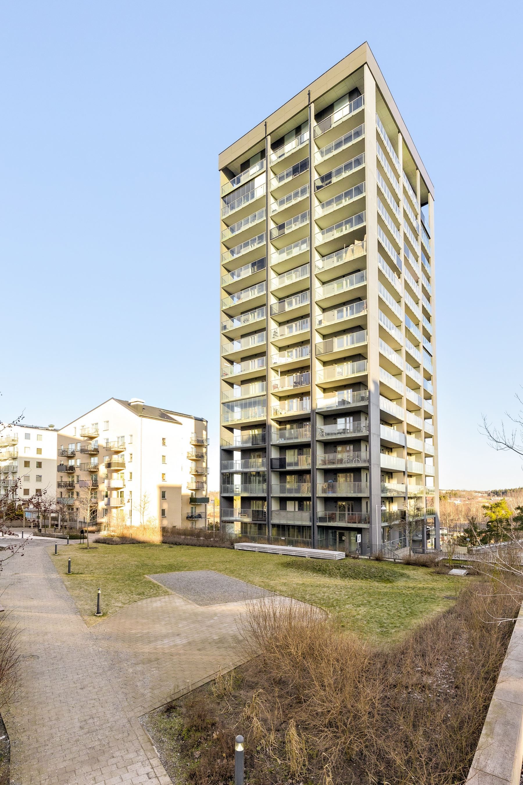 Vakna upp till en enastående utsikt över det grönskande Järvafältet – Bostaden erbjuder en generös balkong om hela 11 kvm. Här kan du njuta av soliga dagar och magiska solnedgångar, med utsikt som sträcker sig ända in mot city.
