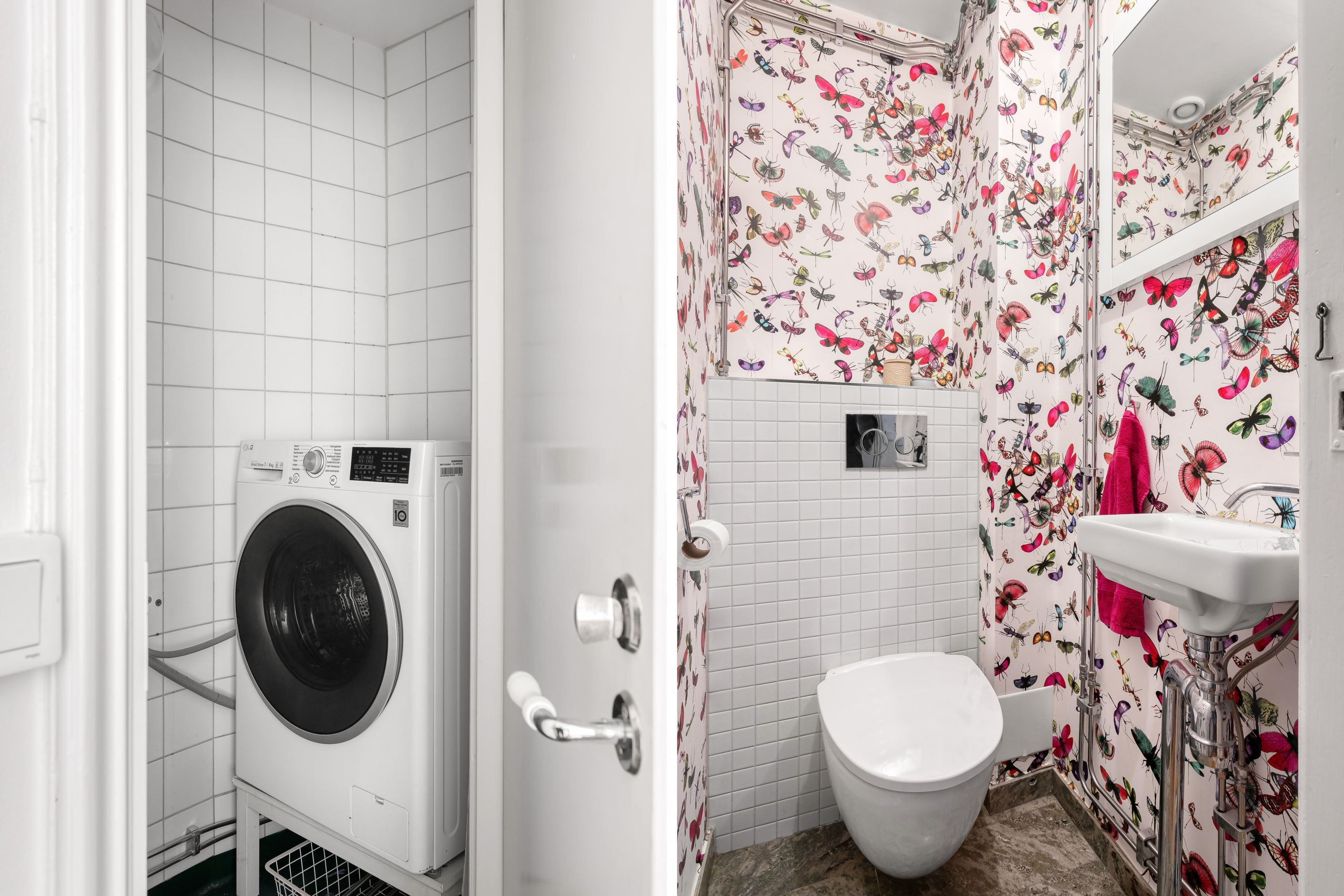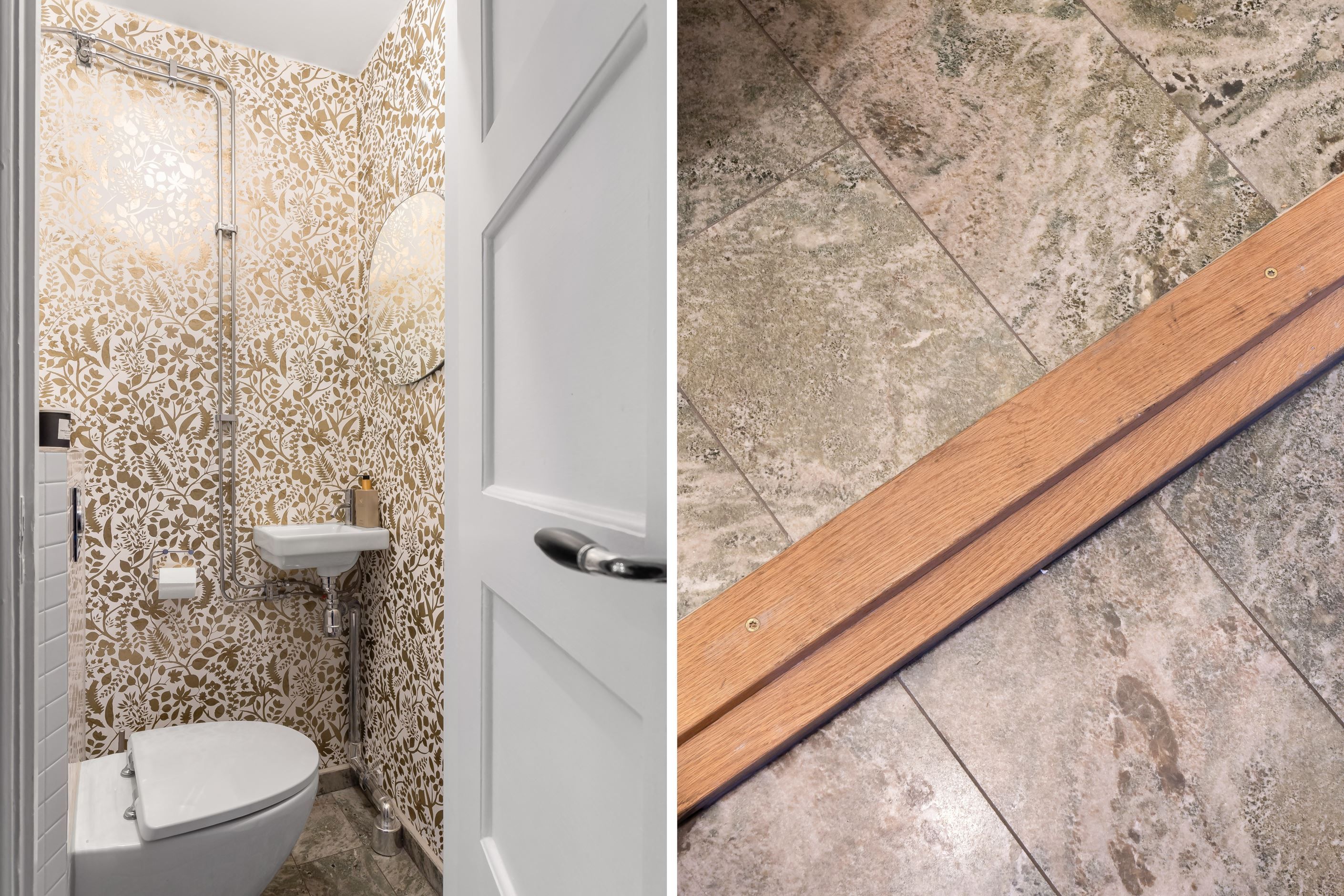 WC 2 - Separat toalett med designertapet samt vackert marmorgolv