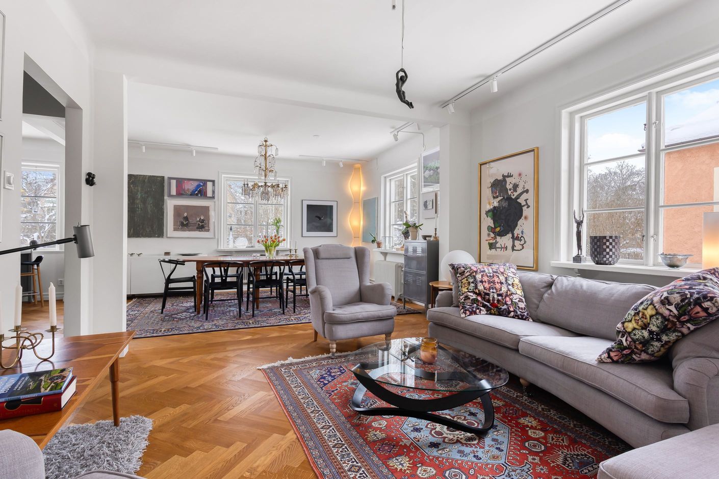 Insynsskyddad och ljus gavelvåning i absolut drömläge, med vy mot Ålstens Torg. Vackra ljusa rum och stilfull 20-talscharm med spröjsade fönster, härlig takhöjd och tidlös atmosfär. Genomgående fint skick med nyrenoverade våtrum. Synnerligen välbelägen invid förstklassiga butiker, caféer, 12:an och eftersökta skolor. Mälaren med fina grönområden, bad och båtliv på några få minuters gångväg.