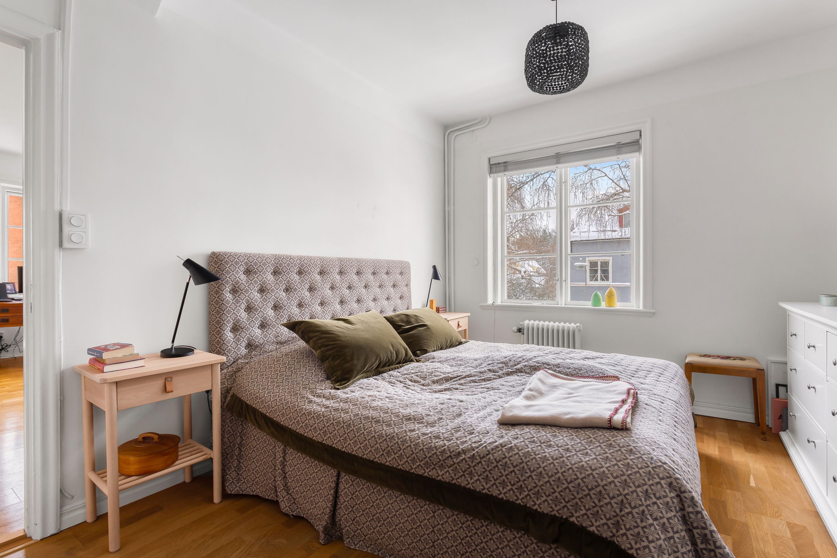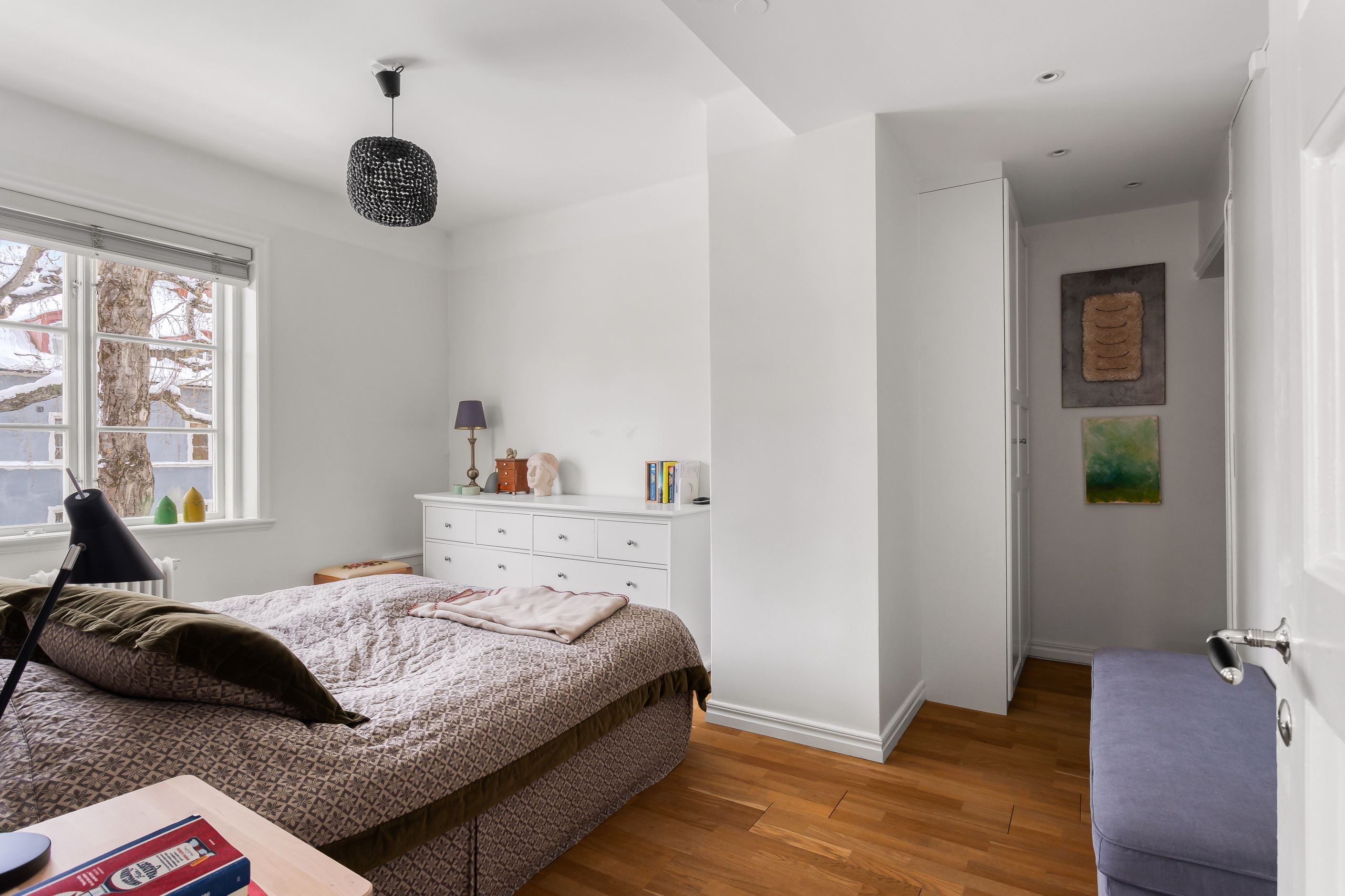 SOVRUM - Detta rum har insynsfritt fönster mot Ålstensgatans grönskande allé. Modern oljad ekparkett på golv. Egen ingång från trapphuset samt tillgång till "egen" wc, vilket ger tillfälle för en uthyrningsdel eller ett avskilt tonårsrum, för den som så önskar. Plats för dubbelsäng samt ytterligare möbel.