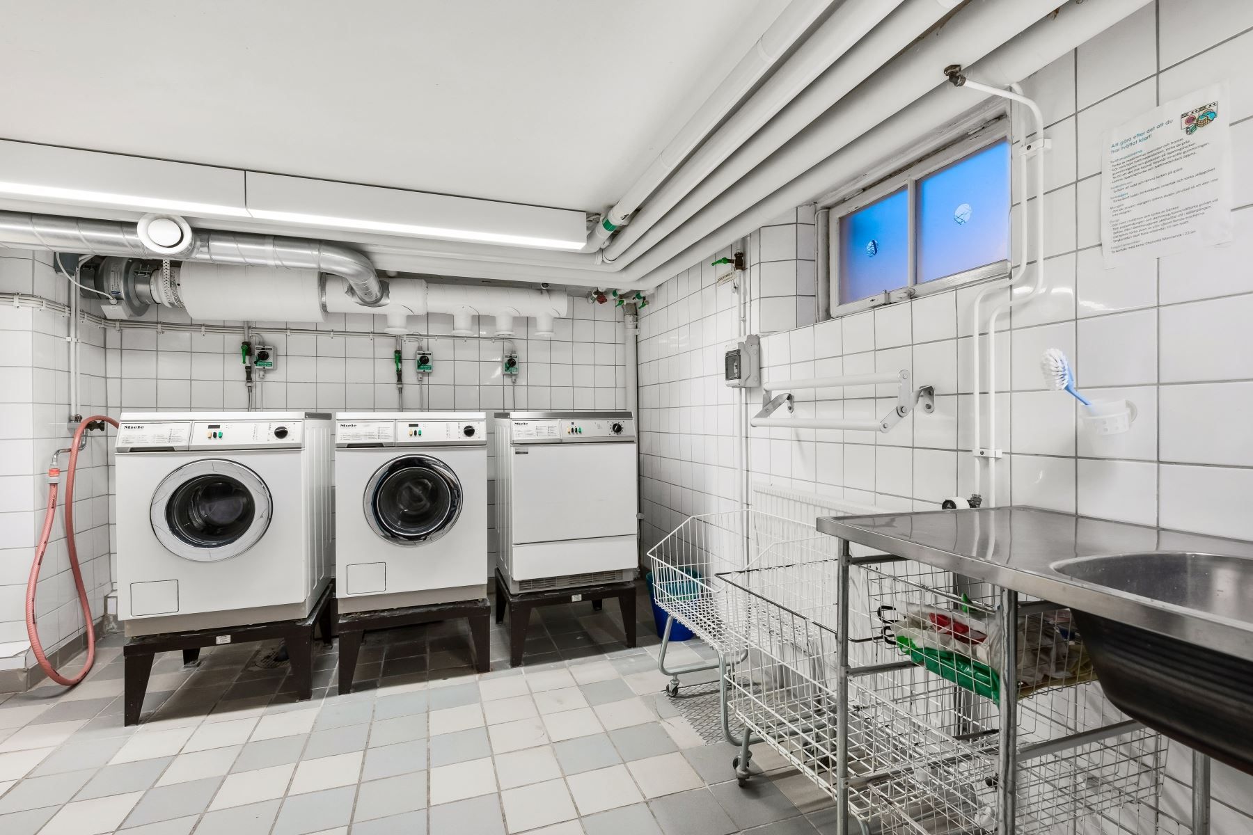 TVÄTTSTUGA - Vita kaklade väggar samt svart golv.