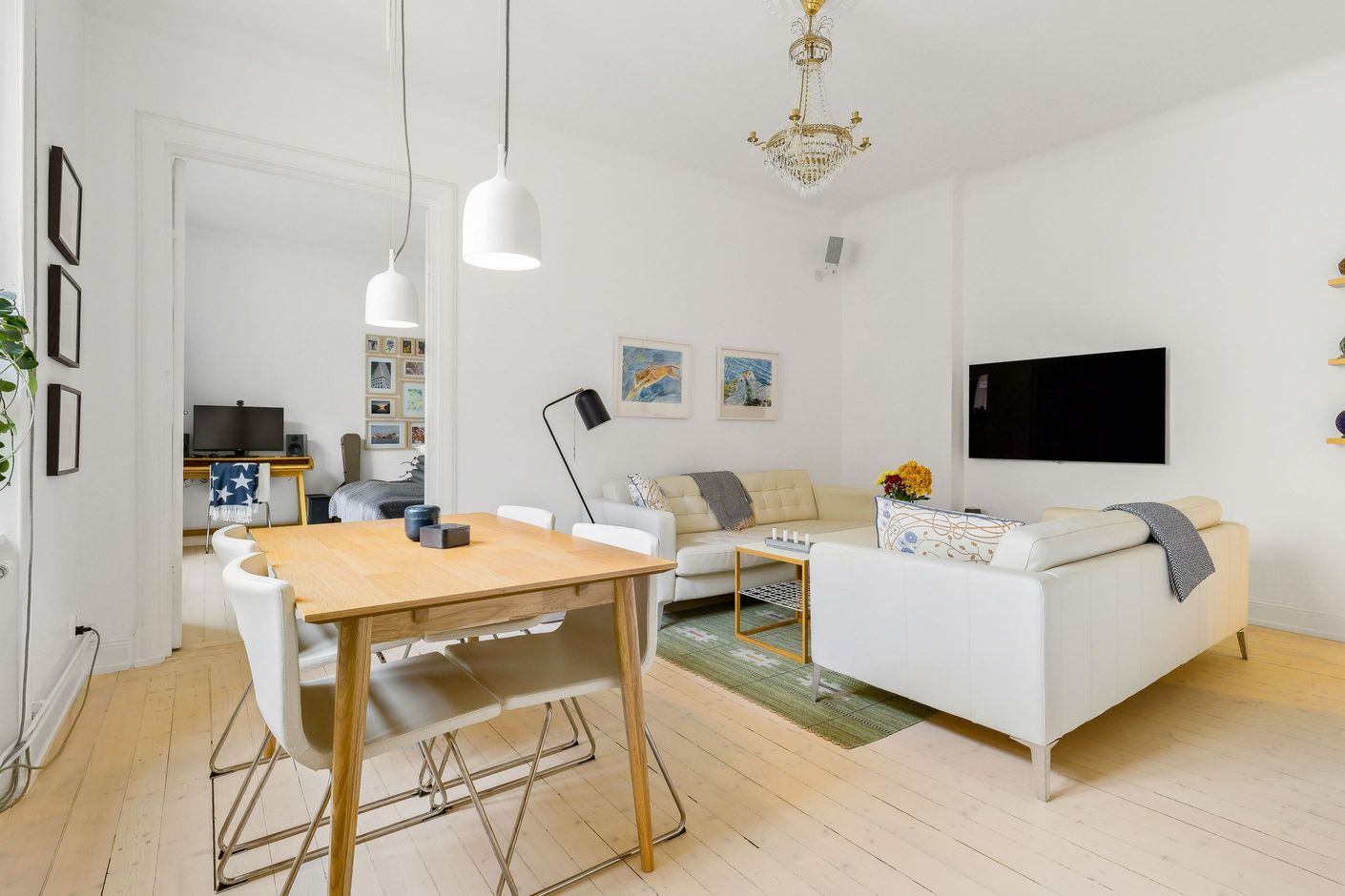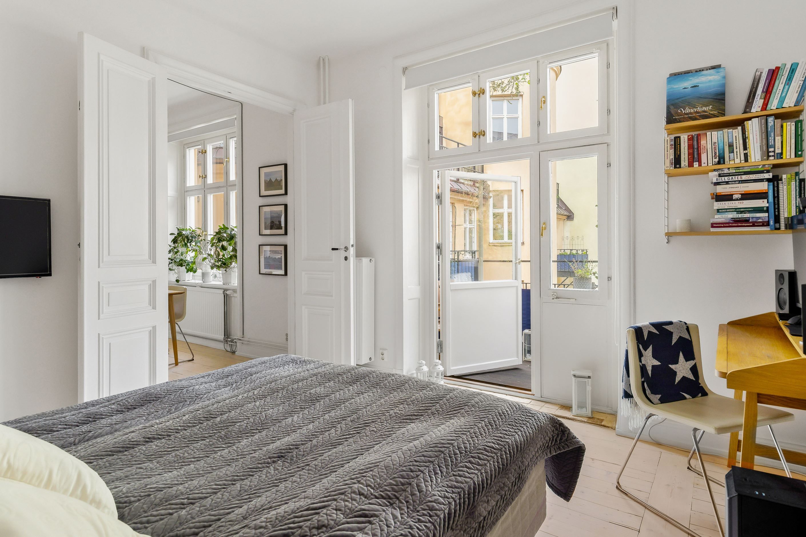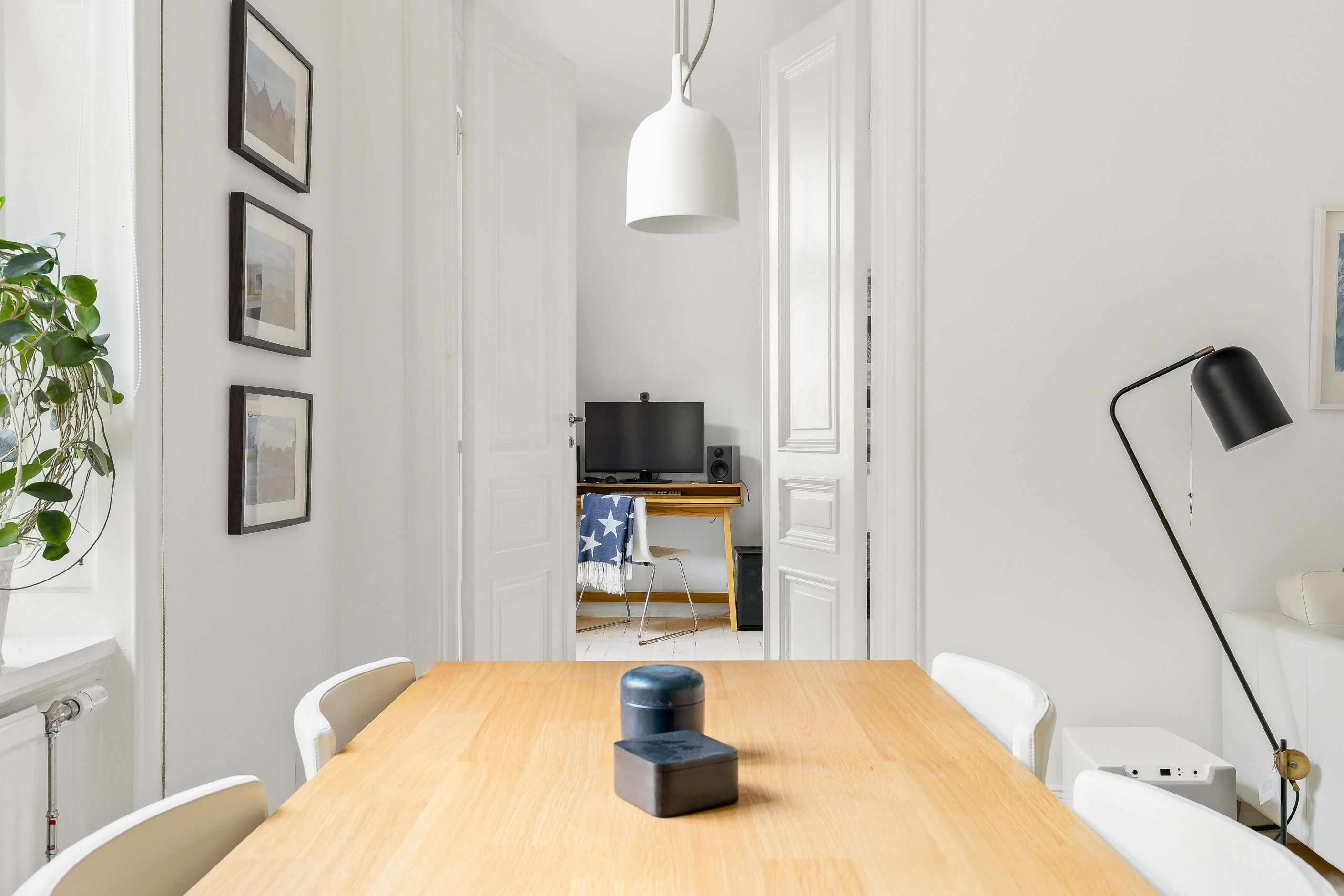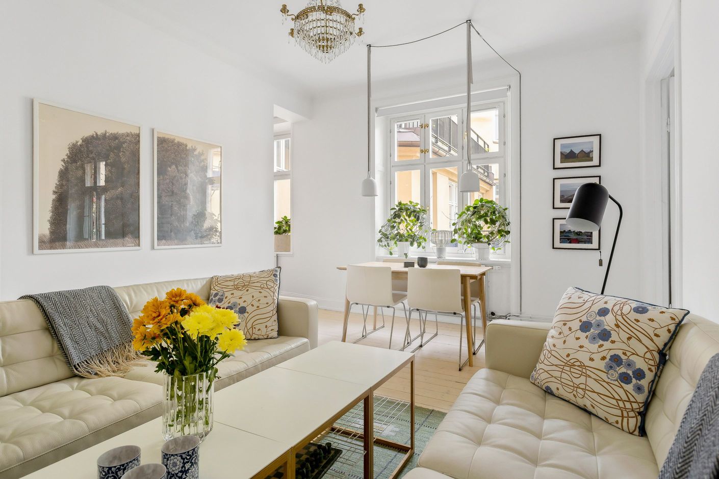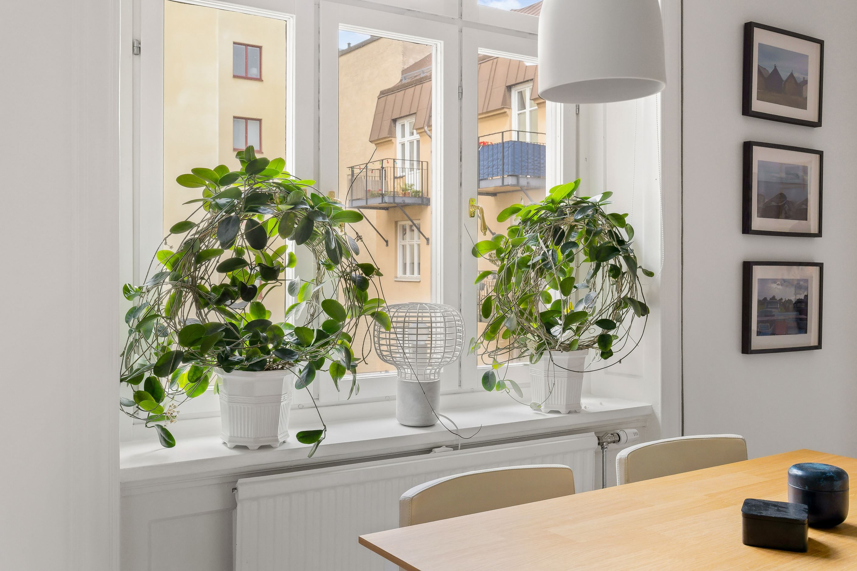 Välkommen till denna stilfulla tvåa på attraktiva Kungsholmen – ett hem där modern design möter tidlös charm. Här bor du i en ljus och genomtänkt lägenhet med generös takhöjd, stora fönsterpartier och en planlösning som både är social och funktionell. När du kliver in möts du av en inbjudande hall med ljuspigmenterade furugolv som löper vidare genom bostaden, målade väggar i ljus nyans och en smakfull fondvägg som skapar en välkomnande känsla.