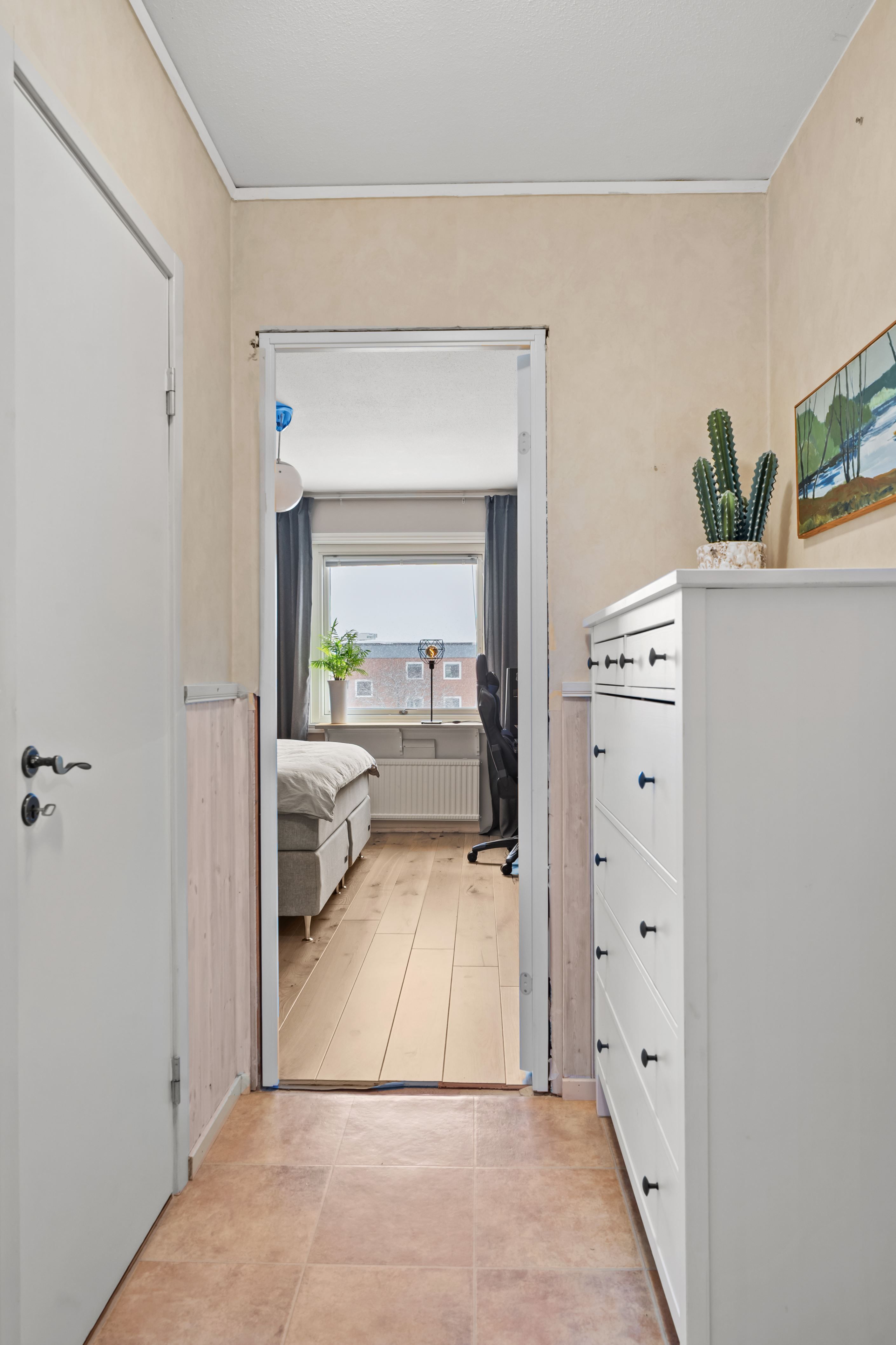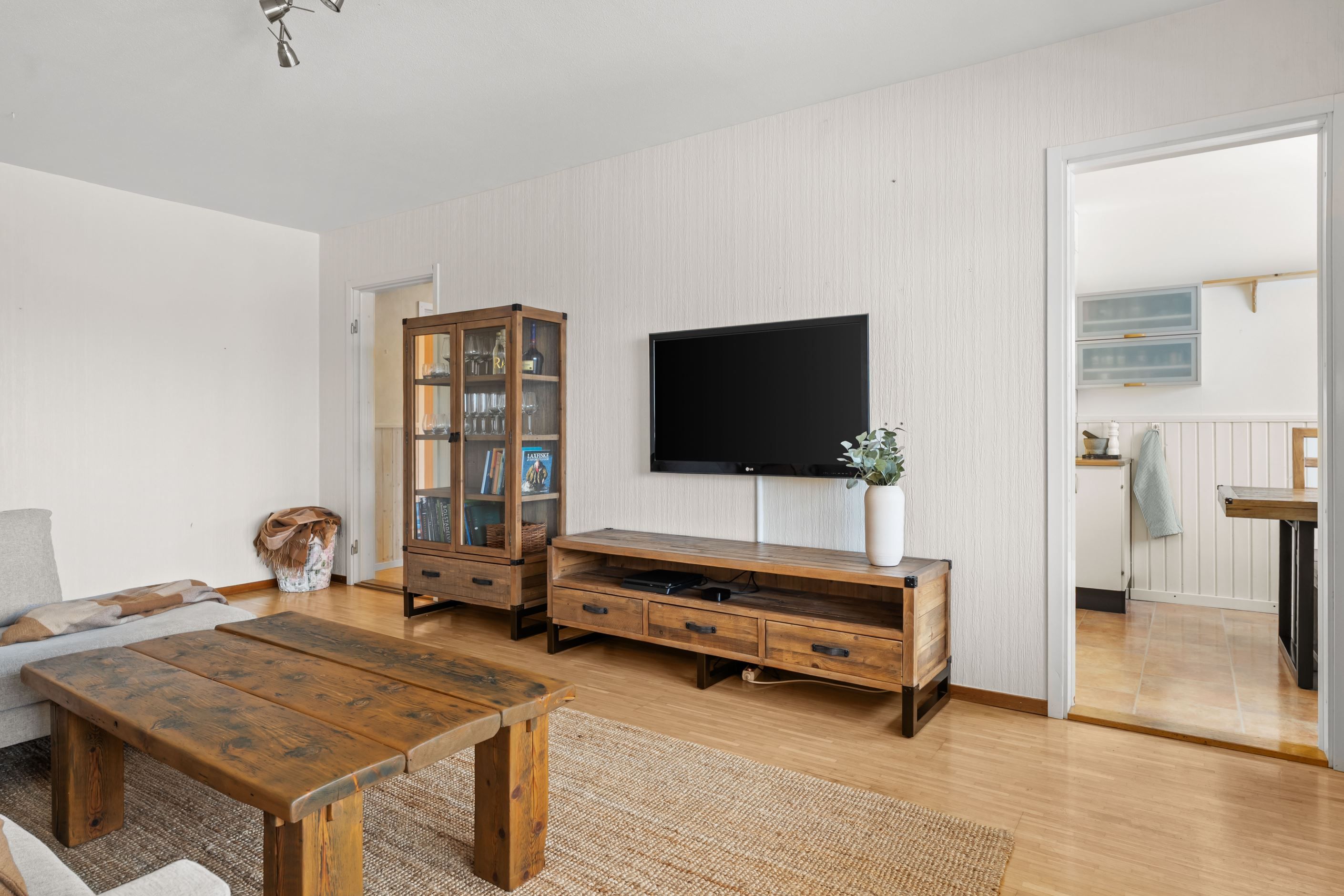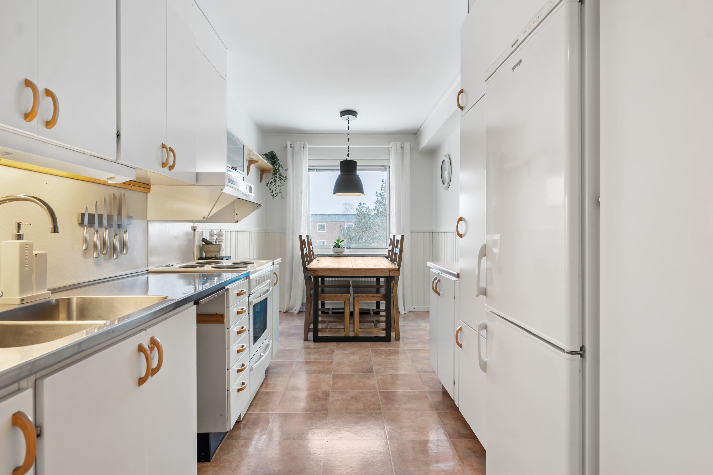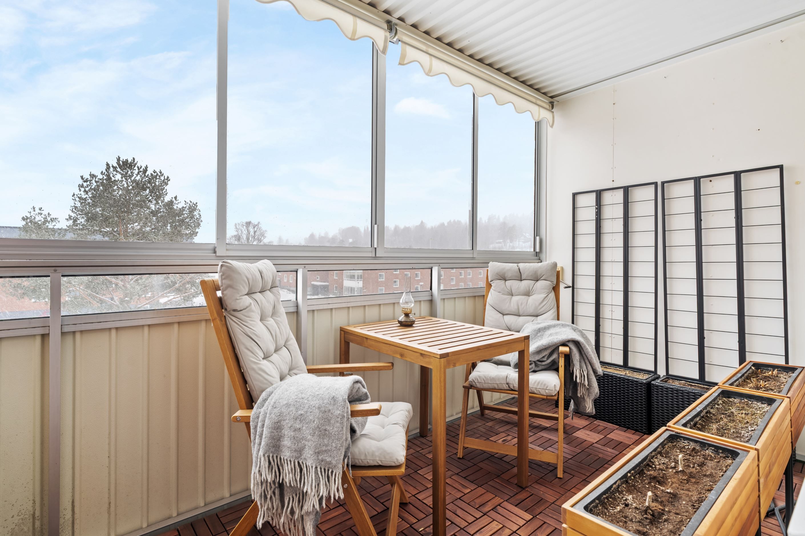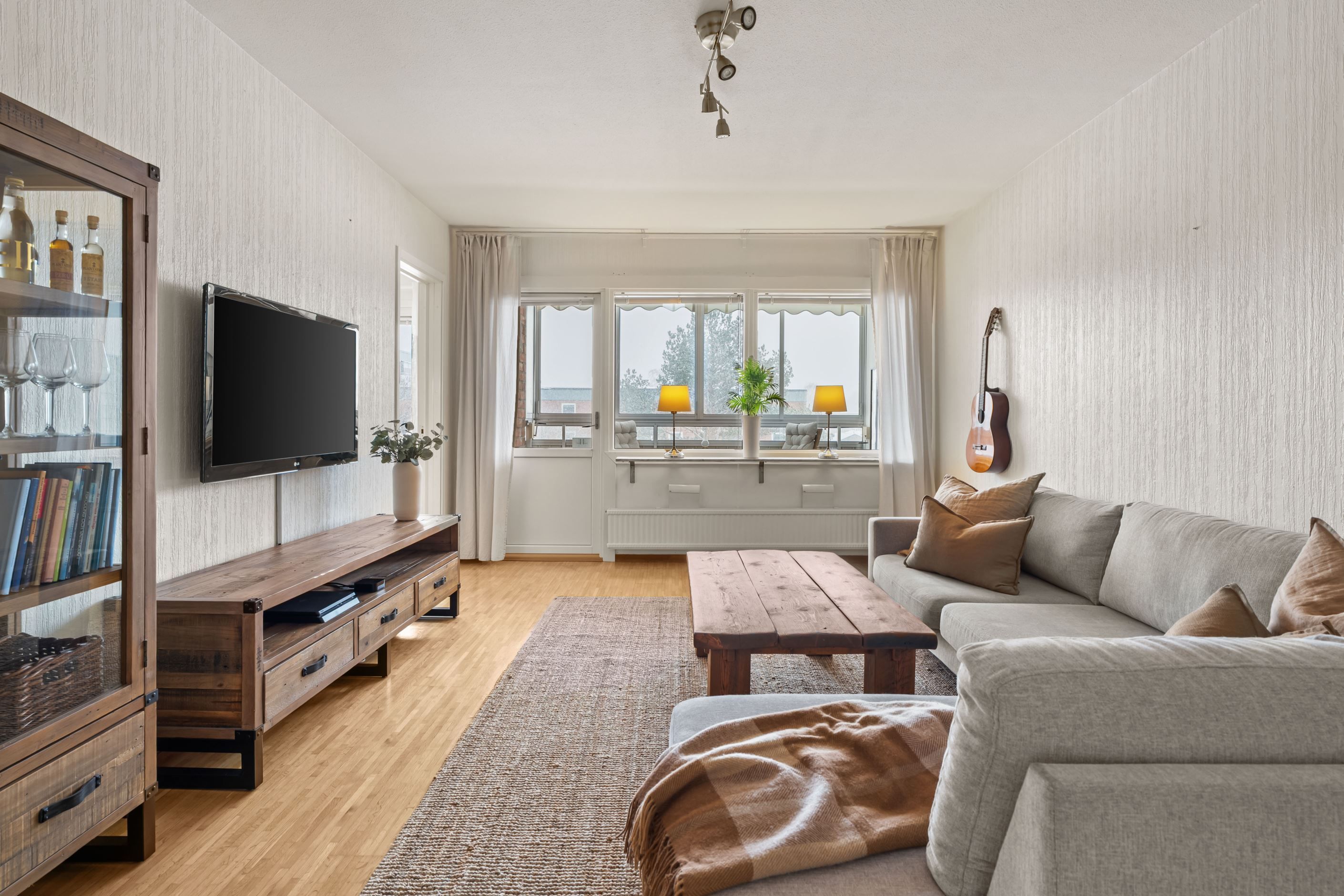 Här möts du av en välplanerad bostad med generösa ytor och ljusa väggar som skapar en modern och inbjudande känsla. Det rymliga vardagsrummet erbjuder gott om plats för både soffgrupp och matplats, och härifrån når du den inglasade balkongen i härligt söderläge. Njut av många soltimmar och en rogivande utsikt över den grönskande innergården – en perfekt plats för morgonkaffet eller avkoppling efter jobbet.