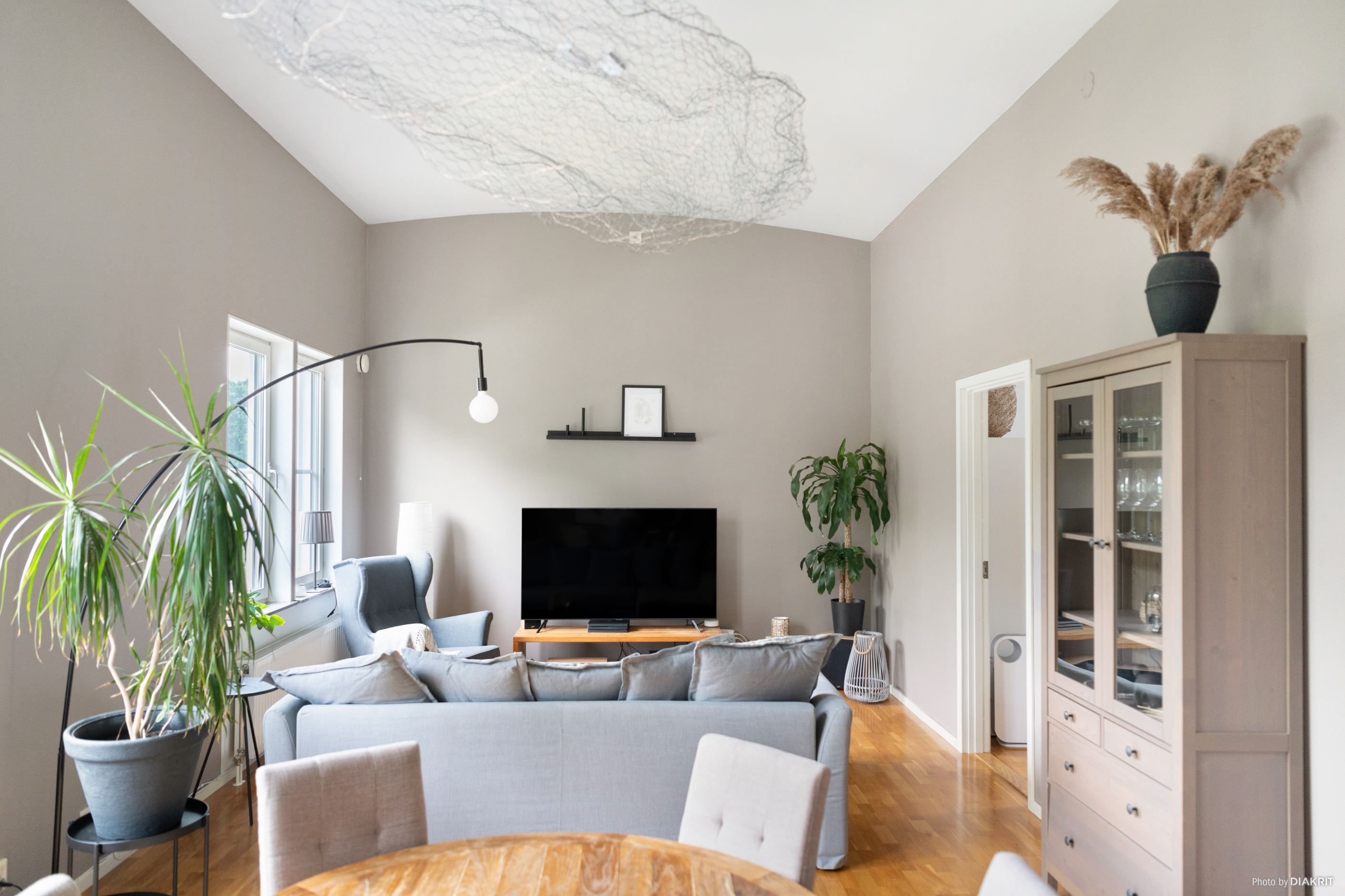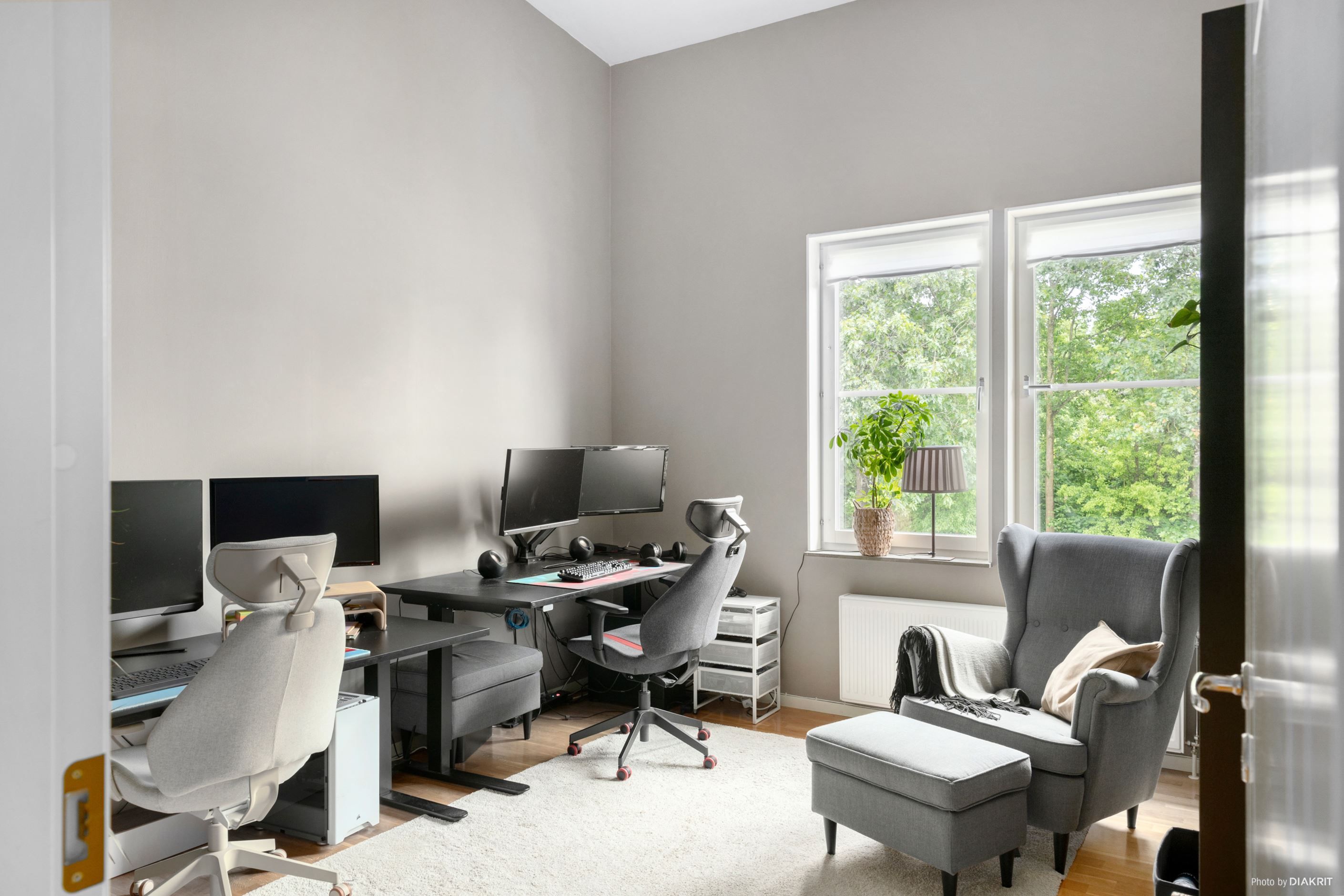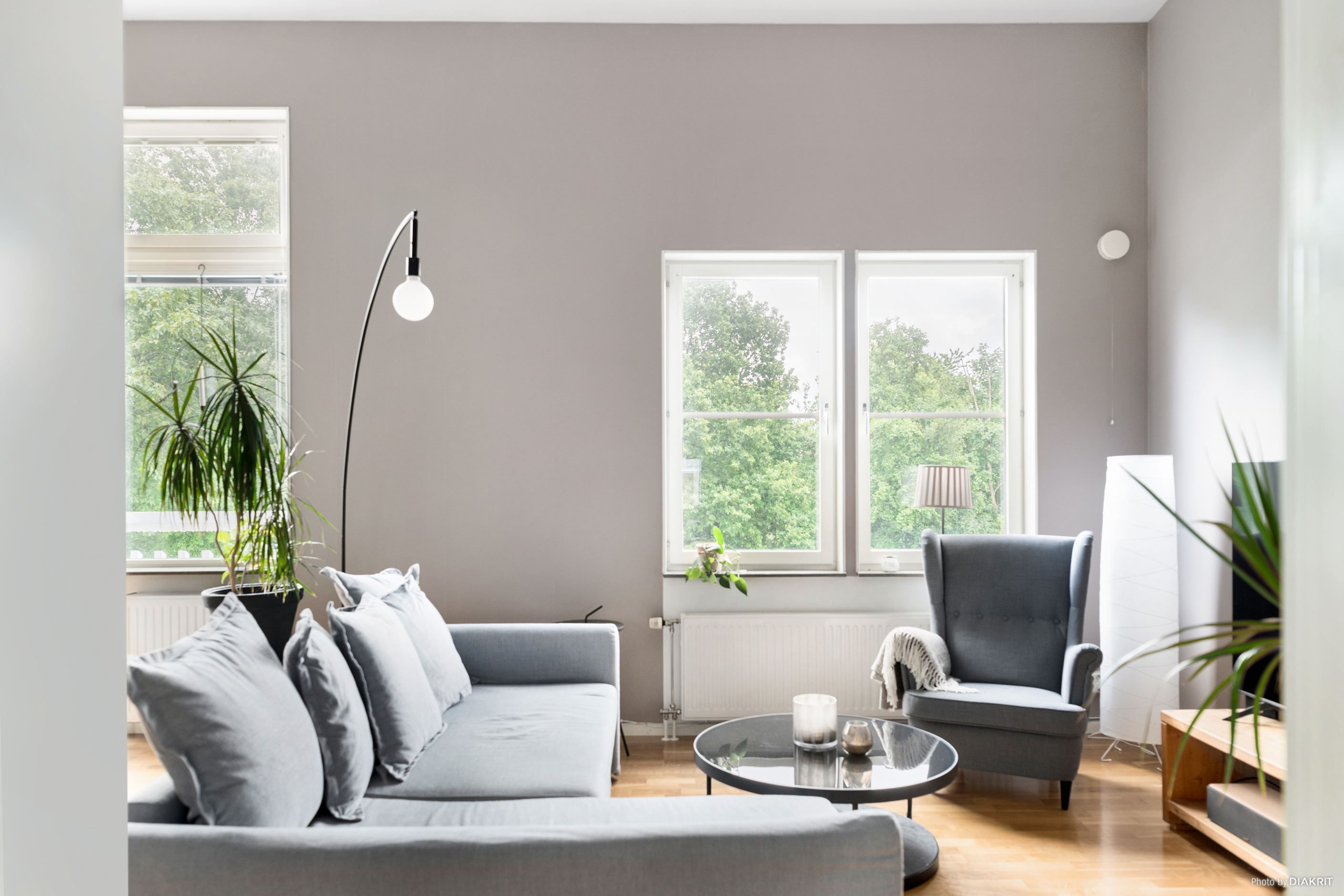 Bostadens planlösning är både praktisk och social. Vardagsrummet erbjuder gott om plats för soffgrupp och matbord, med en naturlig övergång till köket som är funktionellt och stilrent med bra arbetsytor. De två sovrummen ligger avskilt för maximal integritet, perfekta som barnrum, arbetsrum eller gästrum.