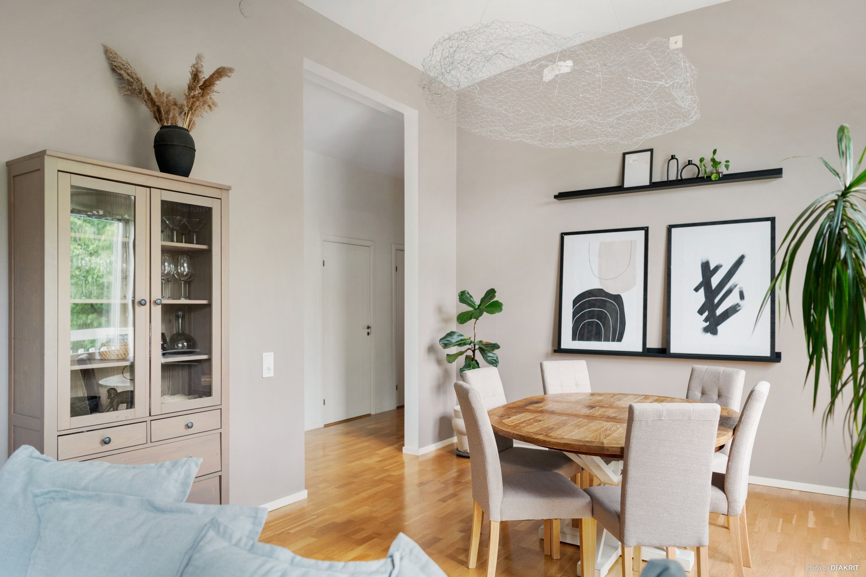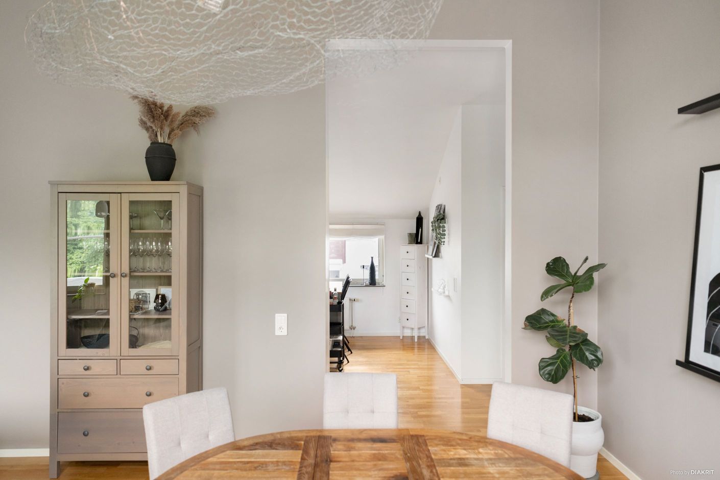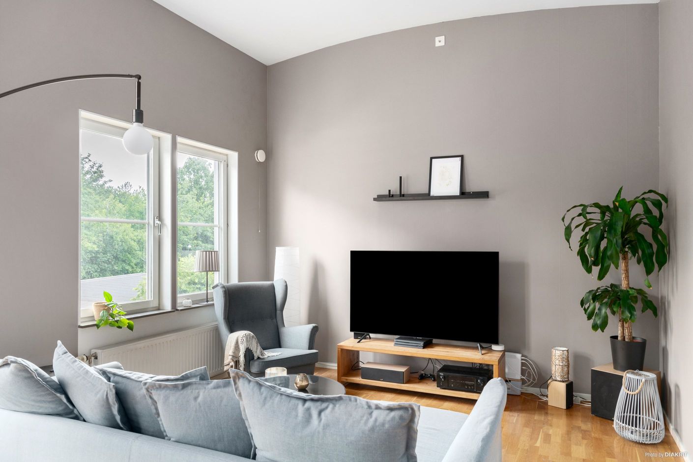 Bostadens planlösning är både praktisk och social. Vardagsrummet erbjuder gott om plats för soffgrupp och matbord, med en naturlig övergång till köket som är funktionellt och stilrent med bra arbetsytor. De två sovrummen ligger avskilt för maximal integritet, perfekta som barnrum, arbetsrum eller gästrum.