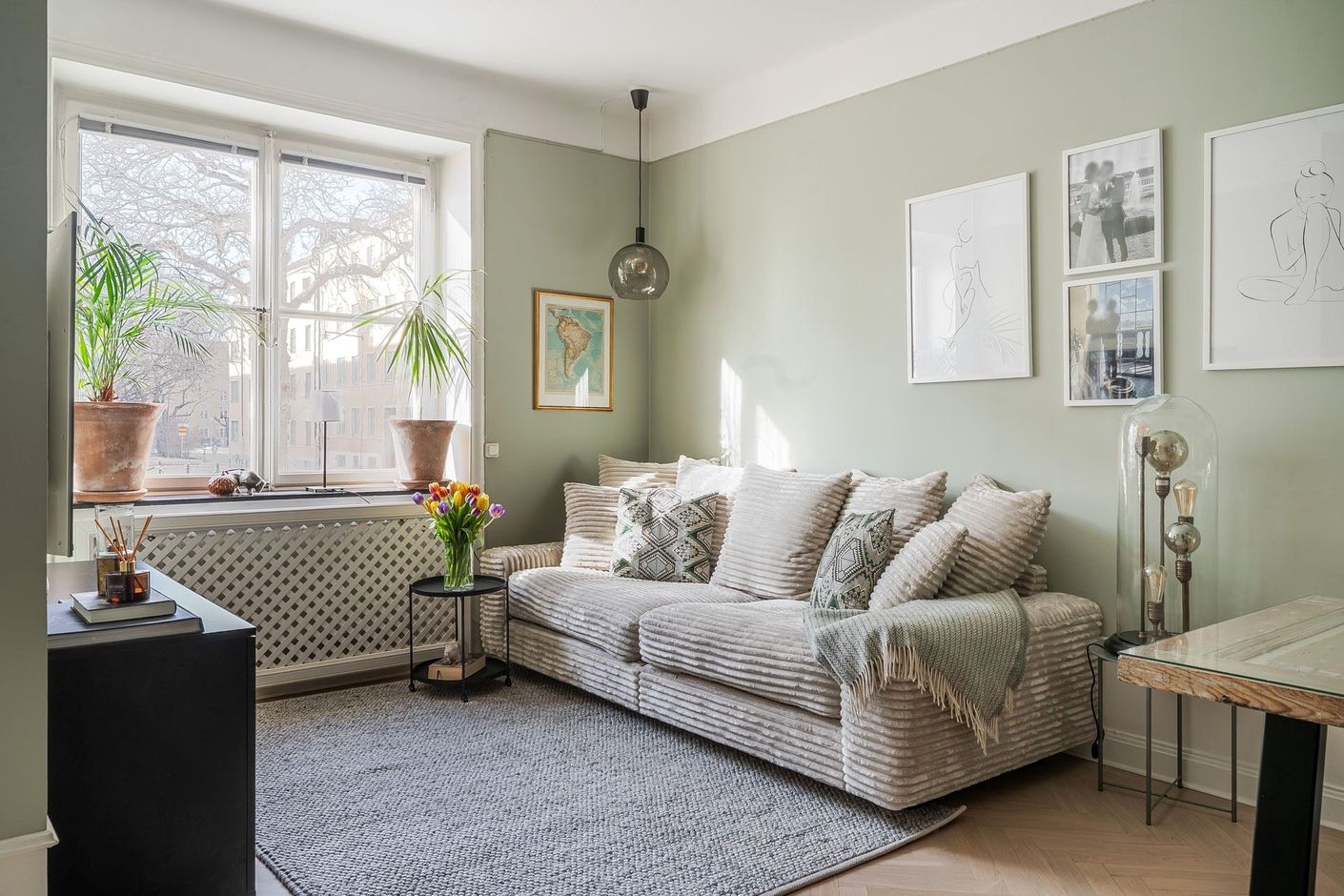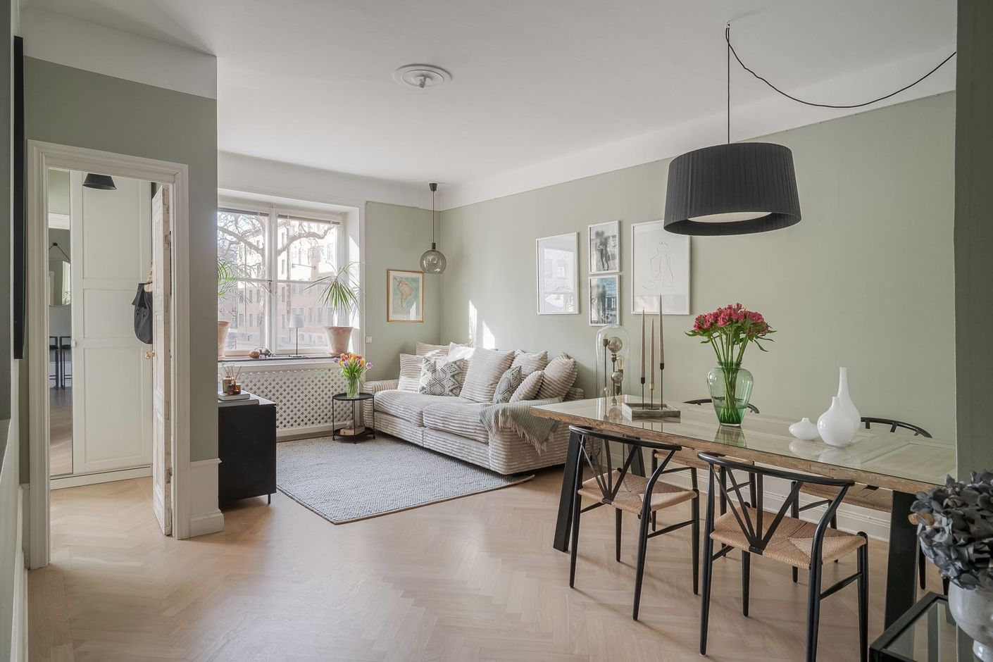 Du välkomnas in i en bostad som andas kvalitet med vacker fiskbensparkett, påkostade materialval och en själ som verkligen känns i varje rum.