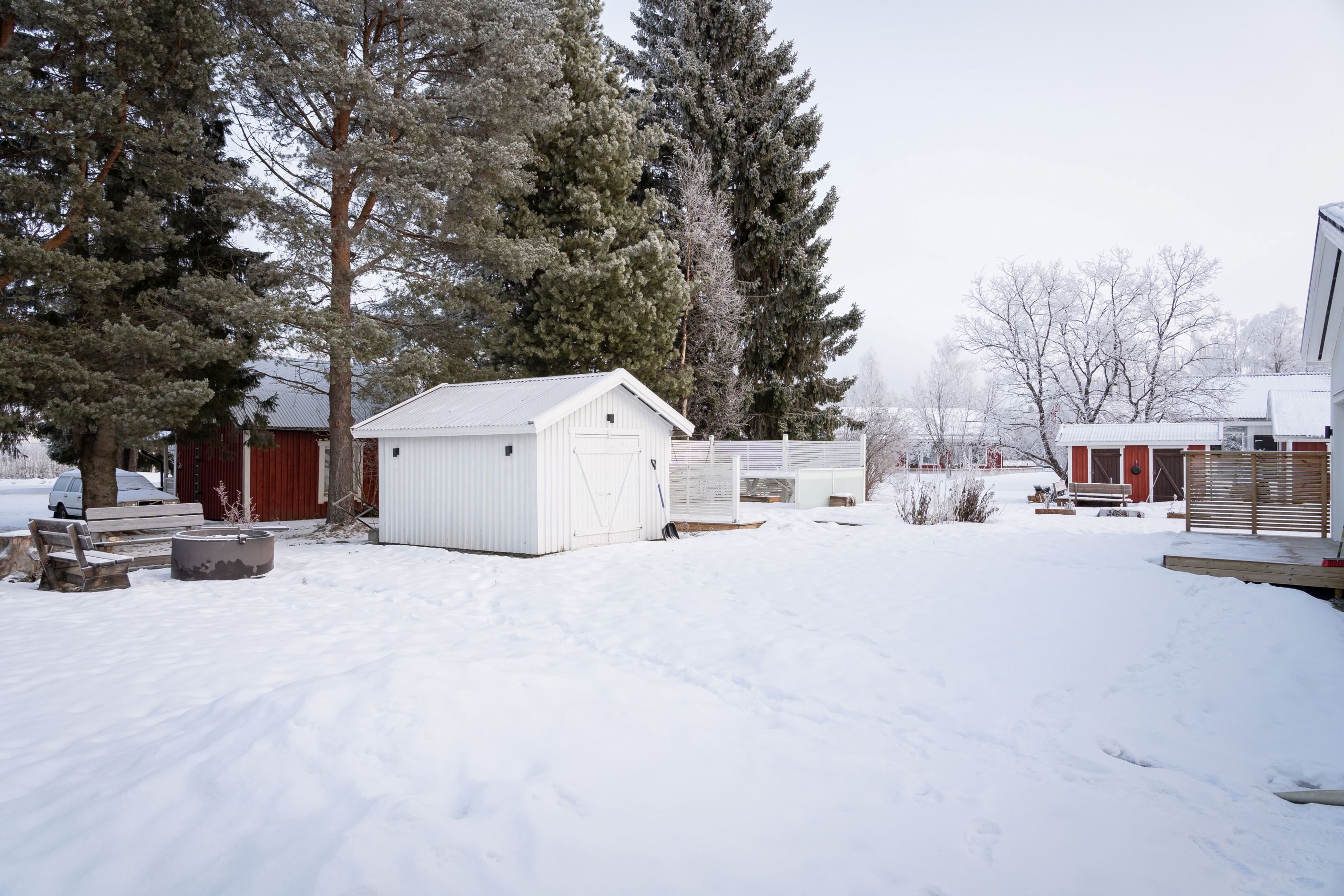 Fristående garage byggt 2021 med laddbox och fjärrstyrd port. Fin tomt med gräsmatta, fristående altan med glasräcke och vindskydd samt ytterligare altan med utgång från sovrum. Lugnt område med gångavstånd till centrala Öjebyn.