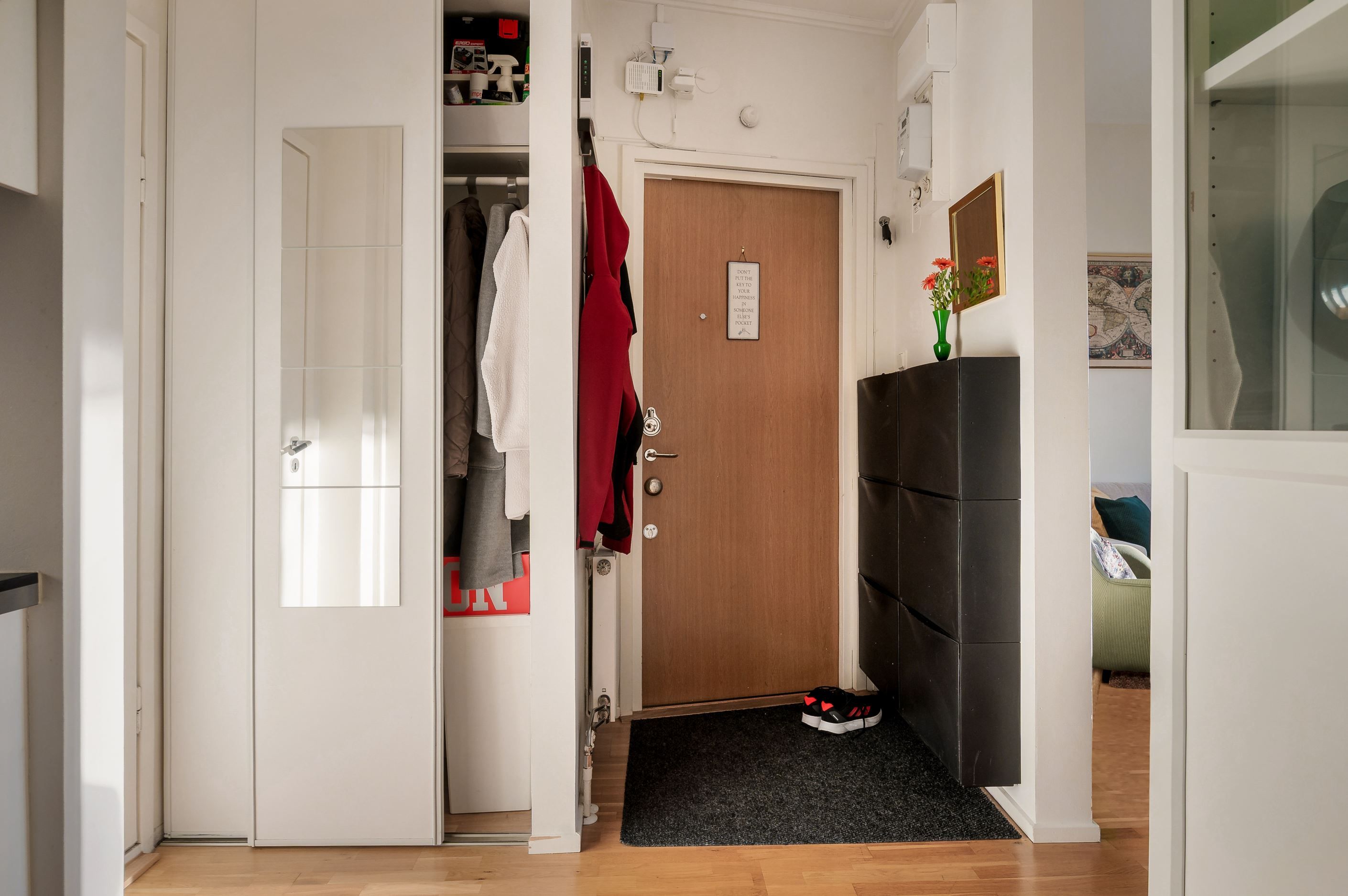 Hjärtligt välkommen upp till denna ljusa 3:a med en optimalt använd och flexibel planlösning där varje kvadratmeter nyttjas till fullo - privat belägen högt upp i huset med balkong i sydväst!