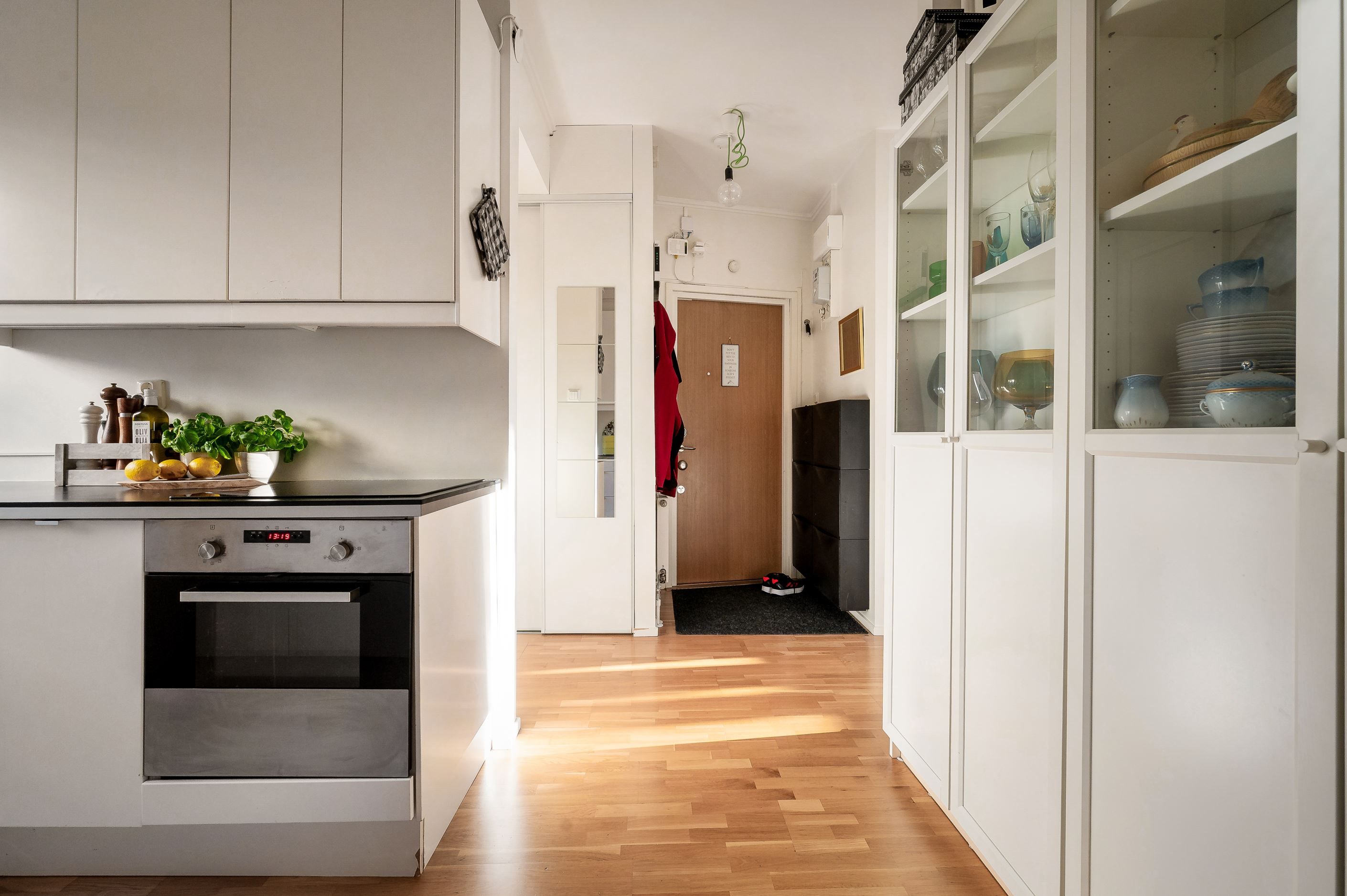 Köket är renoverat med en komplett maskinell utrustning och tidlös utformning, praktiska förvaringslösningar och plats för ytterligare skåp eller ett mindre matbord.