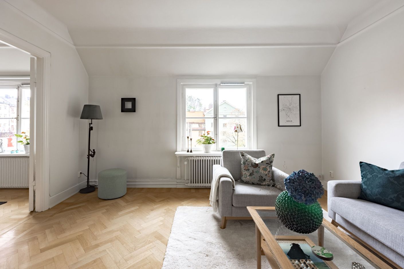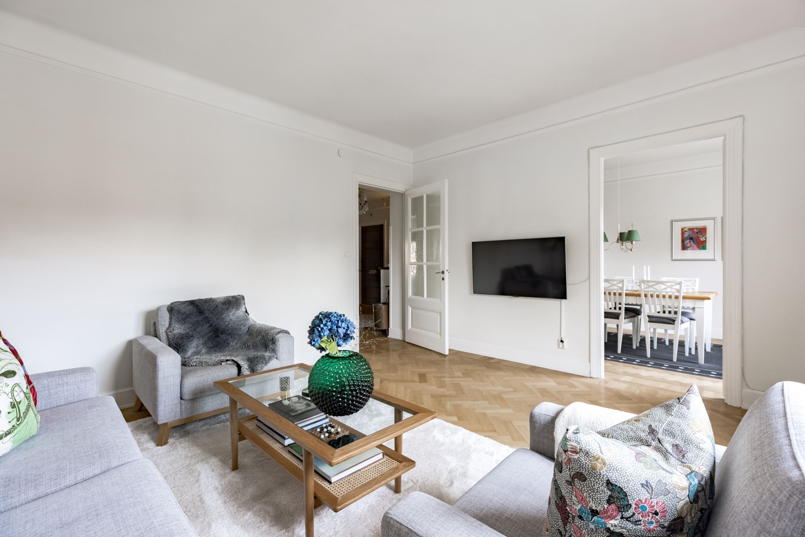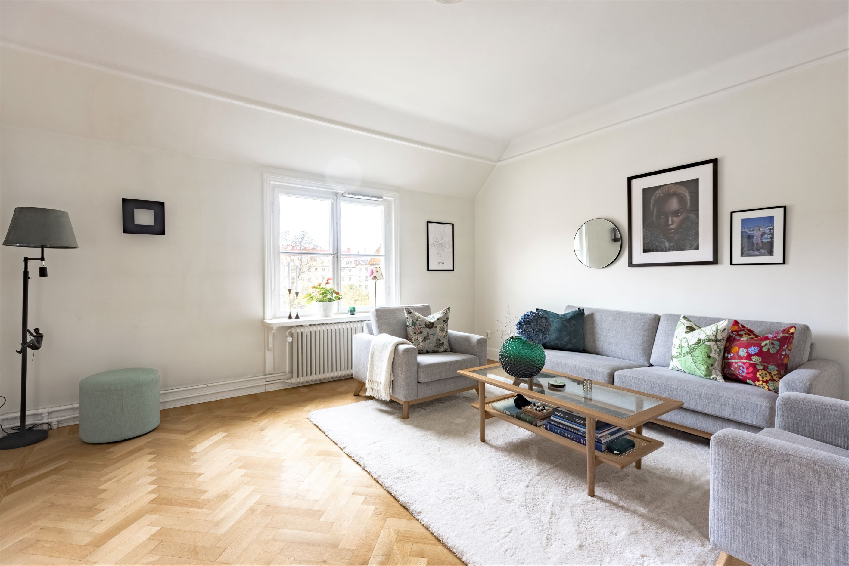 På en av Kungsholmens attraktivaste adresser ligger denna vackra 3.a. Bostaden ligger högst upp i huset med en enastående utsikt mot den anrika malmgården Piperska Muren som uppfördes under 1600-talet. Planlösningen är genomgående vilket i kombination med det höga läget ger ett fantastiskt ljusinsläpp och den höga takhöjden ger en härlig rymd. Lägenheten är i gott skick med många tidstypiska detaljer bevarade; trägolv, fiskbensmönstrad parkett, speglade dörrar och djupa fönsternischer. Fungerade öppen spis att njuta av under de mörkare månaderna.