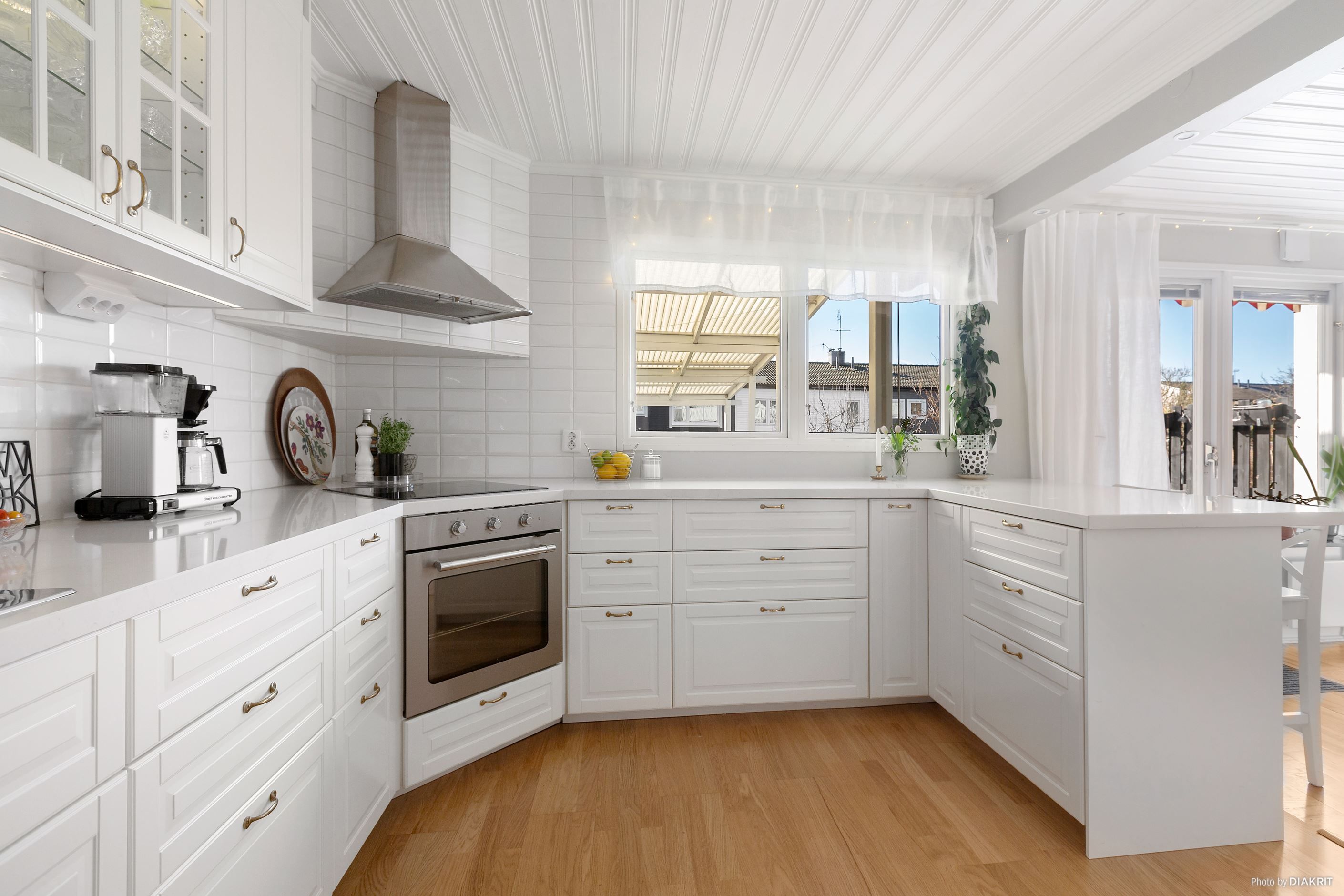 Bostaden präglas av generösa sällskapsytor och en modern, öppen planlösning som skapar ett härligt ljusflöde genom entréplanet. Det renoverade och ombyggda köket ligger i öppen anslutning till vardagsrummet och erbjuder gott om plats för både en större matgrupp och en rymlig soffgrupp – perfekt för såväl vardagsliv som sociala tillställningar. Här bor du med en naturlig samlingspunkt för familj och vänner. Från vardagsrummet nås den stora, trädäcksförsedda altanen/uteplatsen – delvis under tak – som förlänger bostaden under årets varmare månader. Den södervända och plana trädgårdstomten ger fina möjligheter till lek, odling och avkoppling i solen. Entréplanet rymmer även en smakfullt renoverad tvättstuga, praktiskt trappförråd samt gäst-WC – funktionella ytor som underlättar vardagen.
