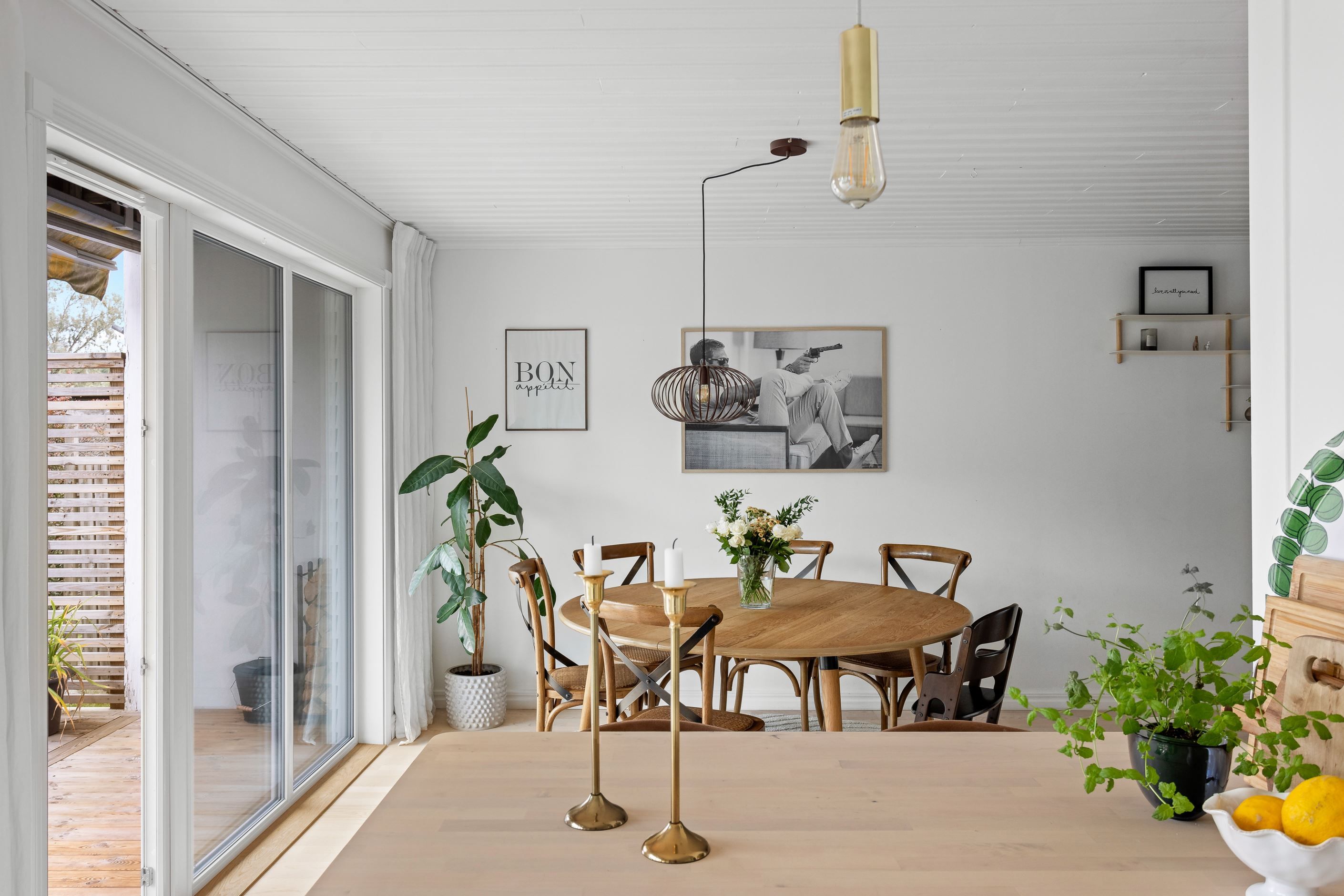 Med närhet till garageplats i länga, parkering och busshållplats. Utan bakomliggande granne!