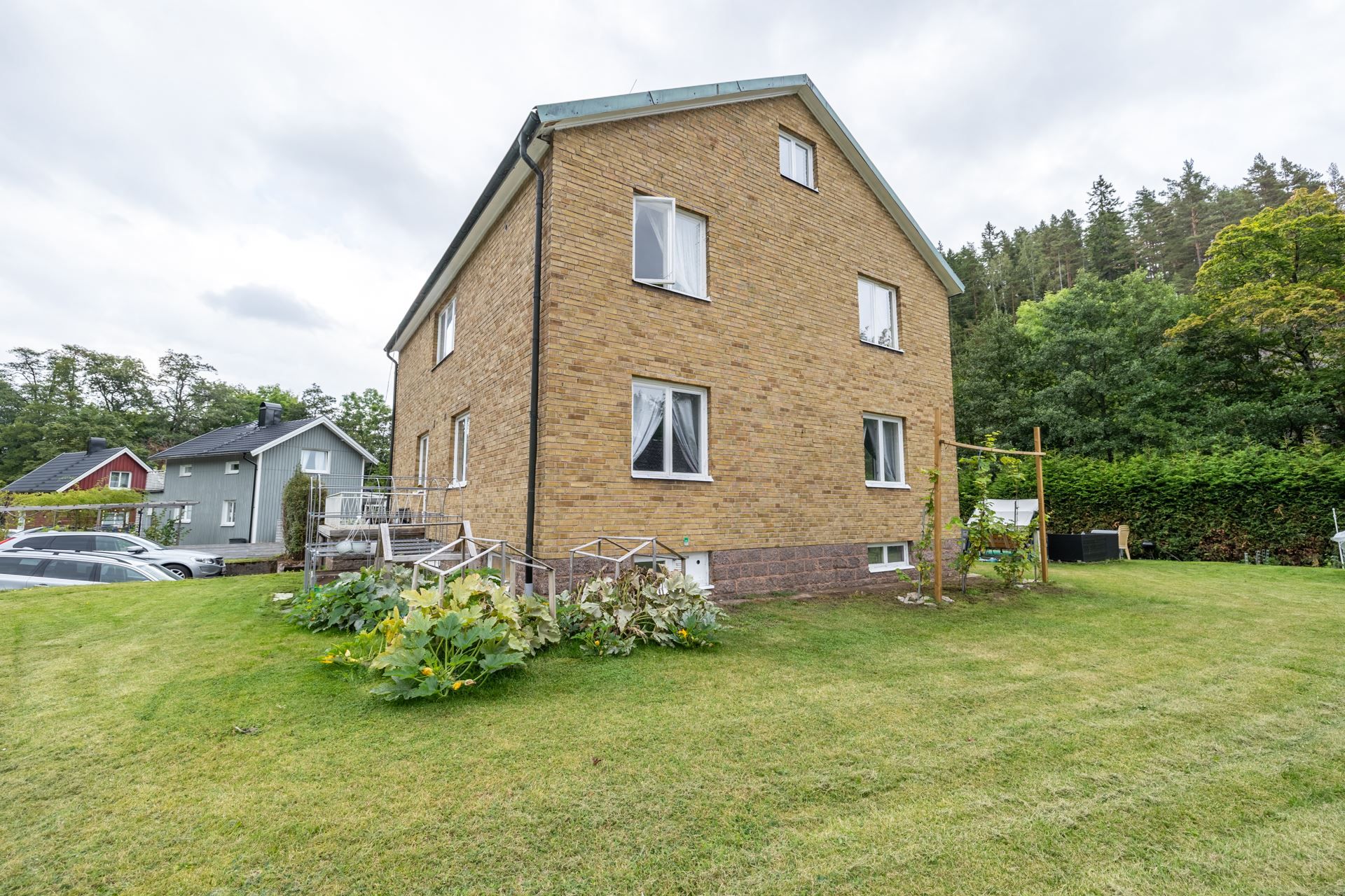 På Andregatan 1 bor du nära flera sjöar och med en lummig trädgårdsmiljö på baksidan – perfekt för den som vill ha en grönskande oas och samtidigt ha nära till bad under sommaren. Livsmedelsbutiker finns inom ett par minuters bilfärd, vilket gör vardagen smidig.