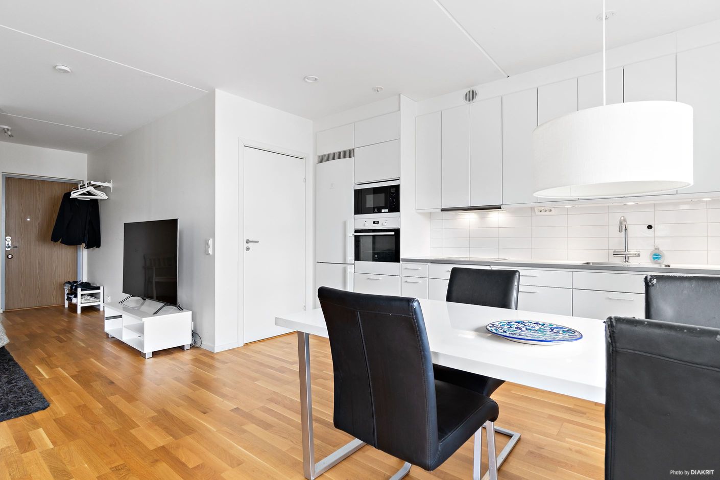 Här kommer verkligen termen "Bara att flytta in" väl till handa! Modern nyproduktion från 2016-2017 med väl genomtänkt funktion och planering för det moderna hemmet. Lägenhetens öppna planlösning gör att lägenheten känns inbjudande och luftig. Genomgående elegant parkettgolv. Lägenhetens stora uteplats erbjuder möjlighet att sitta ute och njuta i goda vänners lag. Bredband via fiber finns att tillgå. Helkaklat badrum med tvättmaskin med inbyggd torktumlare.