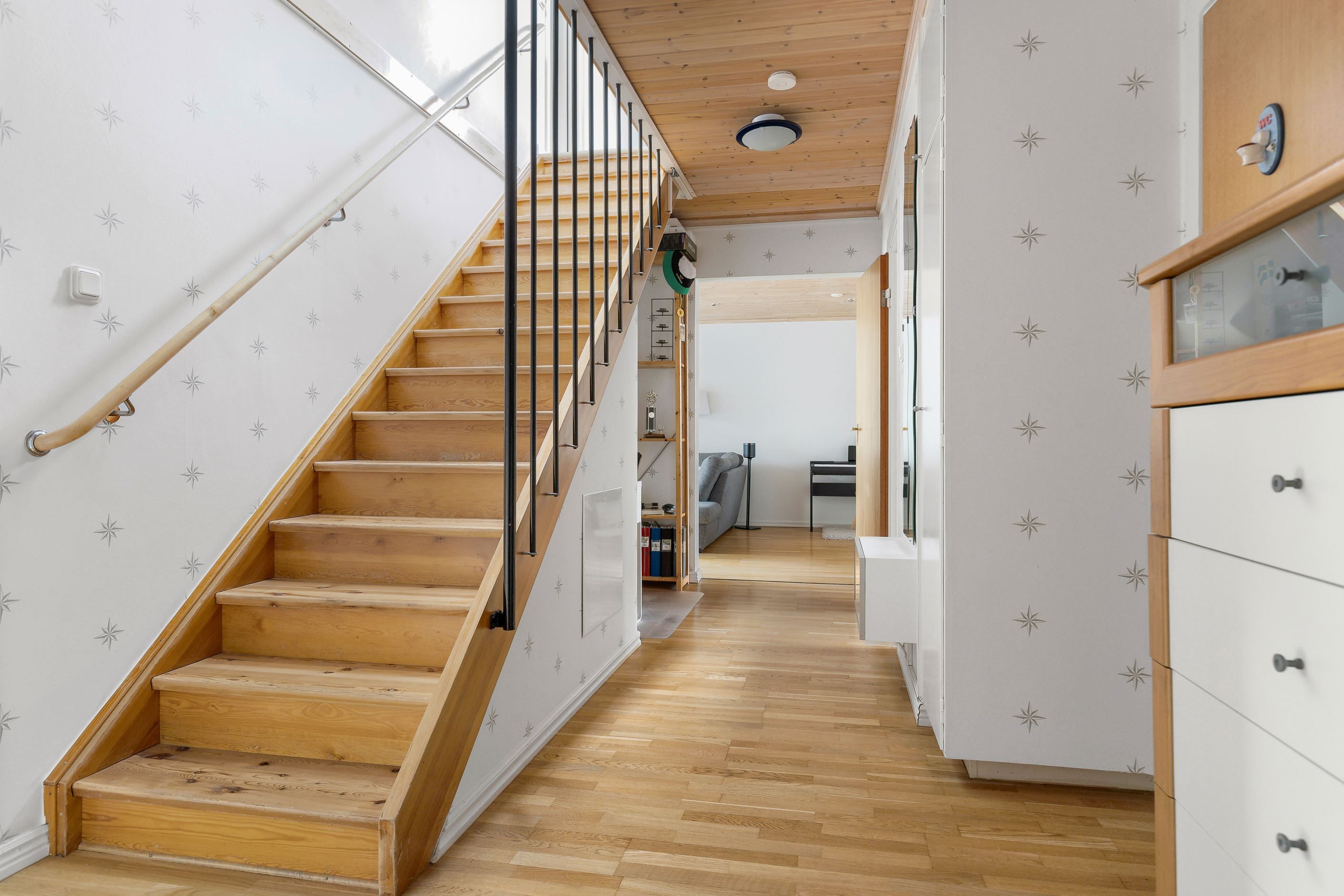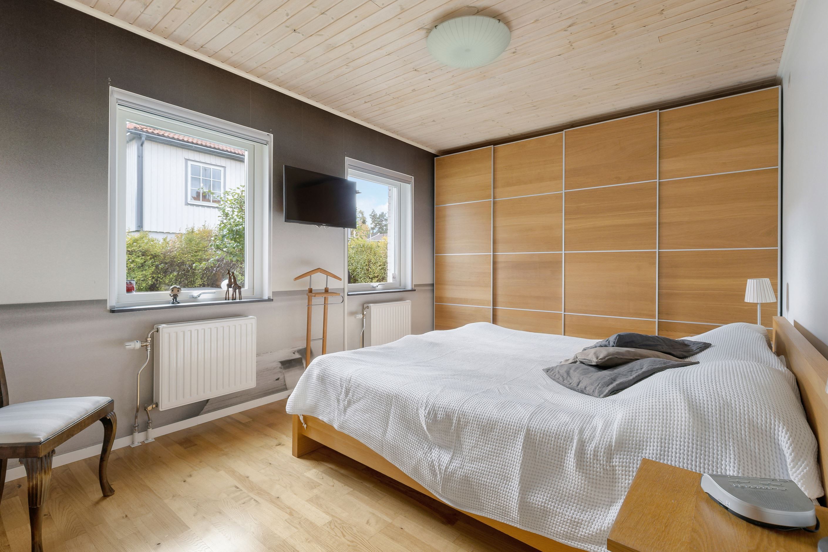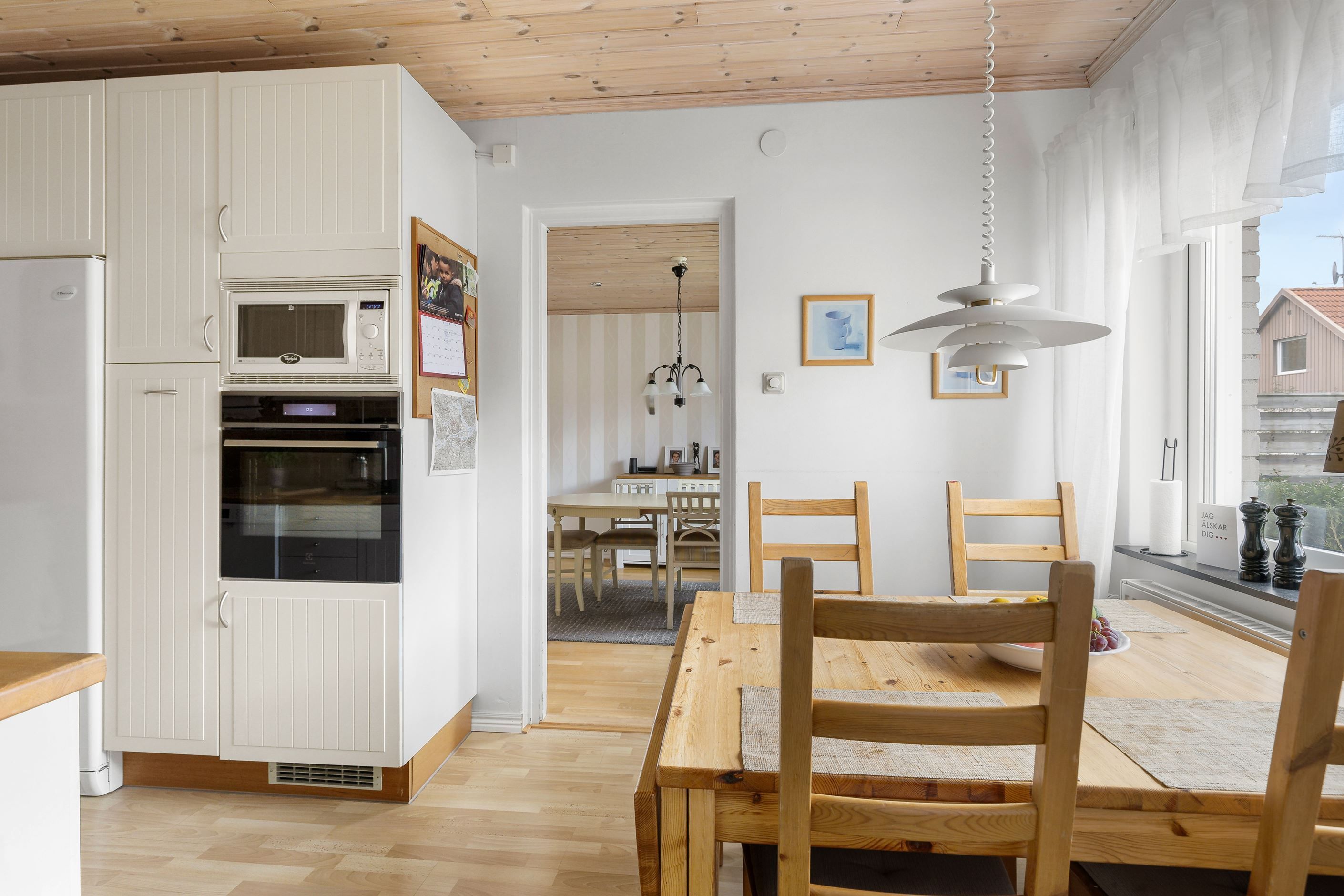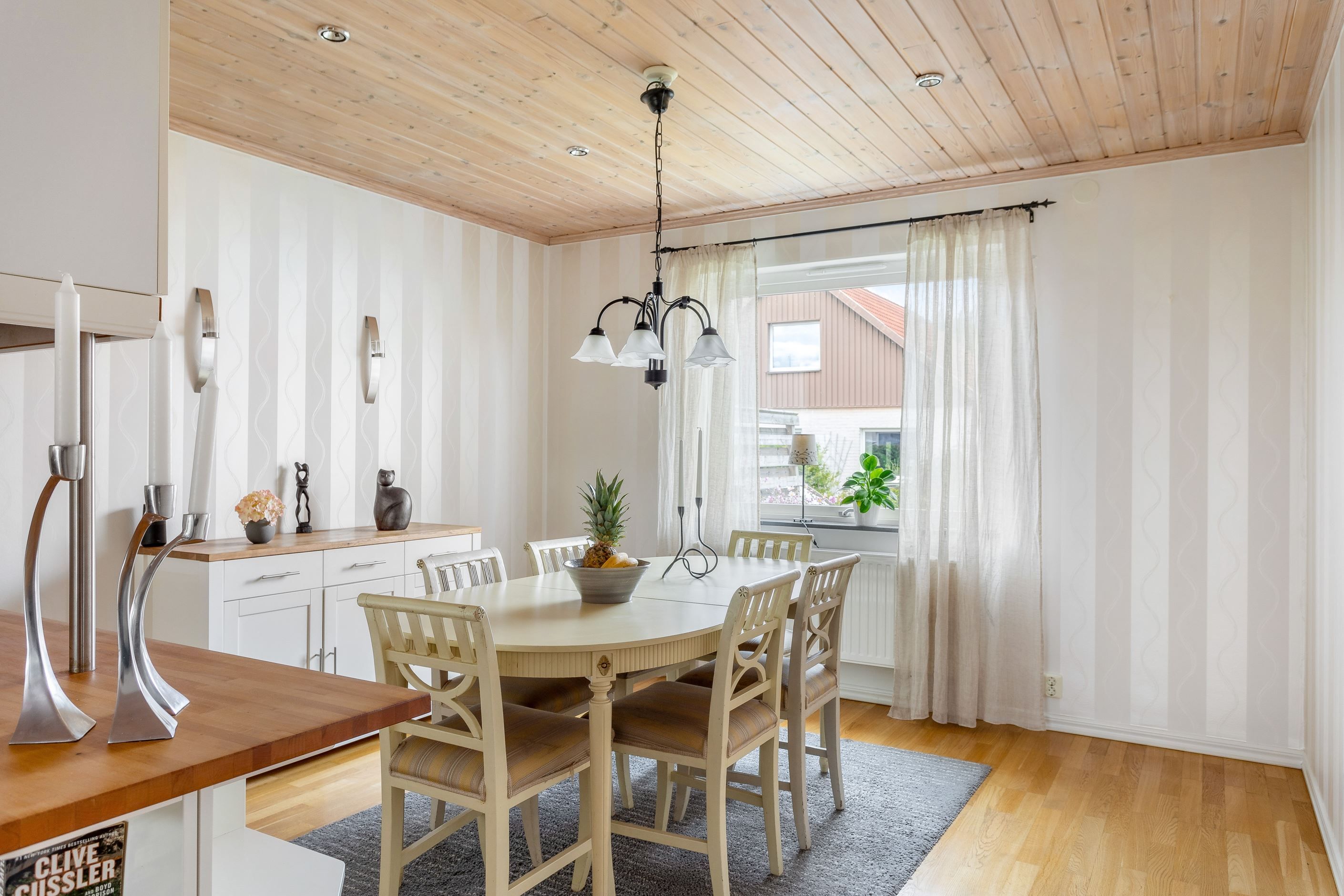 Inom kort finns chansen att förvärva ett av de eftertraktade kedjehusen på Aniaravägen i populärt, barnvänligt område och förverkliga husdrömmen. Omfattande renoveringar utförda under de senaste åren gör det enkelt att bara flytta in. Huset inrymmer idag hela 6 rum varav 3-4 sovrum och har stora, sociala ytor på entréplan innehållande kök med matplats och intilliggande vardagsrum med matsalsdel där stora middagssällskap enkelt ryms. Från vardagsrummet nås baksidans trädgård med lekvänlig gräsmatta, stor altan med insynsskyddande häckar, blandad växtlighet och till och med vinrankor. Två wc/duschrum i fint renoverat skick varav det ena med bastu. Övre plan har genomgått en omfattande ombyggnad och är idag mycket ljust och tilltalande med takkupa och flera takfönster med allrum, två sovrum och badrum. Vidare finns renoverad tvättstuga med grovingång, bergvärme och mekanisk ventilation samt en mycket rymlig och praktisk entré med förrådsdel, som skapats av att huvudbyggnad och garage har byggts ihop. Garage med stensatt uppfart och cykelförråd. Här bor man på lugn villagata och närhet till både natur, bad och golfbana men ändå nära till service och kommunikationer.