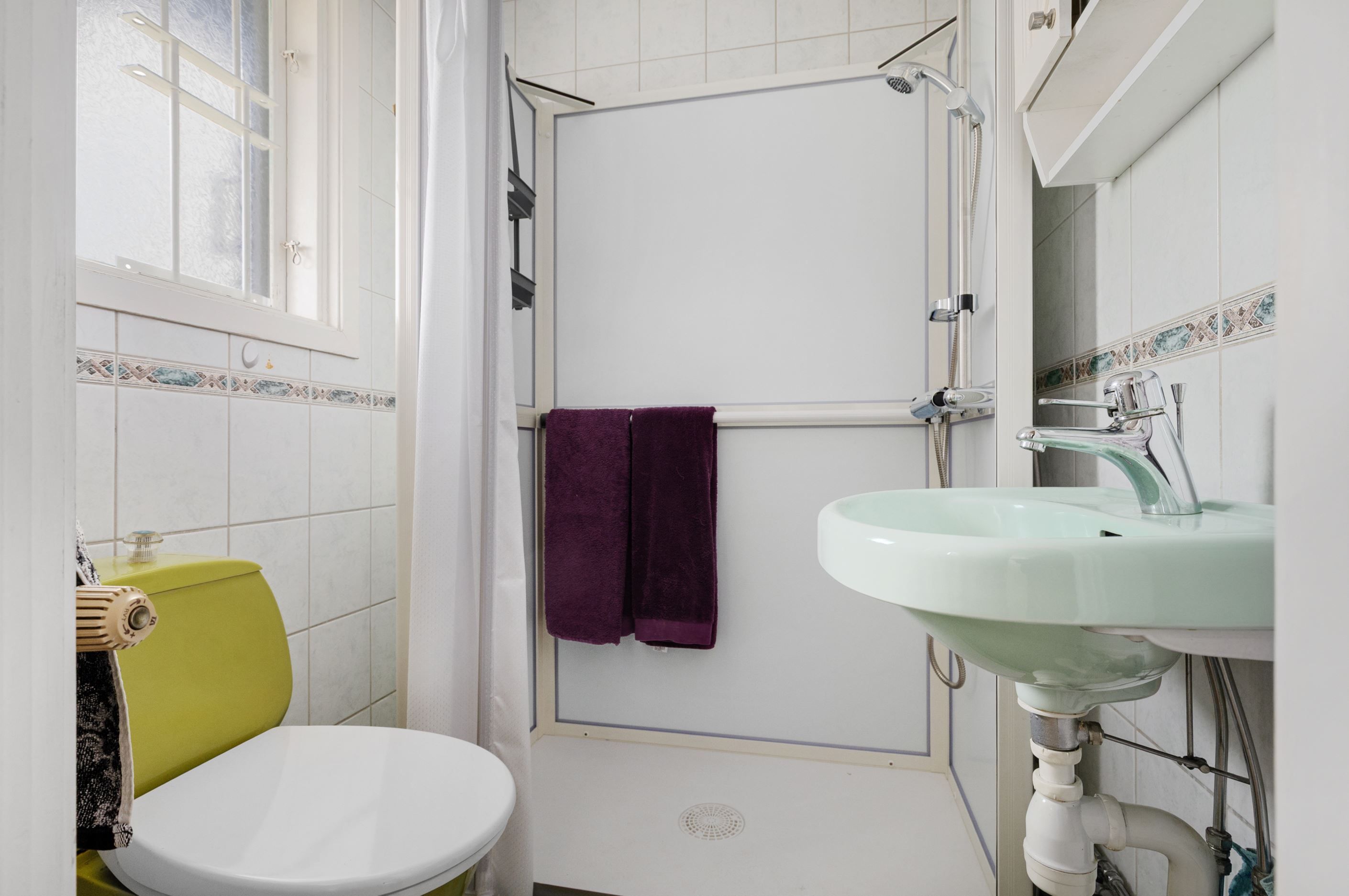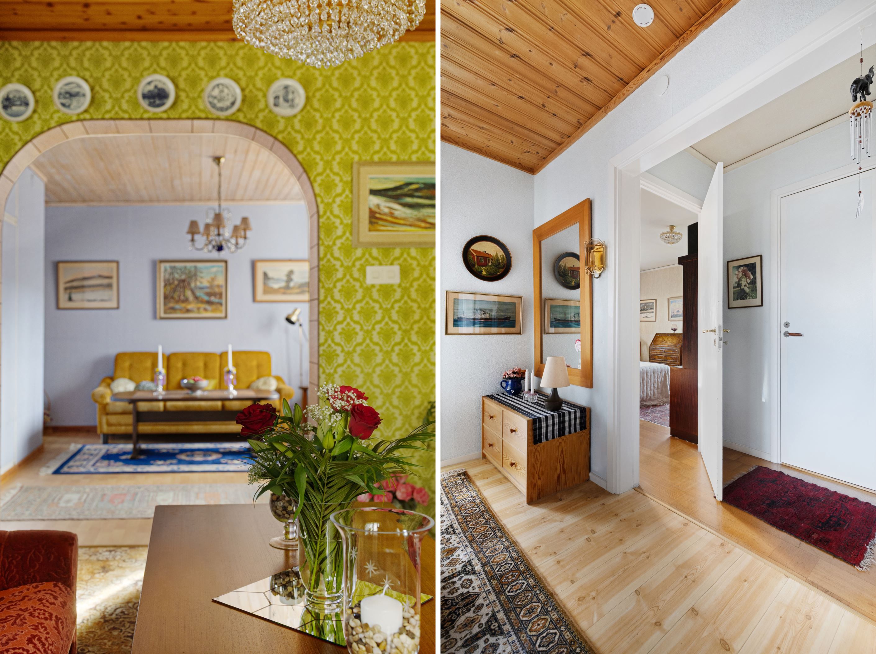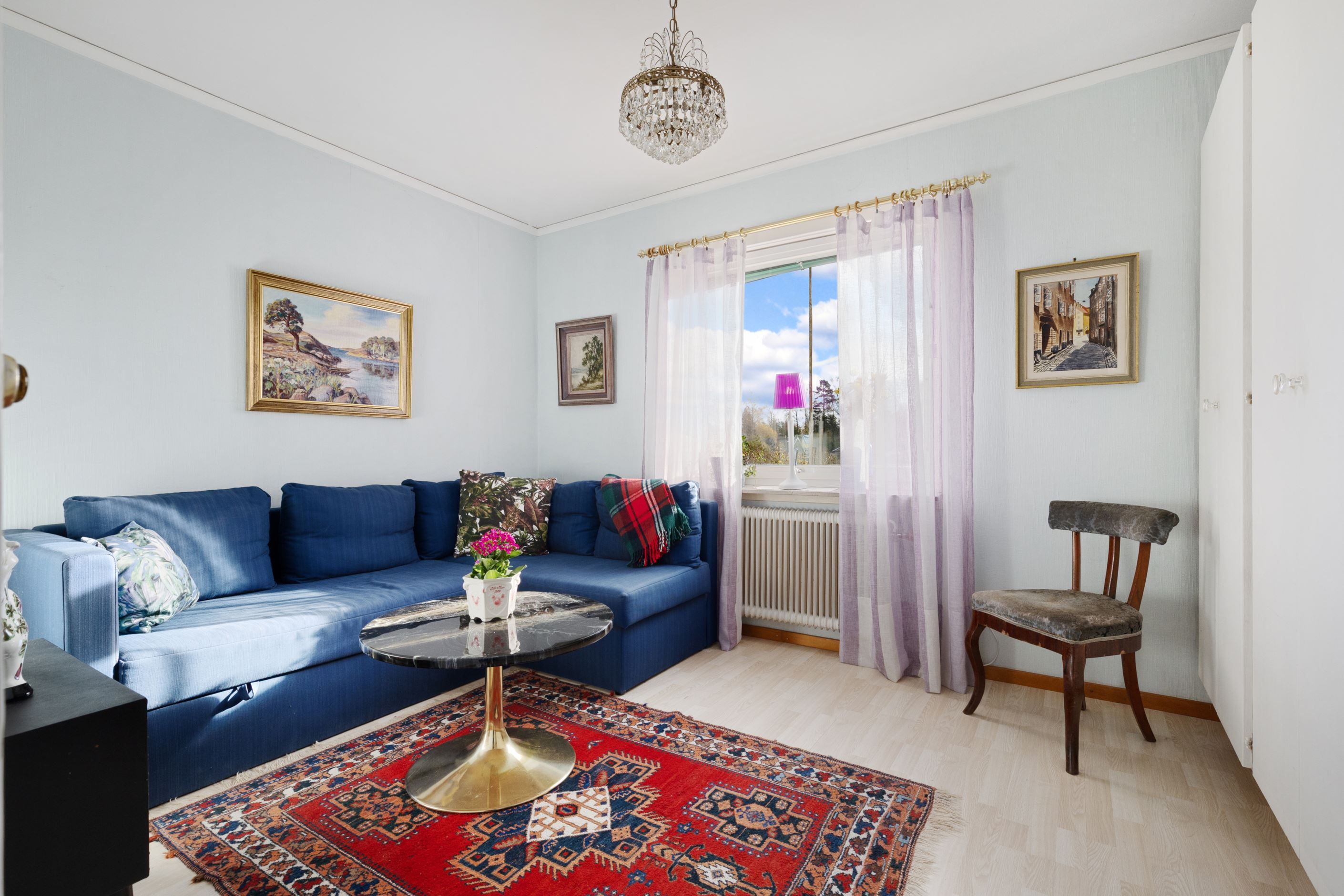 Vidare finns 3–4 sovrum i bra storlek samt ett badrum med äldre standard men smart planering.