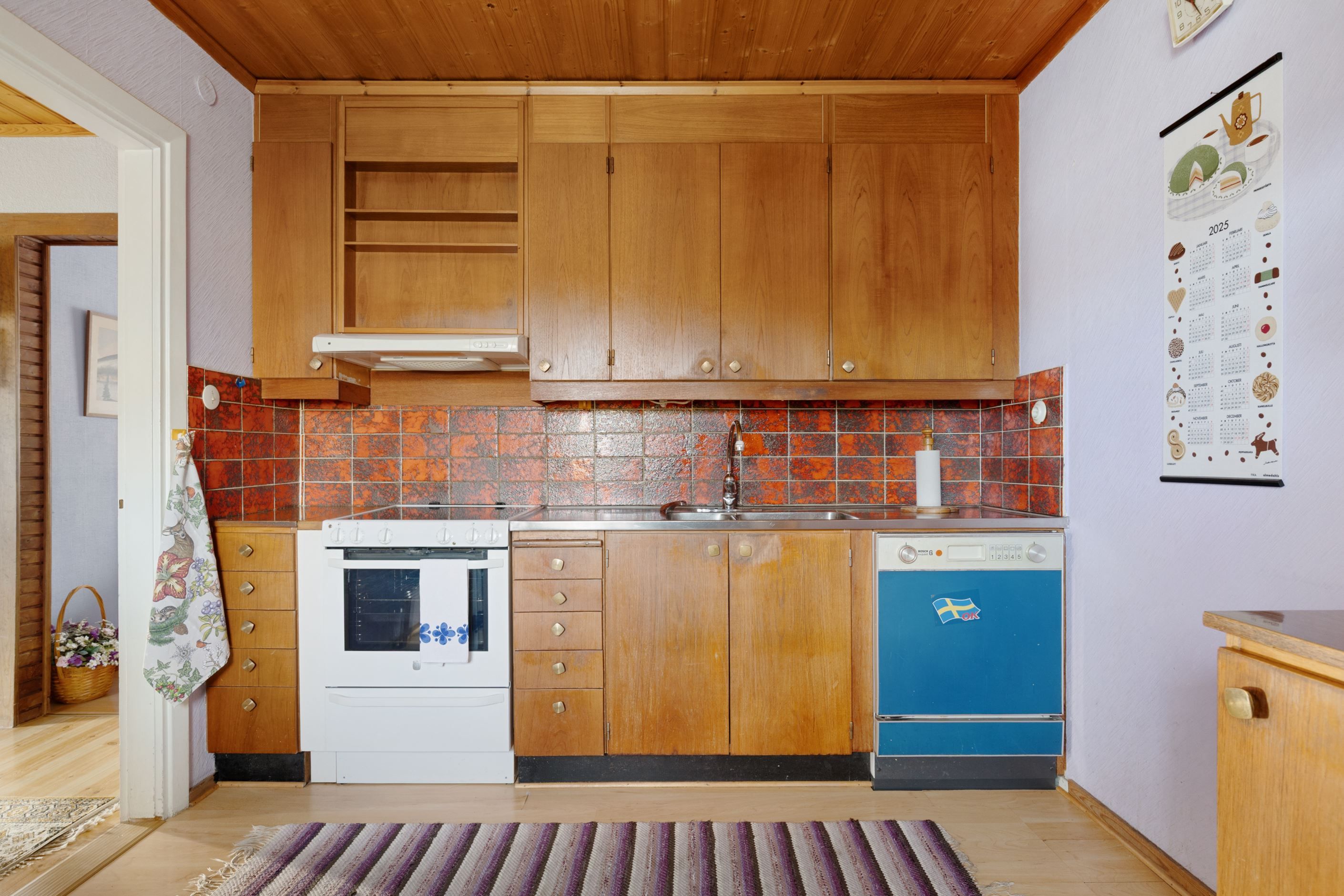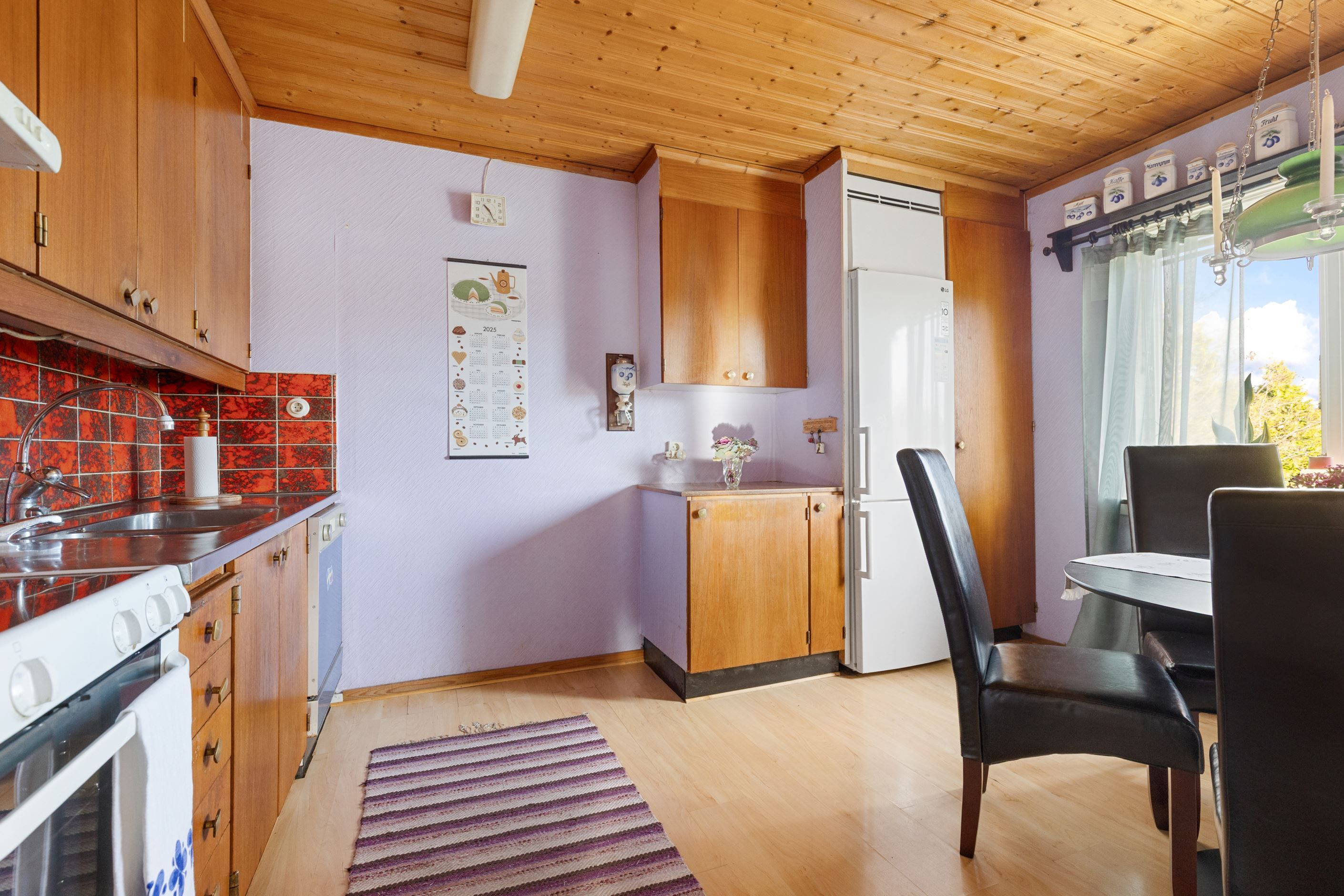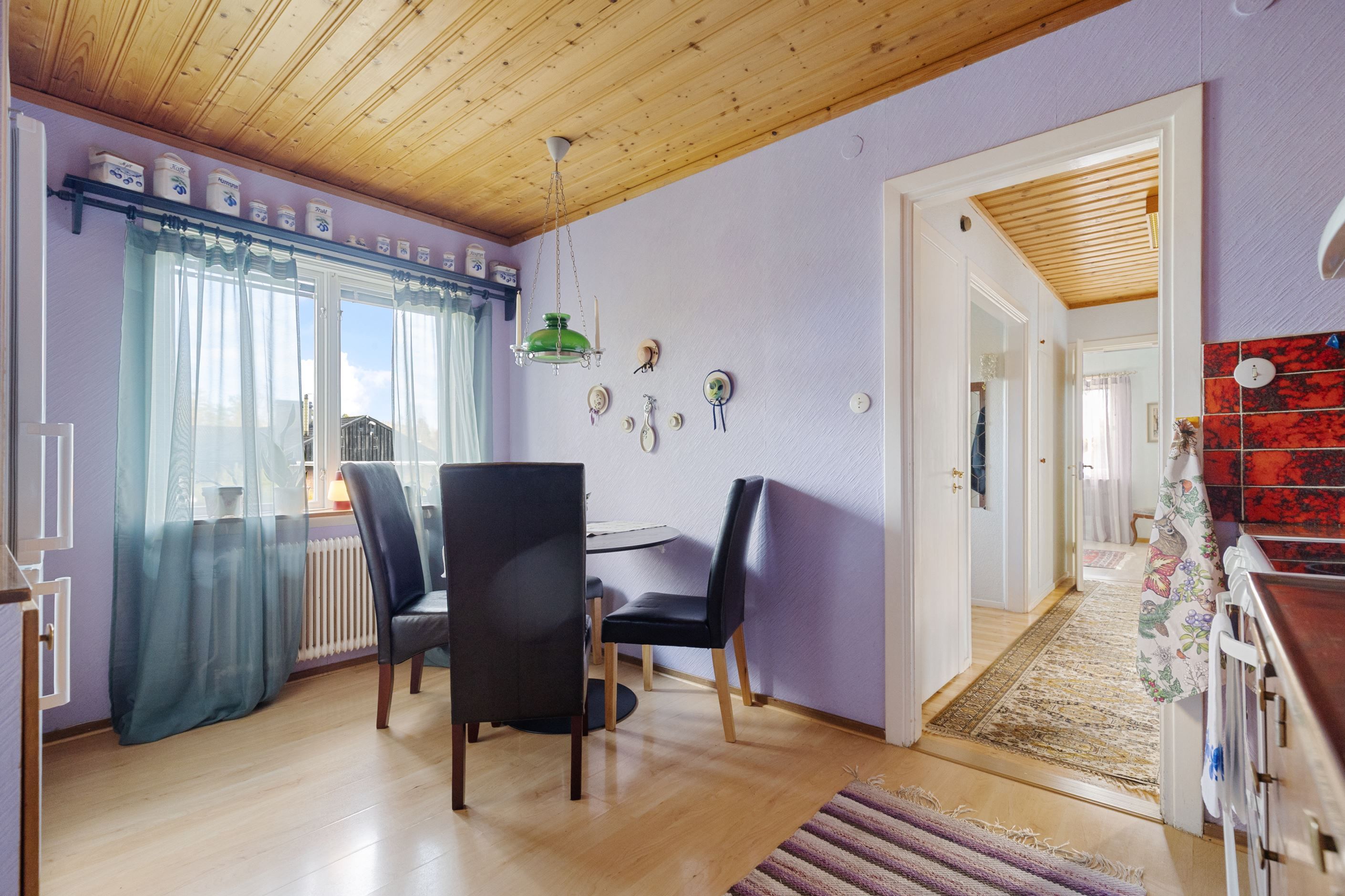 Köket är funktionellt med bra arbetsytor, gott om förvaring och plats för matbord. Här finns alla möjligheter att skapa ett modernt och socialt kök som blir hemmets naturliga samlingspunkt.