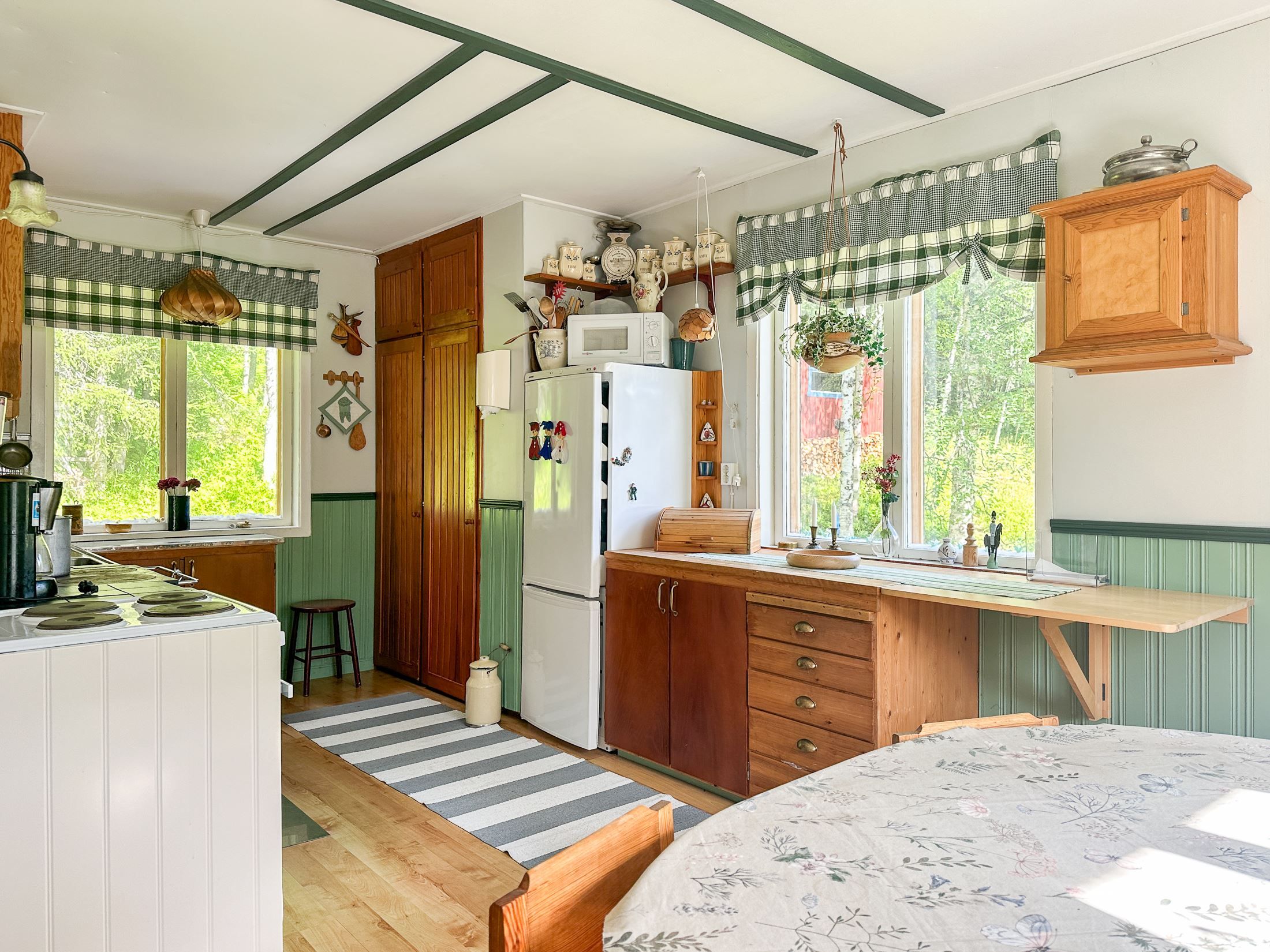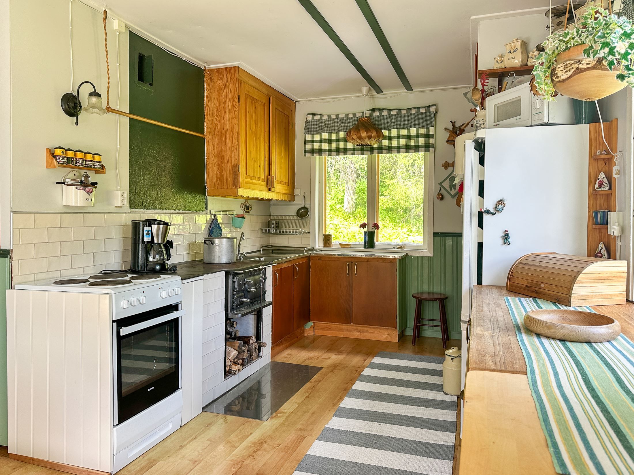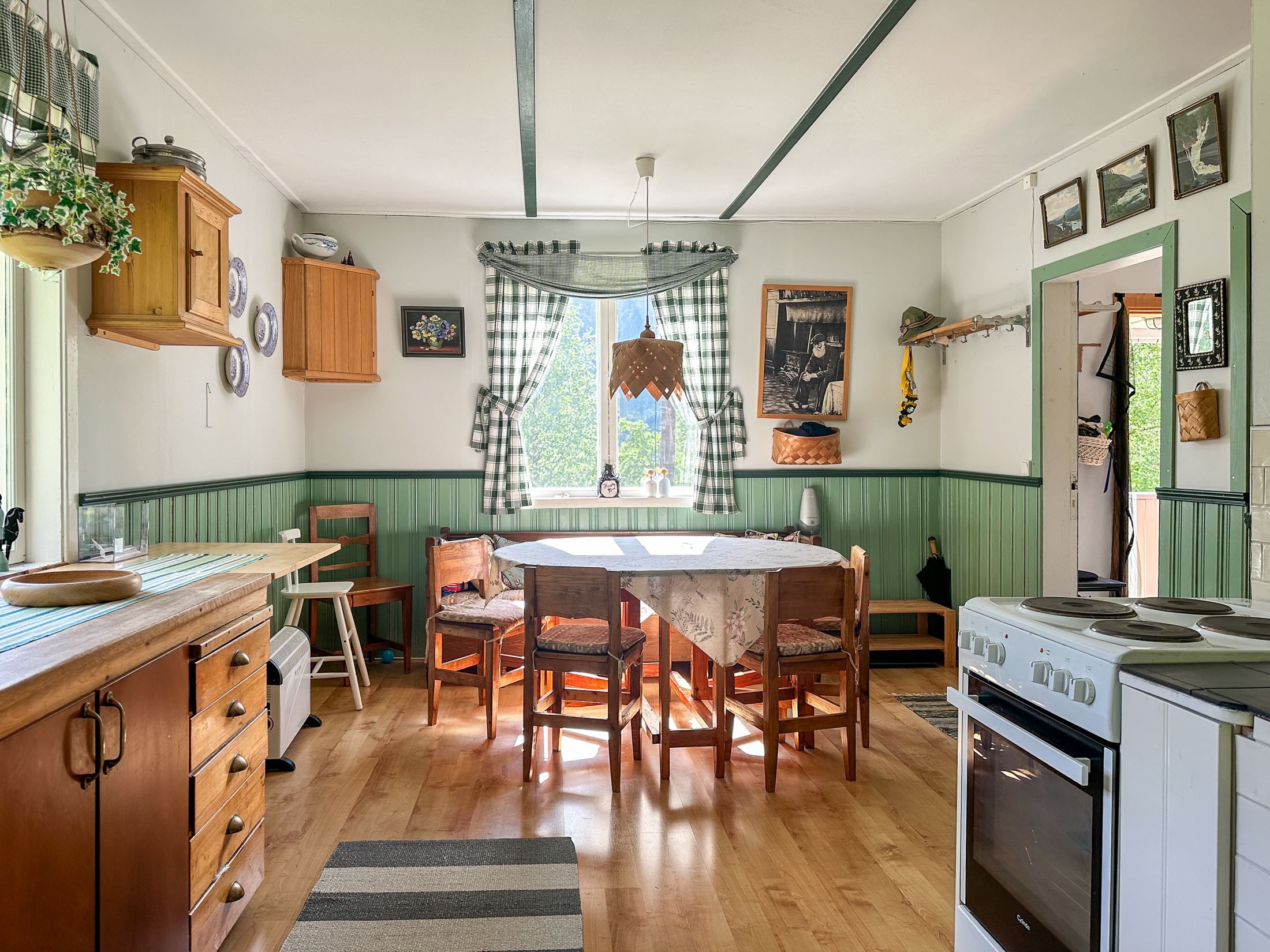 Huset erbjuder gott om plats för familj och gäster med sina stora rum och klassiska inslag som vedspis och kamin, som både värmer och skapar stämning.