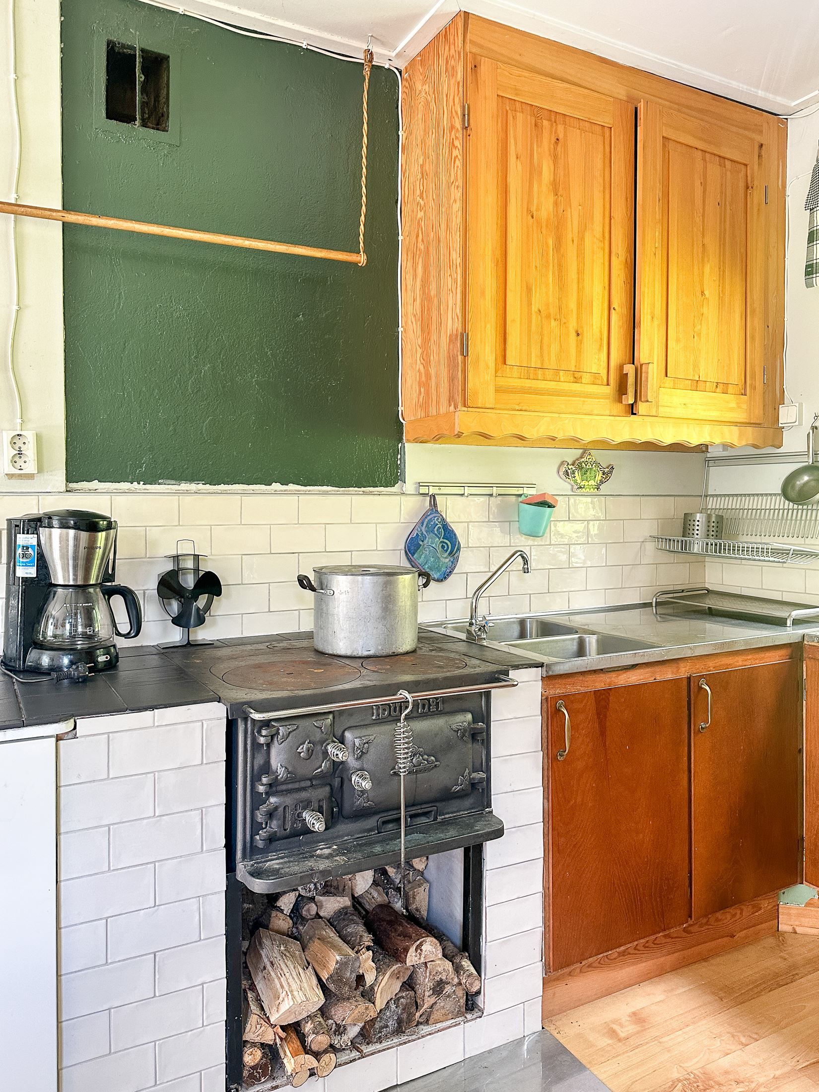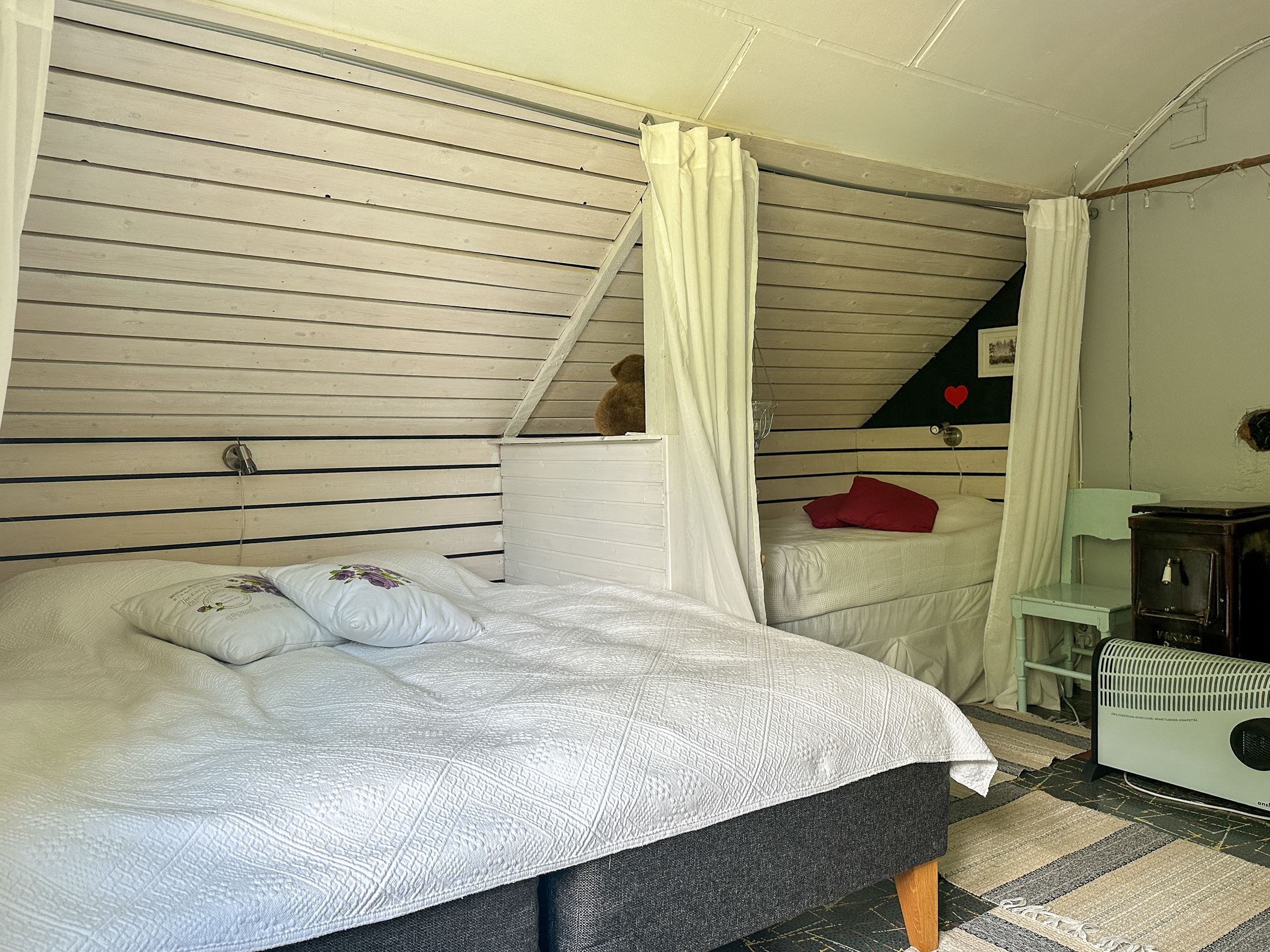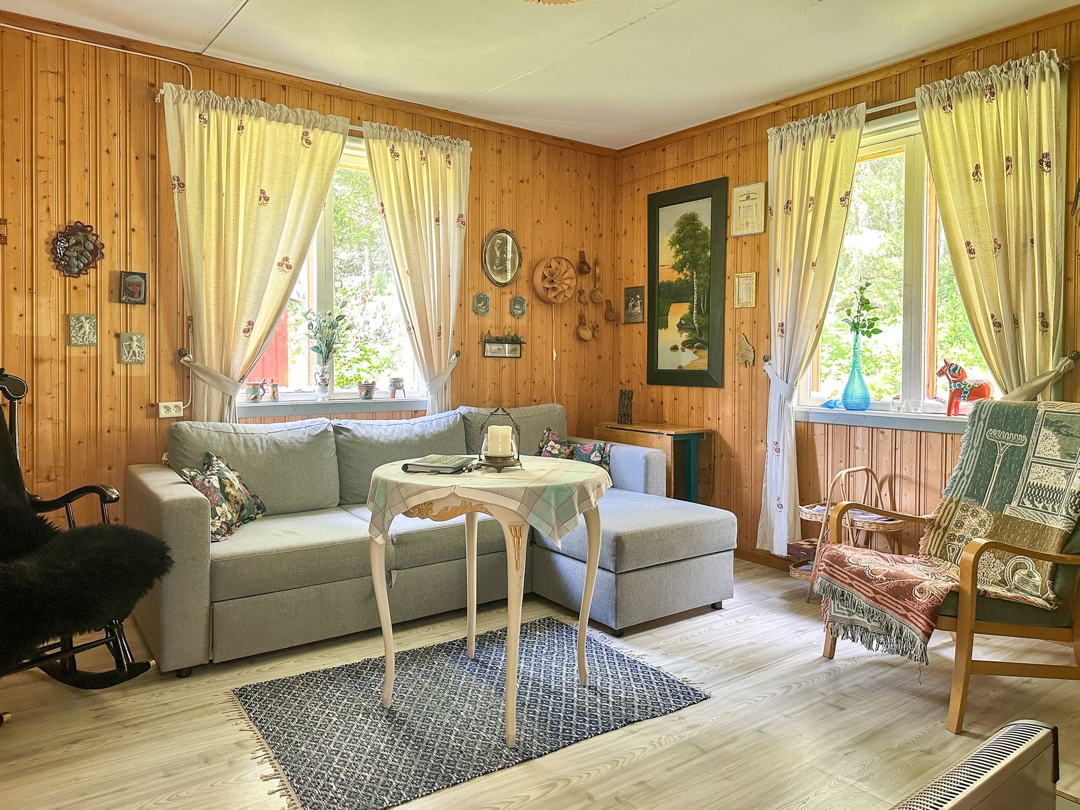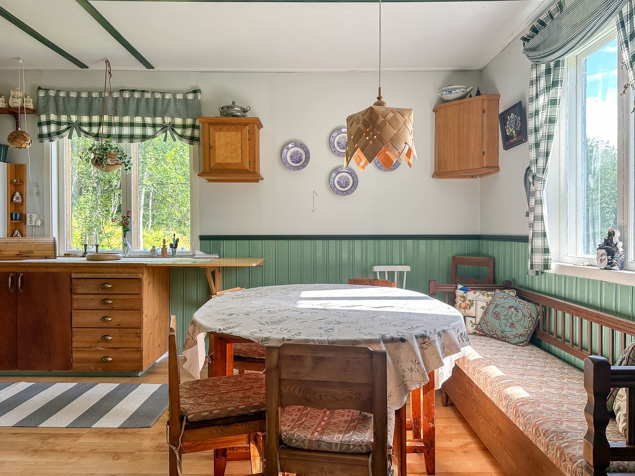 Huset erbjuder gott om plats för familj och gäster med sina stora rum och klassiska inslag som vedspis och kamin, som både värmer och skapar stämning.