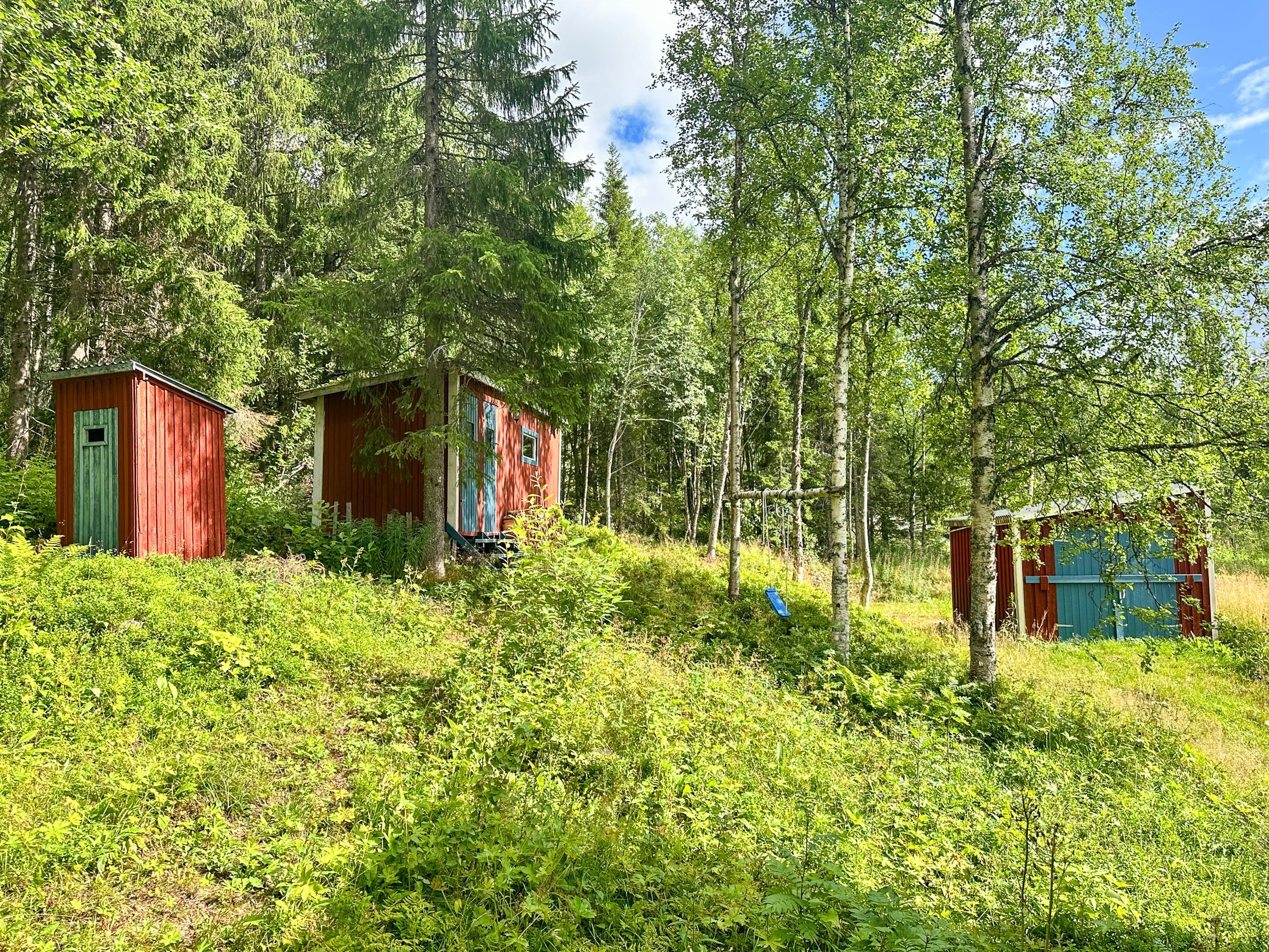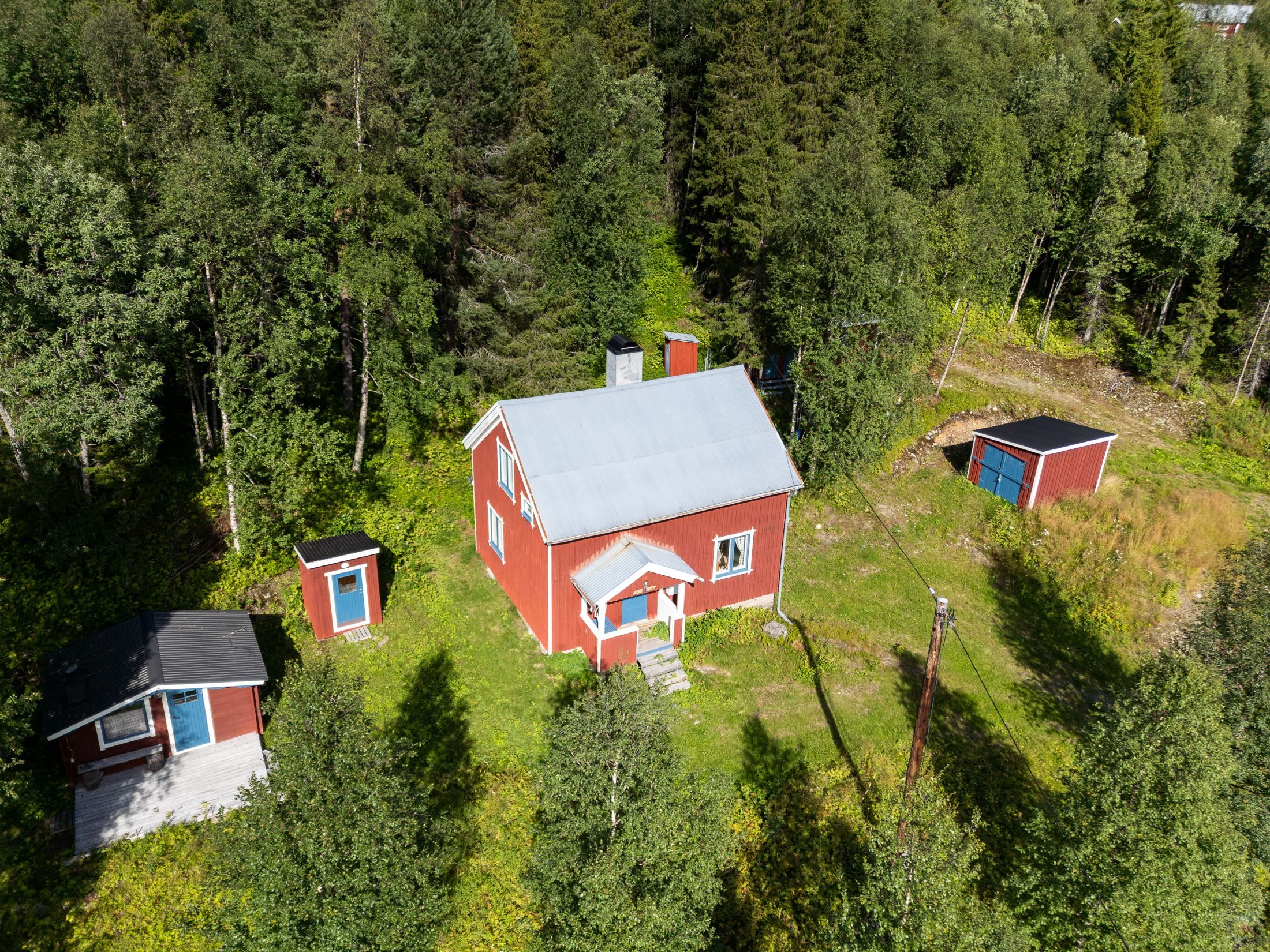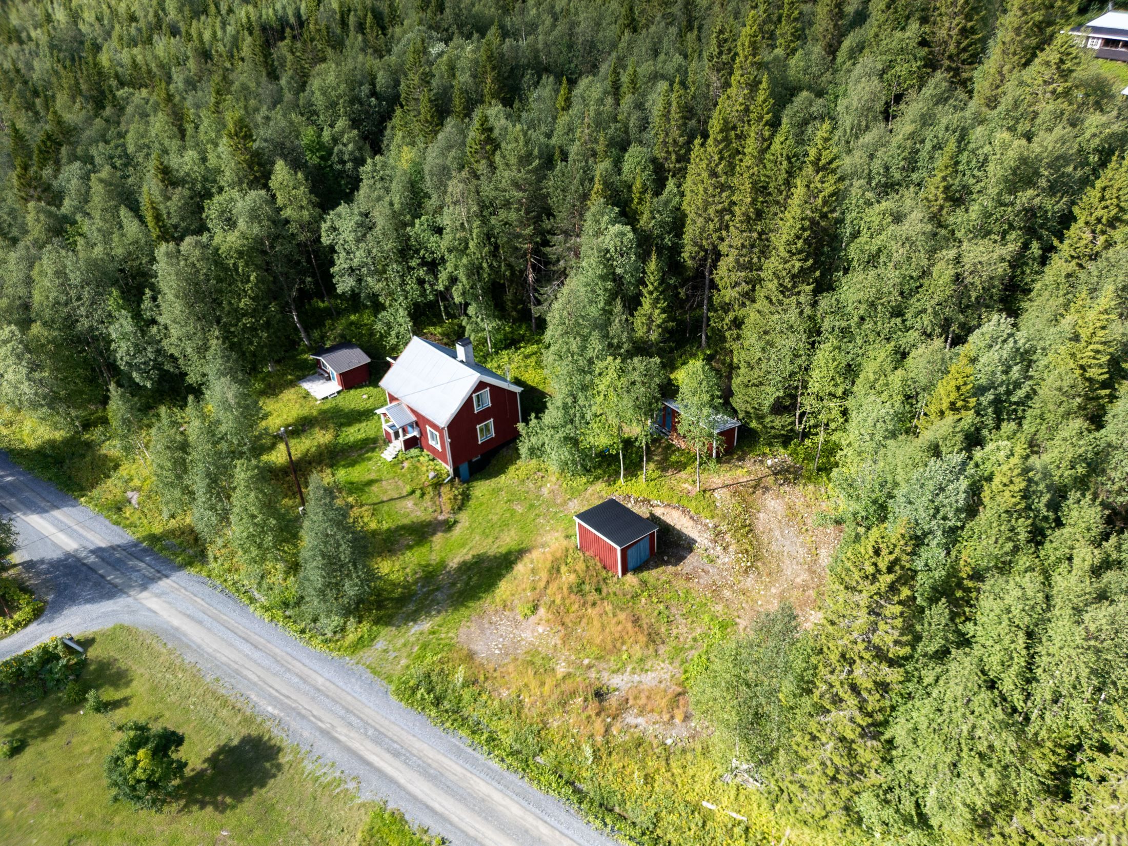 Förutom bostadshuset finns flera välplanerade byggnader på gården. Den vedeldade bastun på 15 kvm, utrustad med vattenvärmare och omklädningsrum, blir en självklar plats för avkoppling efter en aktiv dag utomhus. Intill bastun kommer en porlande fjällbäck. Här finns även en skoterbod om 15 kvm med plats för maskiner och utrustning, samt ett uppvärmt utedass med separett om 5 kvm för extra komfort. Ytterligare en byggnad om 15 kvm rymmer traditionellt utedass, vedbod och förråd. Tillsammans ger dessa byggnader både funktion och karaktär åt fastigheten.