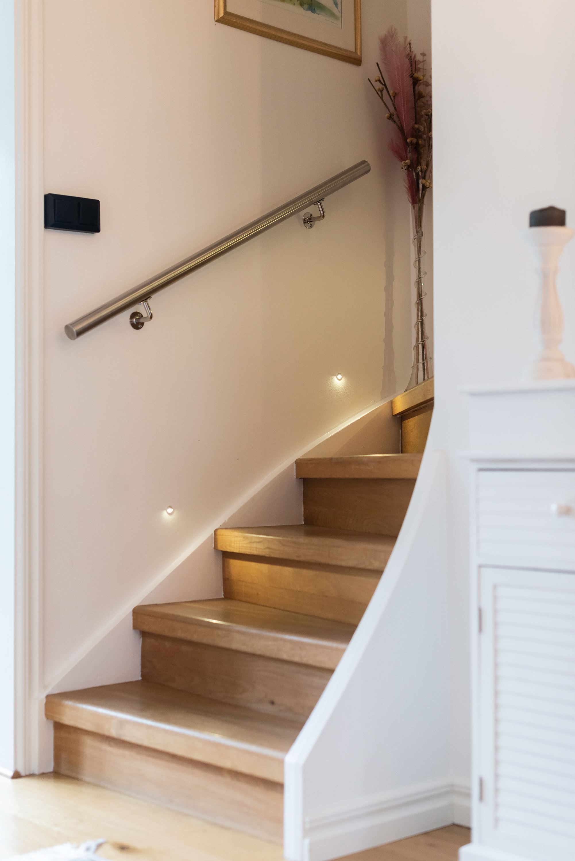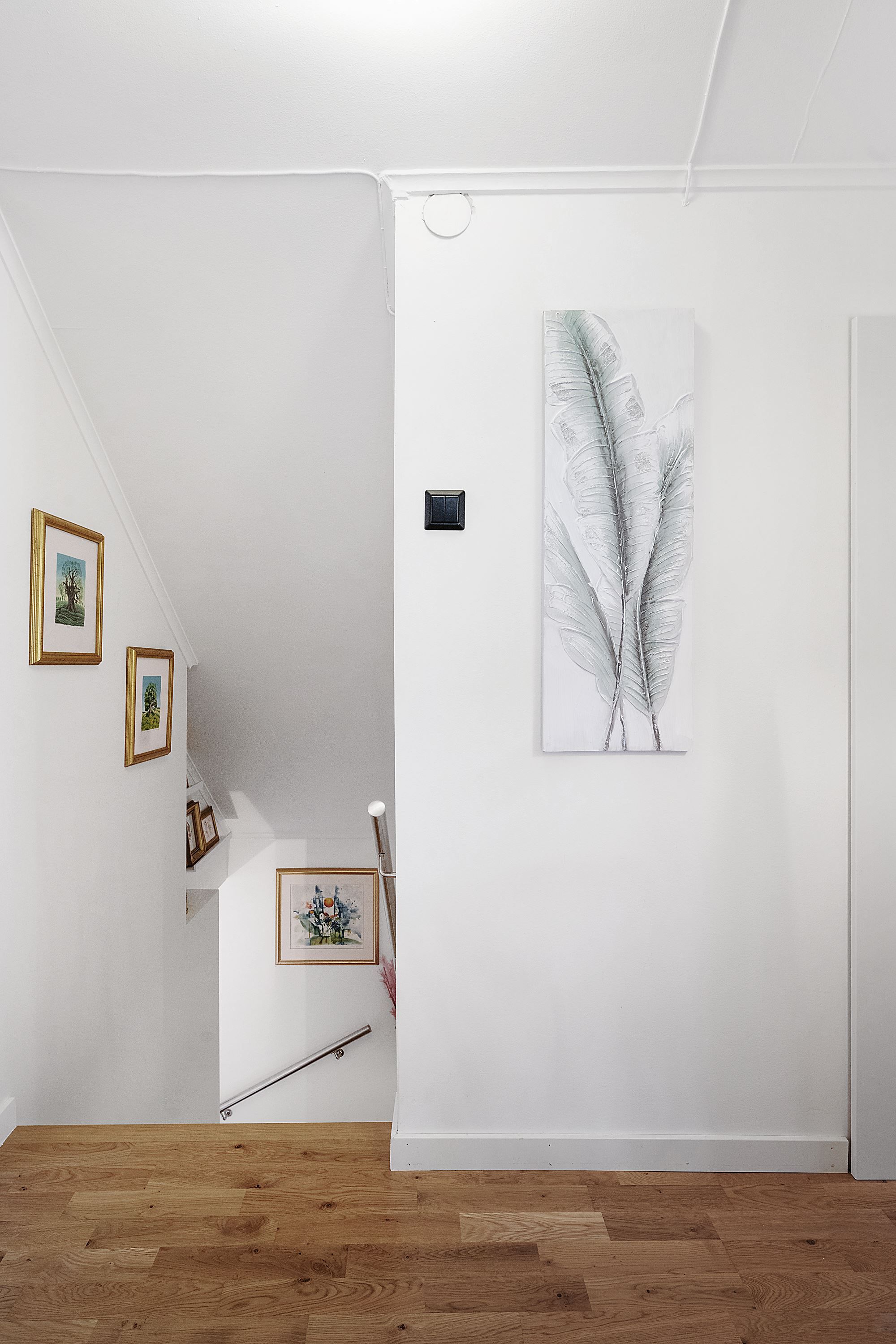 På villans övervåning återfinns tre sovrum, ett badrum och två praktiska förråd. I ett av sovrummen avnjuts övervåningens vackra burspråk. Bostadens källare disponerar ytterligare ett sovrum med generösa ytor. Här återfinns även en stor tvättstuga, en walk-in closet och ett förråd som ger utmärkta förvaringsmöjligheter samt ett fullt utrustat badrum.