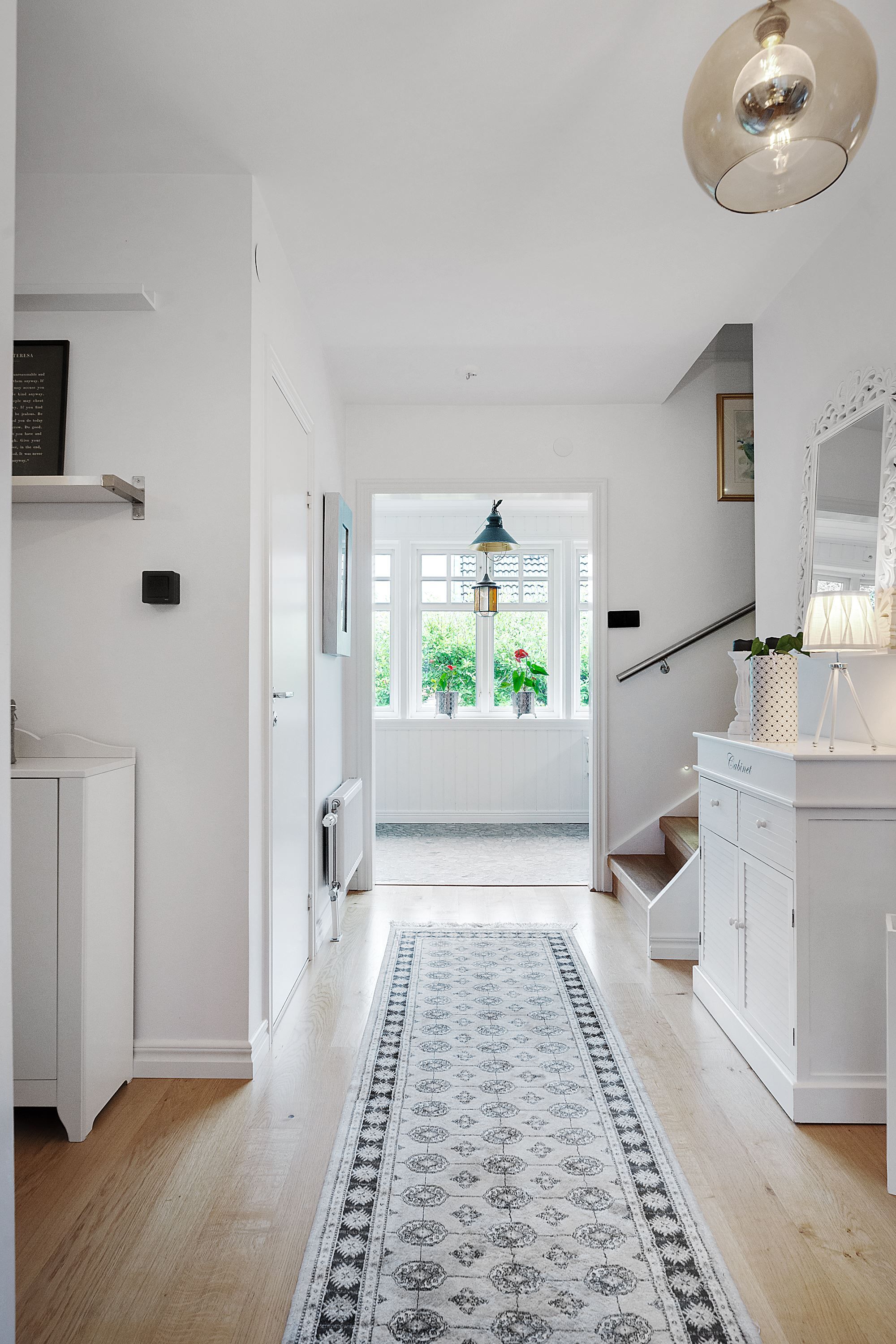 Huset har en romantisk charm med vit träpanel, sadeltak med röda tegelpannor och en utbyggnad med ett vackert burspråk på två våningar. Bostaden disponerar åtta rum varar sex sovrum på två våningar. På entréplan finns köket där en charmig lantlig stil, med detaljer som speglade luckor och vit träpanel i tak, möter modern stilrenhet och exklusiva materialval såsom integrerade vitvaror och marmorerade bänkskivor. Här finns goda arbetsytor och plats för både matlagning och umgänge. Innanför det vackra burspråket finns plats för en matgrupp där smakrika måltider kan intas med en panoramavy över trädgården. Entréplanet rymmer även en välkomnande entré och hall, ett gemytligt vardagsrum, ett sovrum, ett gästrum, ett badrum utrustat med WC och handfat samt ett mysigt uterum där trädgårdsvyn kan avnjutas oavsett väder eller årstid.