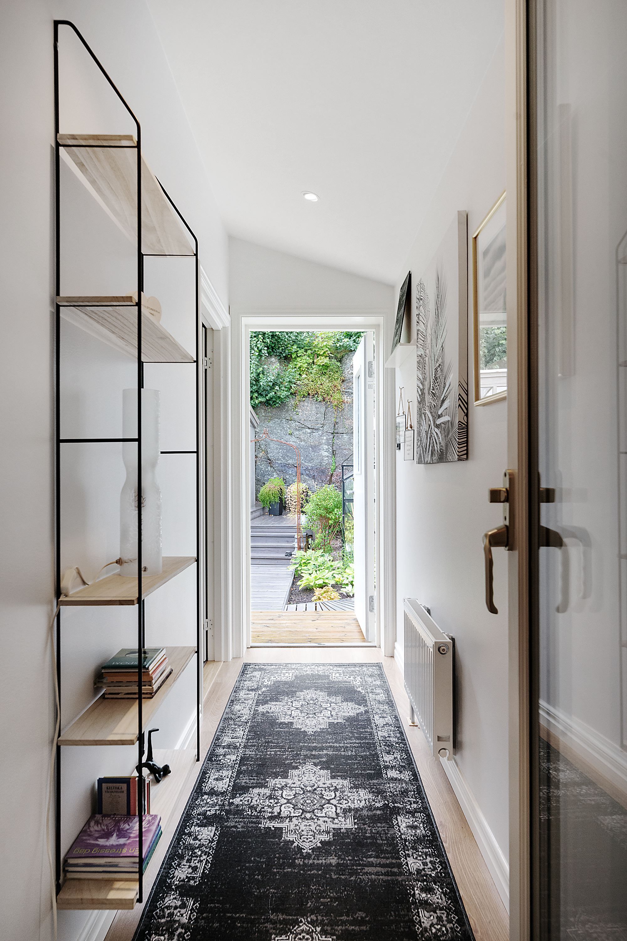 Huset är belägen på en trädgårdstomt invid en liten bergsvägg som ger en tryggt inramad känsla till bakgården. Trädgården bjuder på en härlig grönska med träd, buskar och rabatter. Ett modernt växthus ger ytterligare möjligheter för odling där du kan skörda dina egna solmogna tomater och andra frukter och grönsaker. Förutom en stor altan finns en upphöjd paviljong med plats för loungemöbler. Tomten ger verkligen många tillfällen till avkoppling och sociala stunder i en idyllisk miljö.